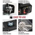 - With carry bag, Safety device - Automatic safety shut-off; Gas leakage protection device
