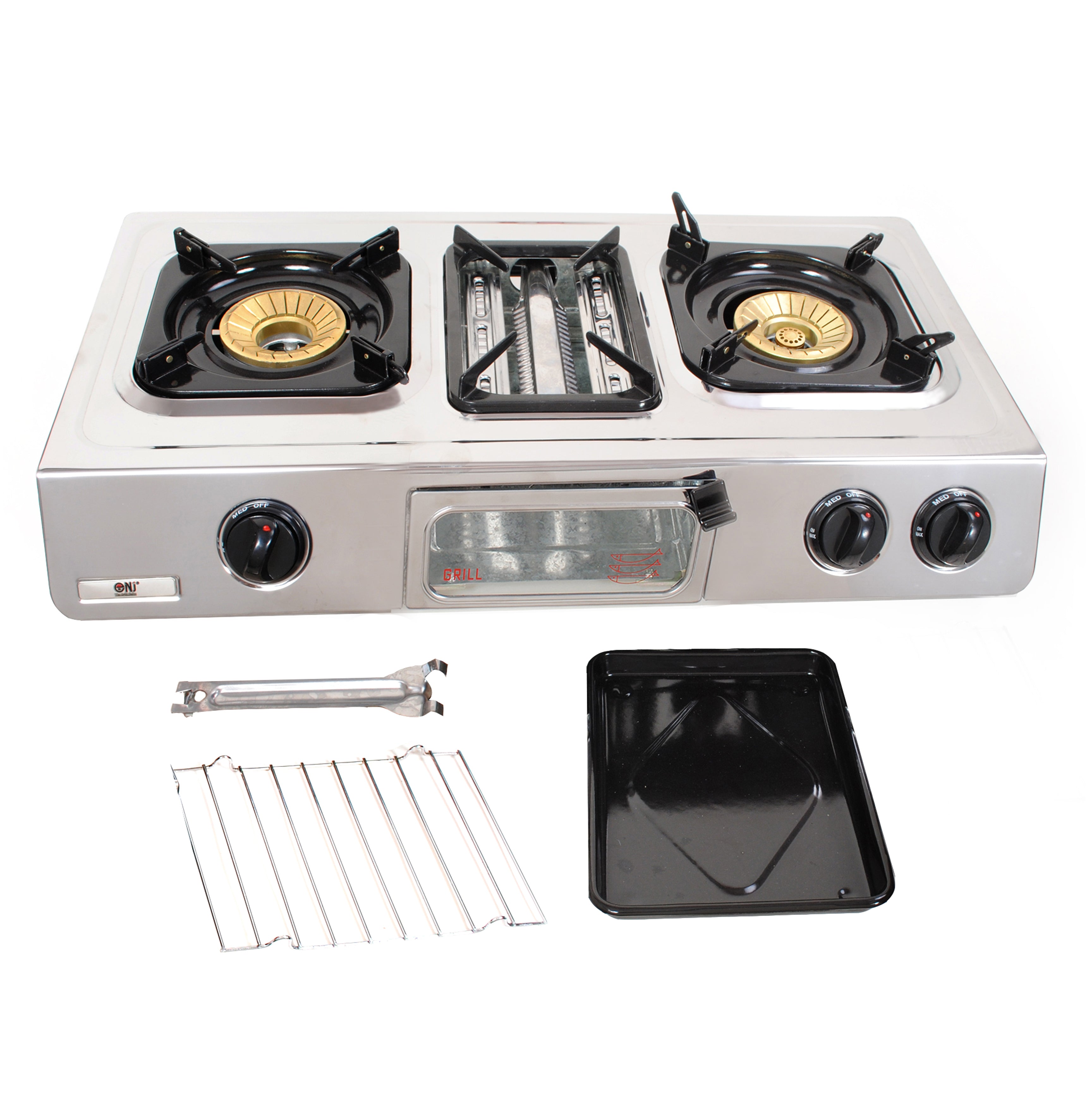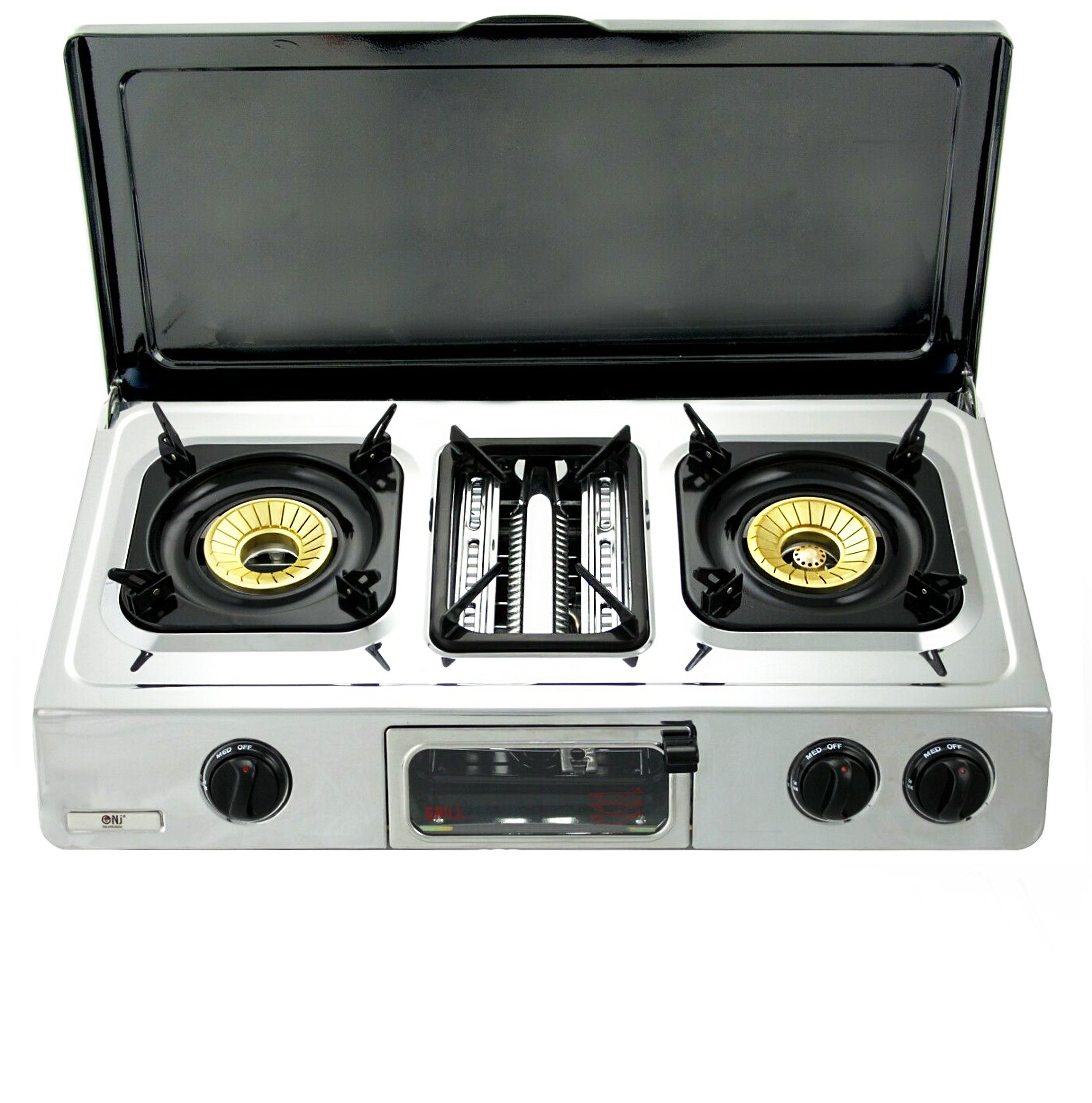 NJ G-87C Gas Stove 3 Burner Grill Oven Lid Stainless Steel Camping Outdoor