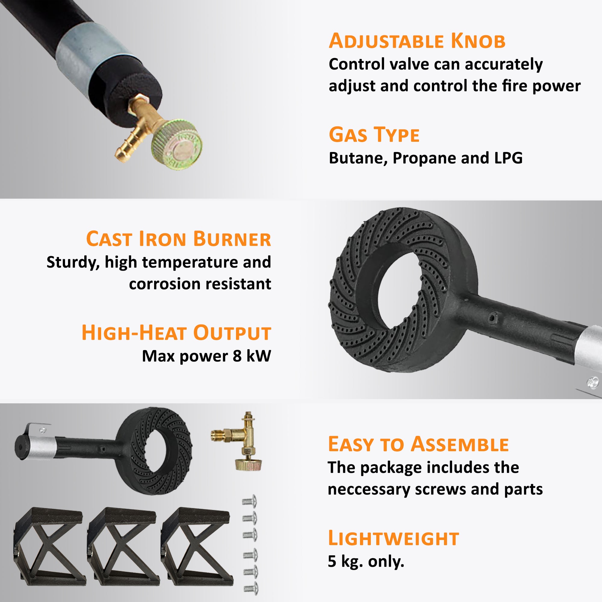 - Gas type - Butane Gas, Propane, Propane-Butane gas mixtures