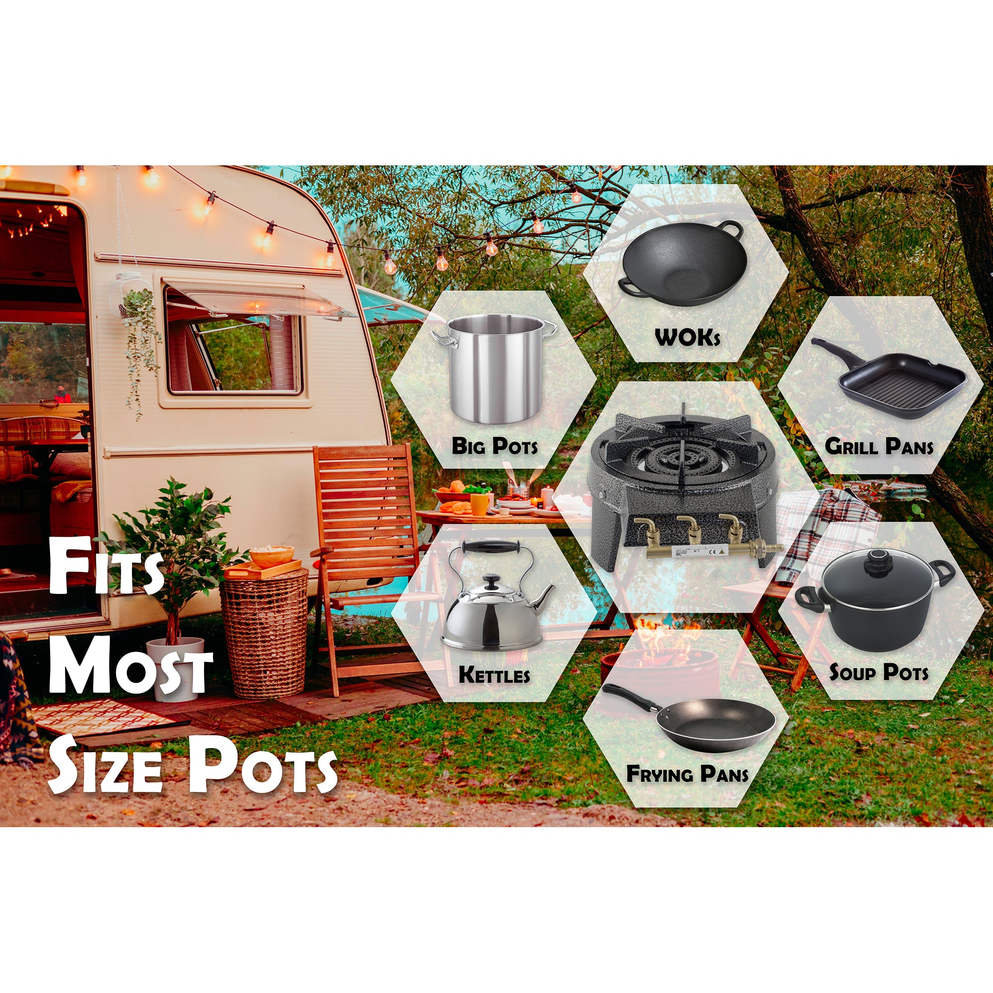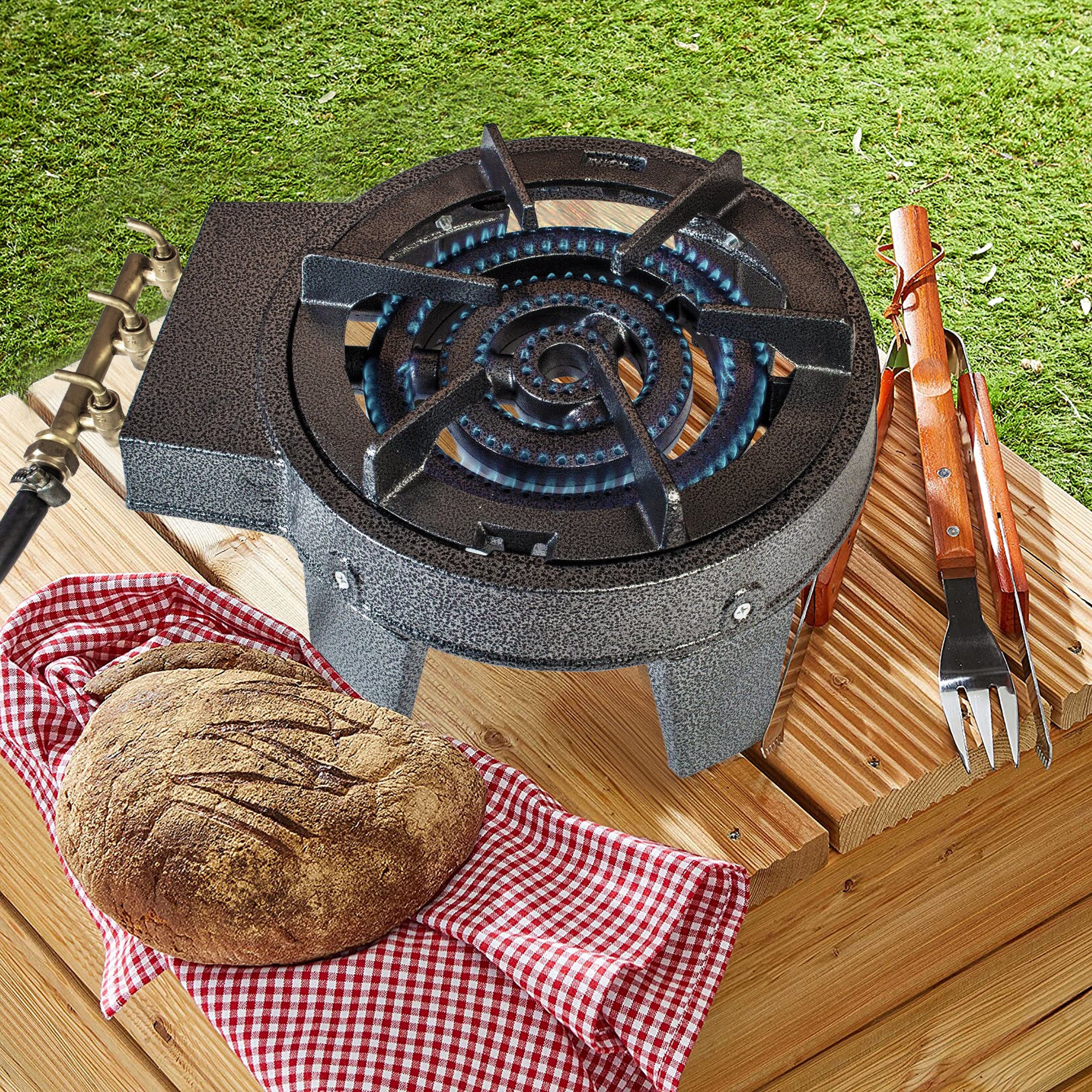 If you want more heat than your indoor cooker can provide then you need this cast iron triple ring burner gas stove. It is easy to use, solid and sturdy, very effective and perfect for outdoor cooking. The cooker is equipped with pan support for small diameter pots.