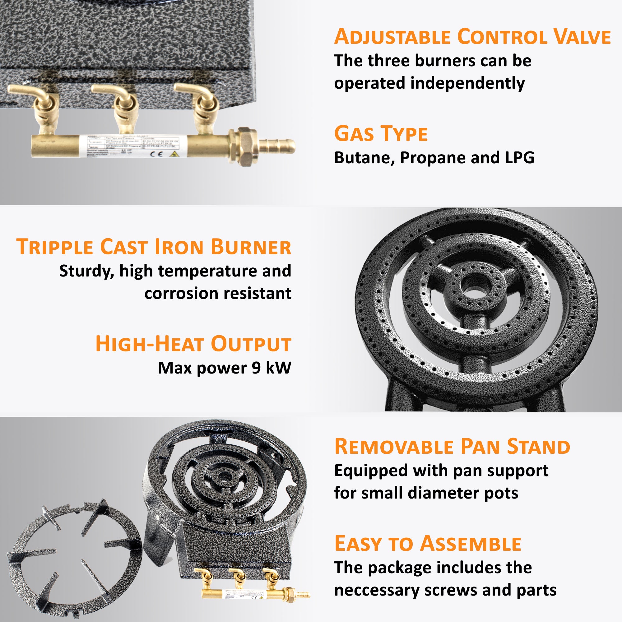 NJ GB-17 Cast Iron Triple Ring Burner 9 kW Portable Outdoor Gas Stove