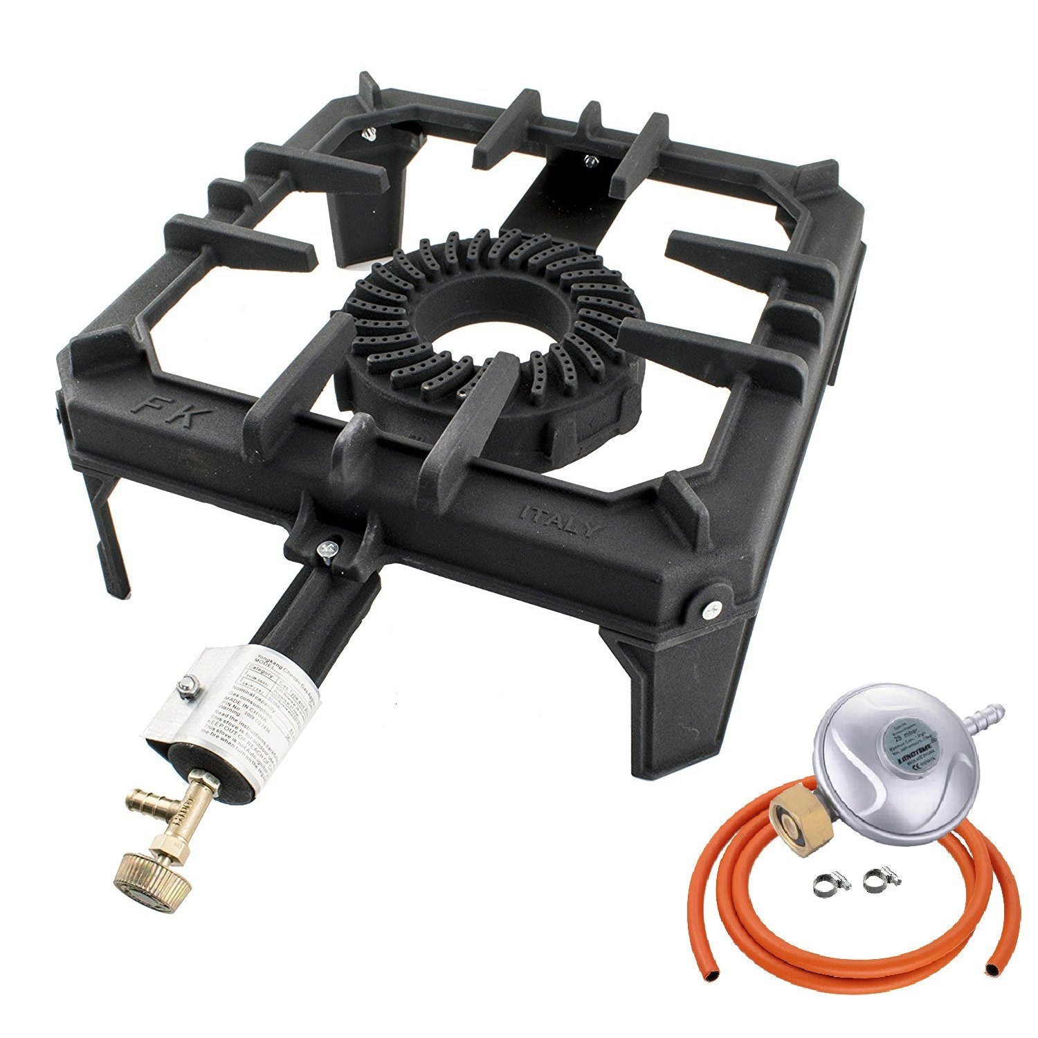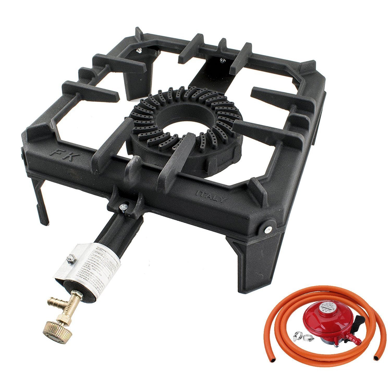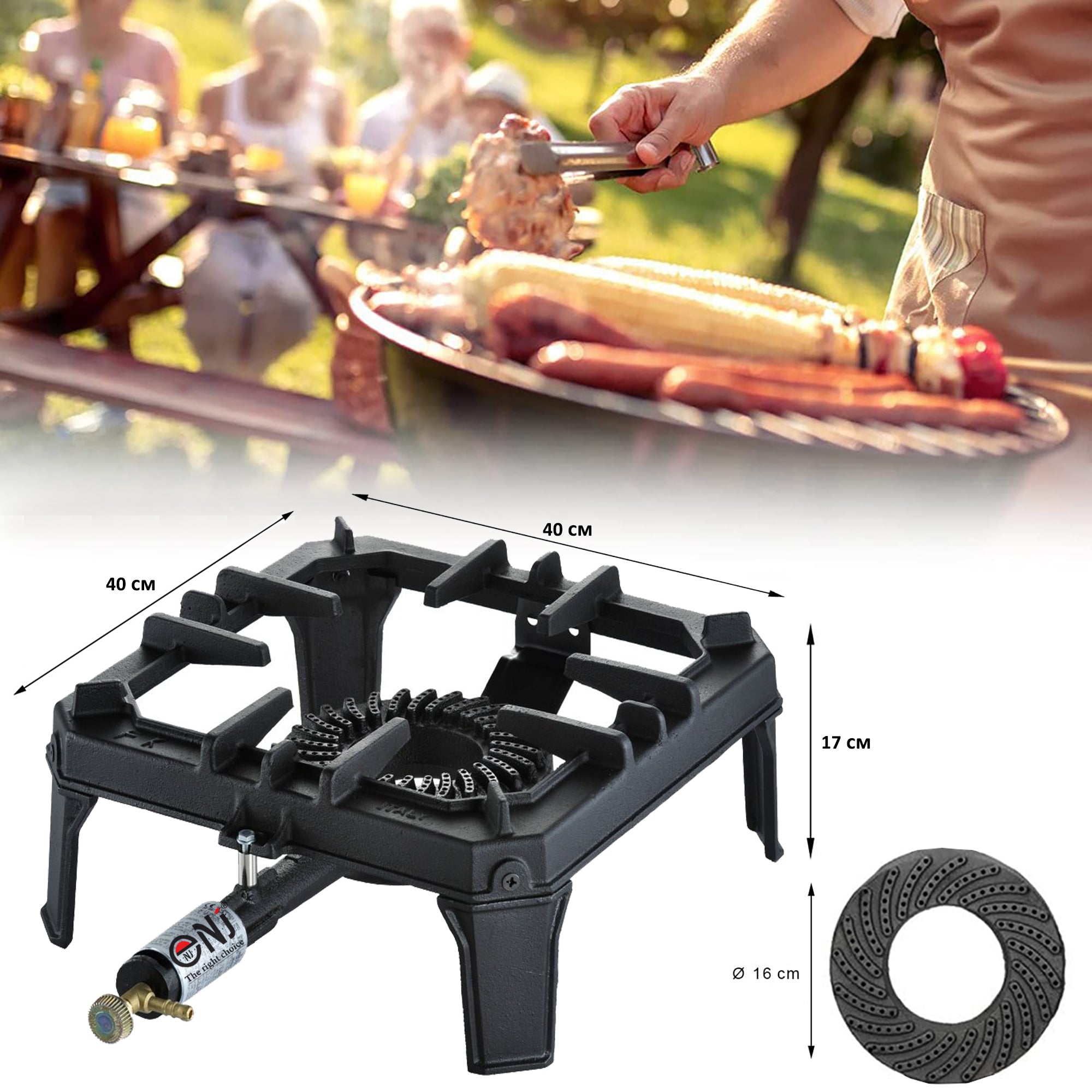 This is a very sturdy and stable, freestanding single burner gas cooker made of durable cast iron. It can withstand heavy loads and, thanks to its wide burner, cooking with it is extremely fast.