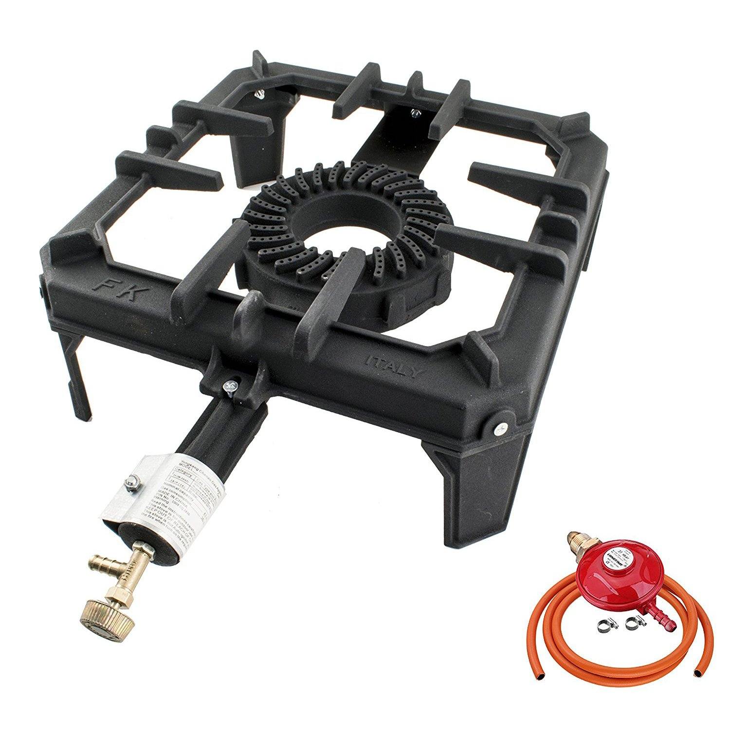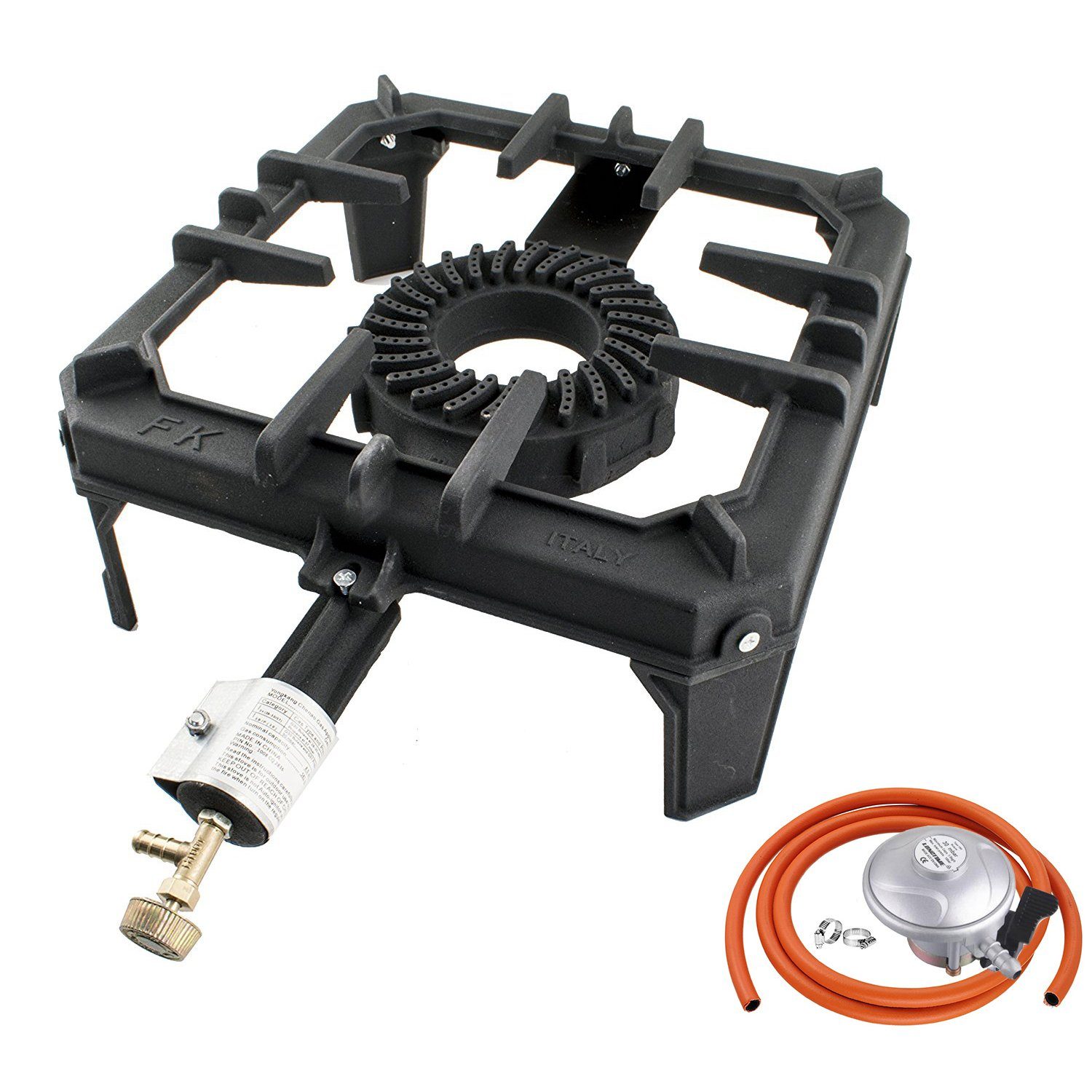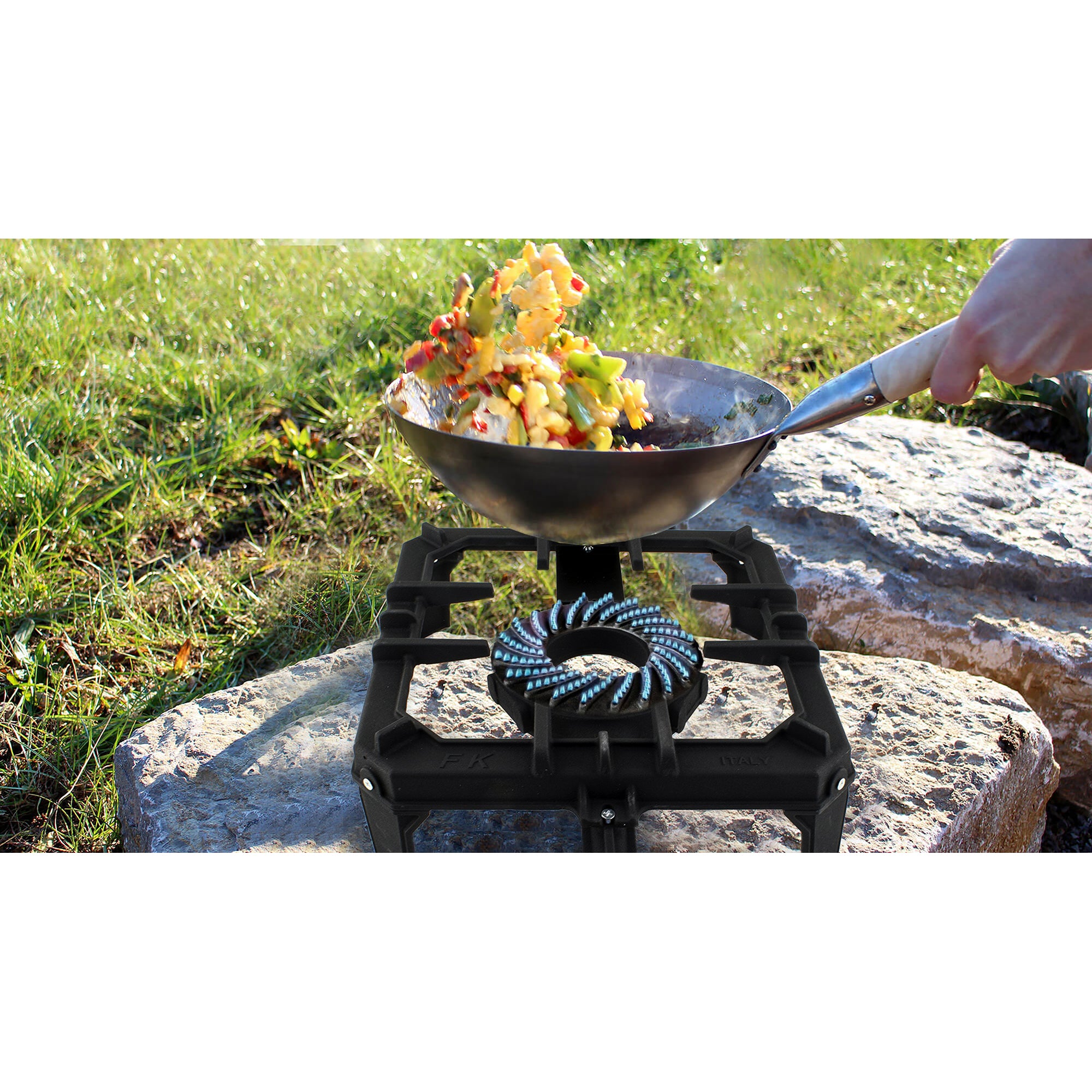 This is a very sturdy and stable, freestanding single burner gas cooker made of durable cast iron. It can withstand heavy loads and, thanks to its wide burner, cooking with it is extremely fast.