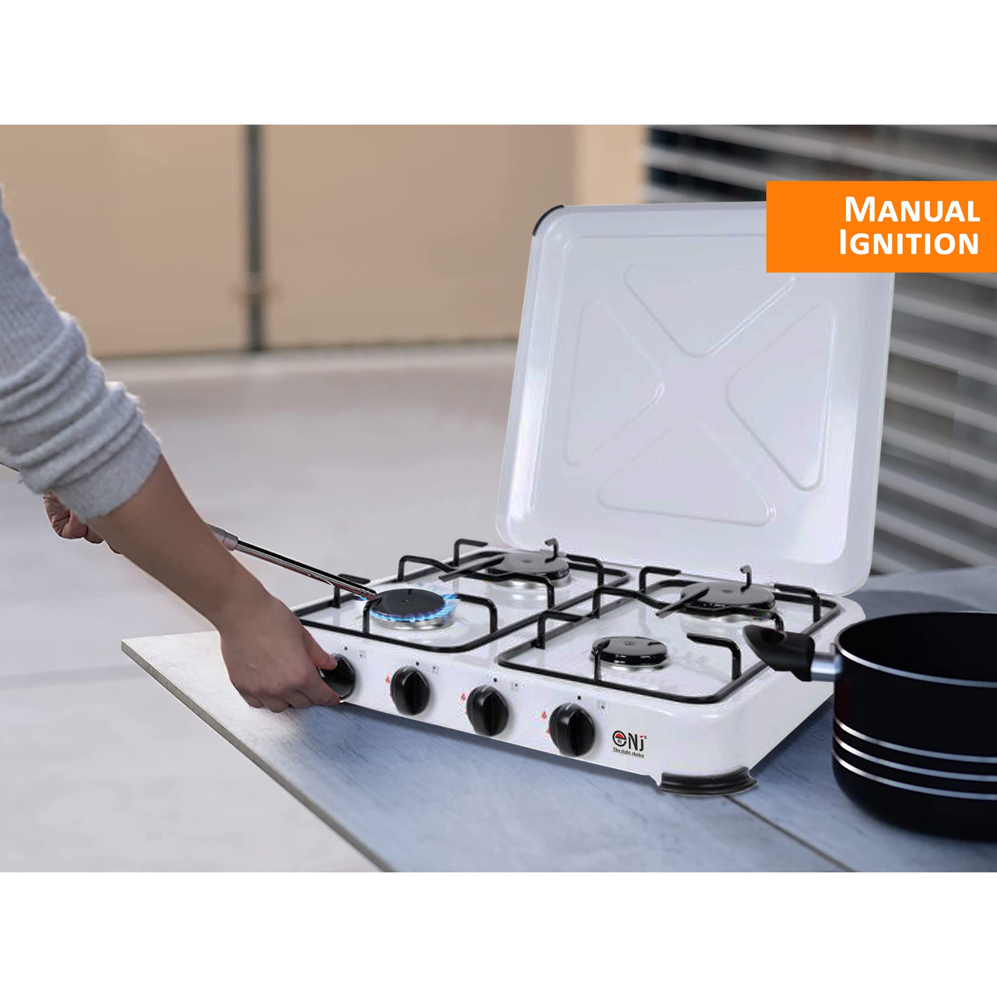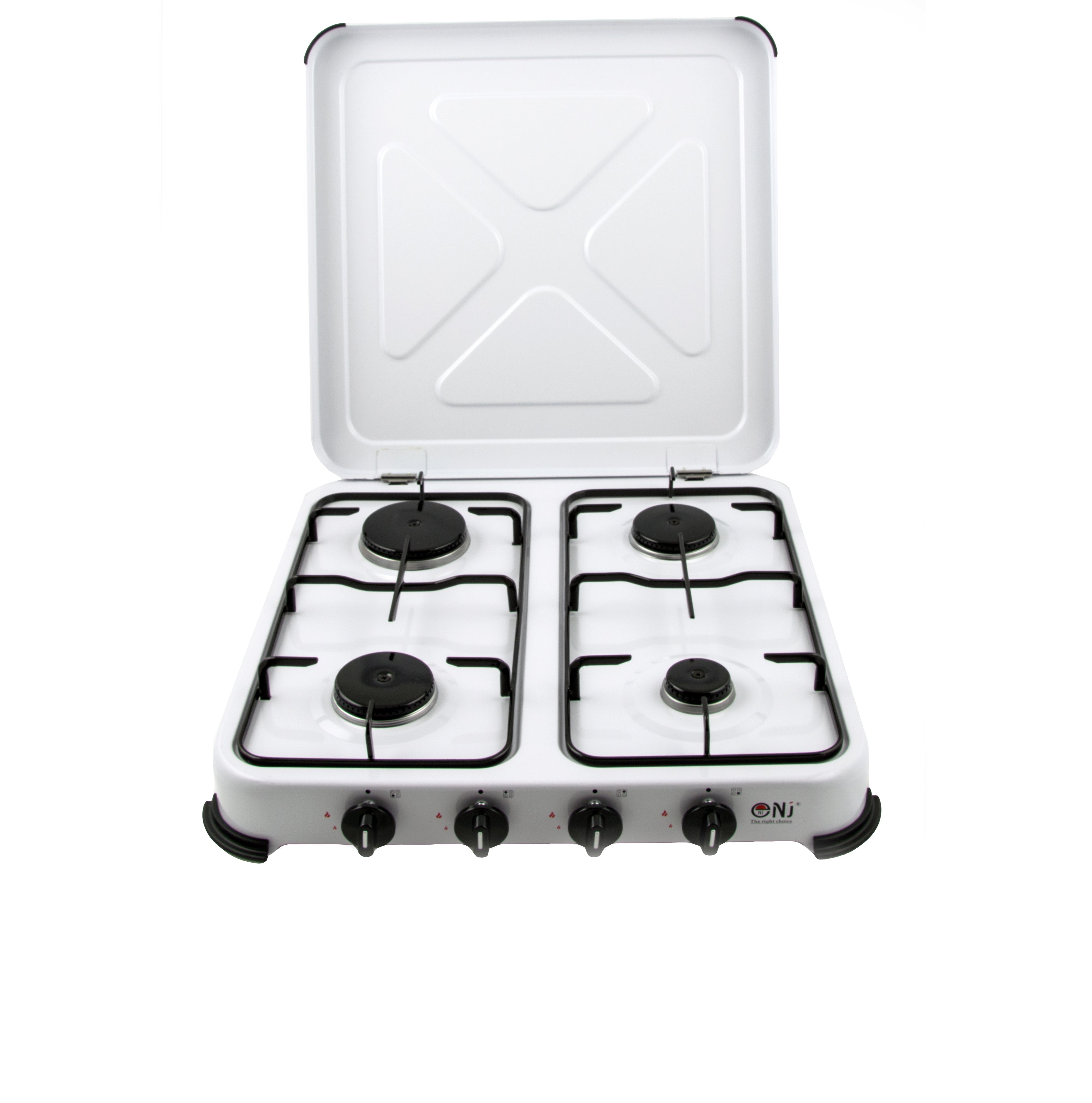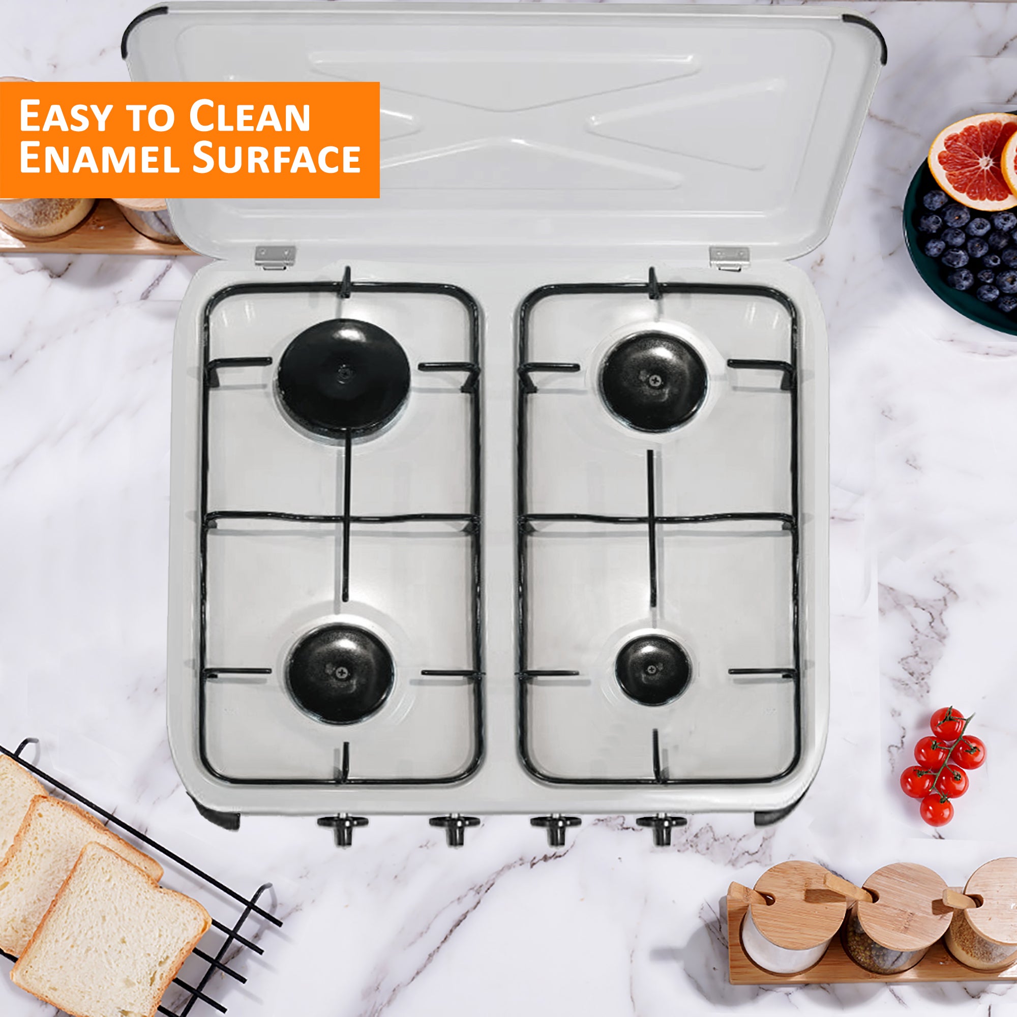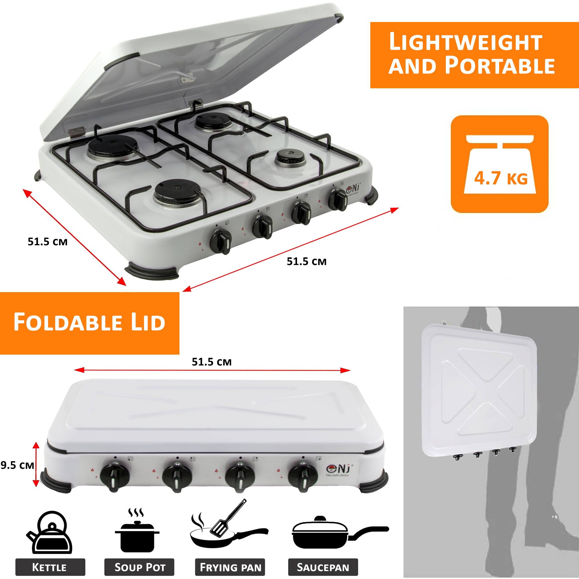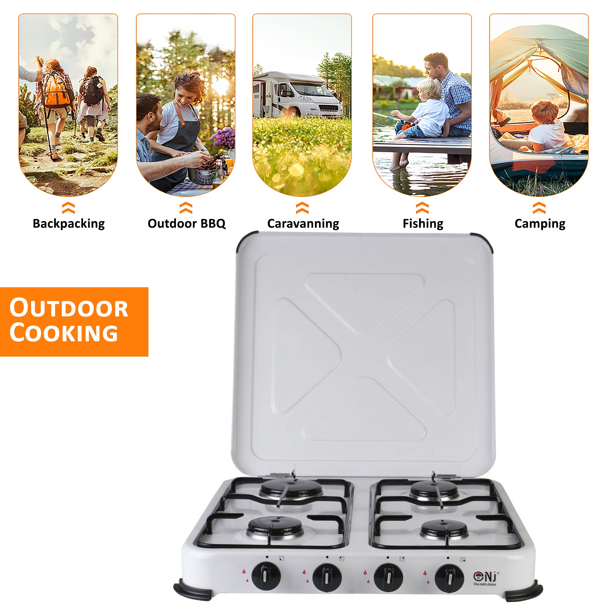 NJ-04 Camping Gas Stove 4 Burner Enamel Lid Outdoor