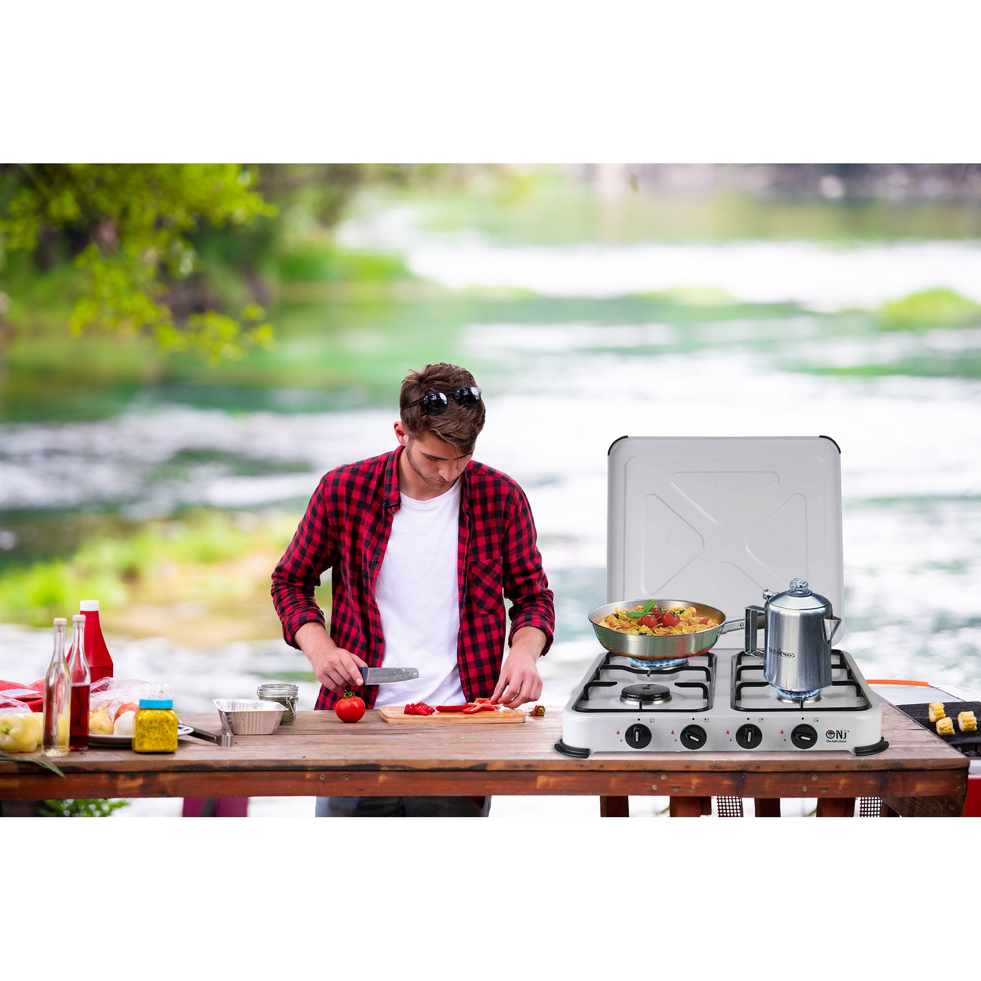 Having 4 fully adjustable burners with different power level and a cover which shields them from wind this stove top is going to make it a lot easy and quick for you to cook during your family camping trip.