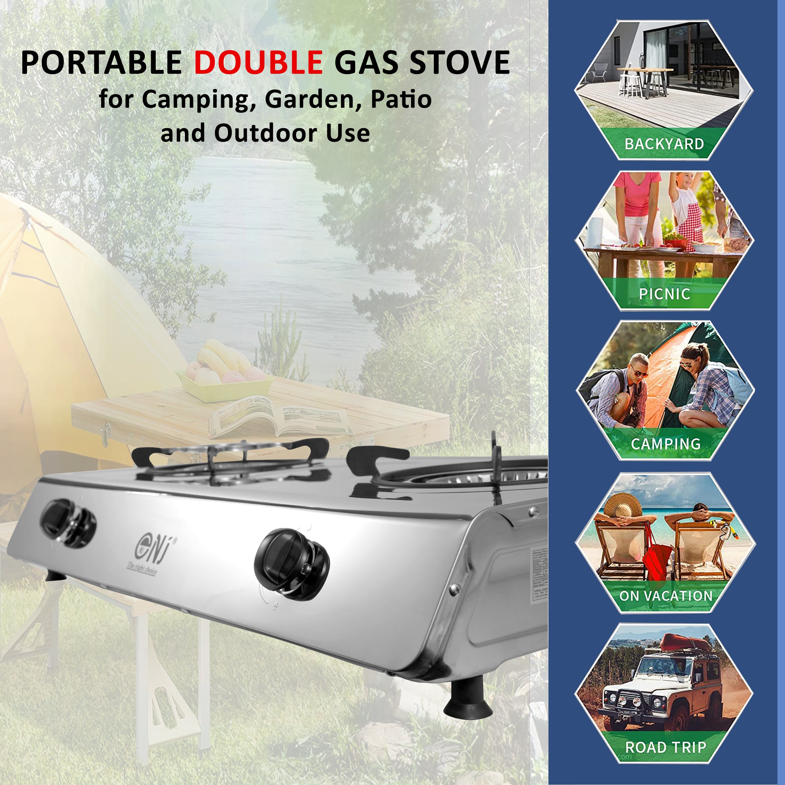 Eating is an important part of the day, no matter where you are. That's why, when you spend your free time outdoors like camping or touring, you need to be equipped with appliances for convenient cooking! We`d like to introduce to you the portable double burner gas stove NJ-200.