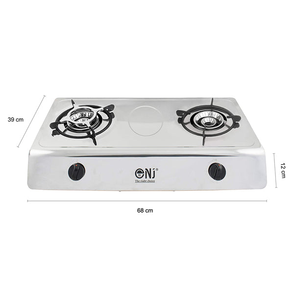 NJ-200 Gas Stove 2 Burner Stainless Steel 70cm Piezo Outdoor use