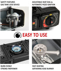 - Portable and stylish, compact, lightweight gas stove with removable pan support