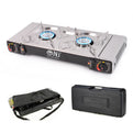 NJ SG-2S Portable Double Burner Stainless Steel Camp Gas Stove Butane BBQ Outdoor Cooker