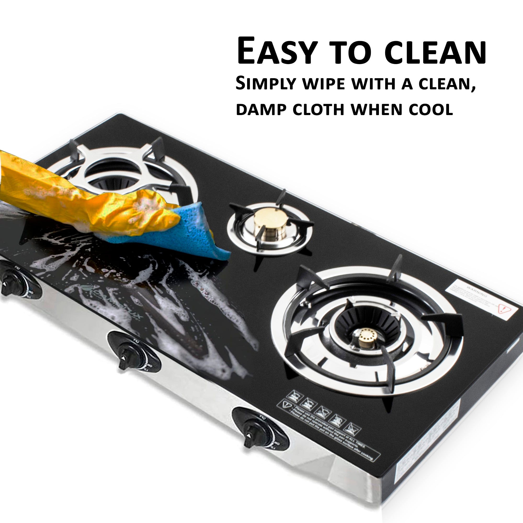 This counter-top is perfect for people who want to cook several dishes at the same time due to its 3 high-efficiency burners – single, double and small.