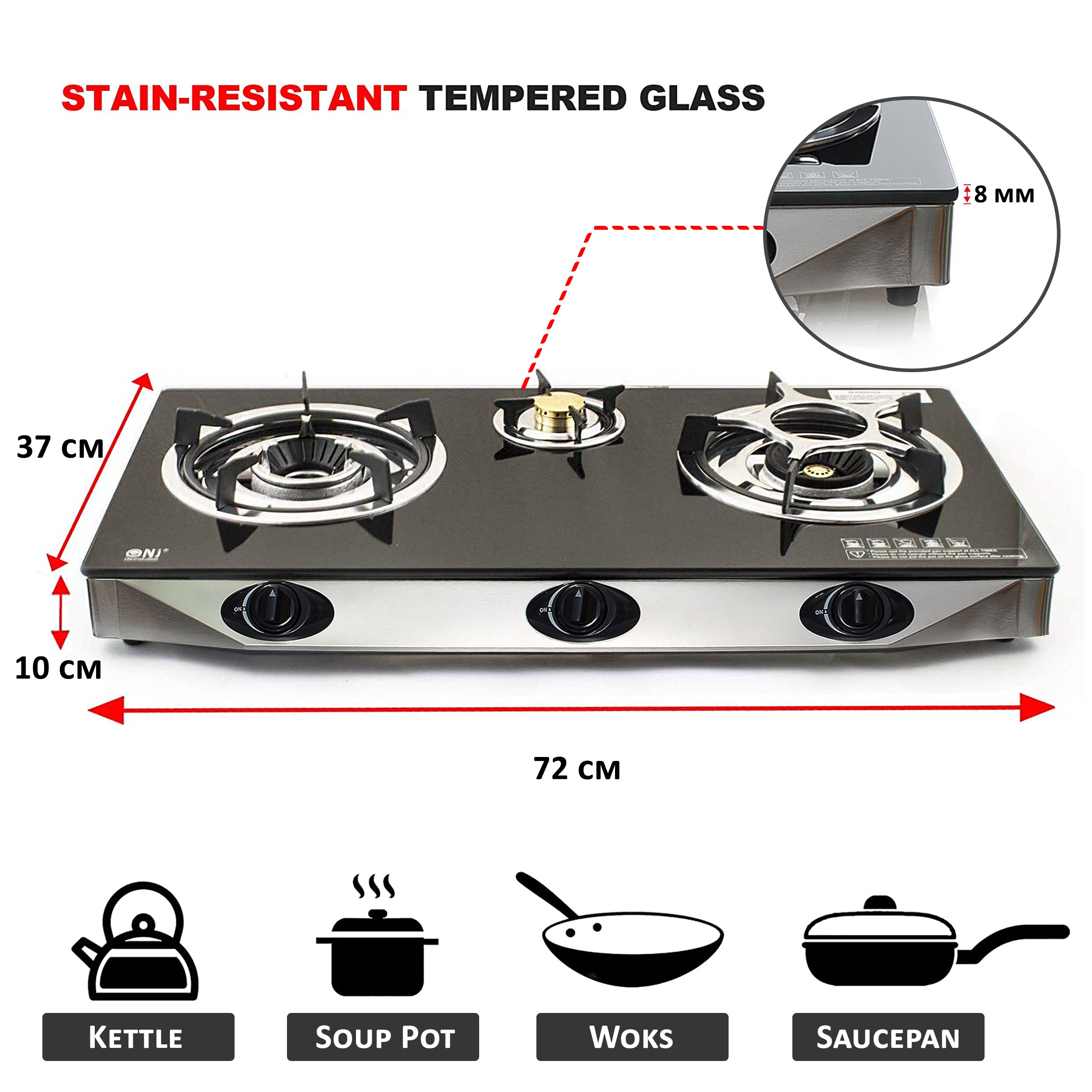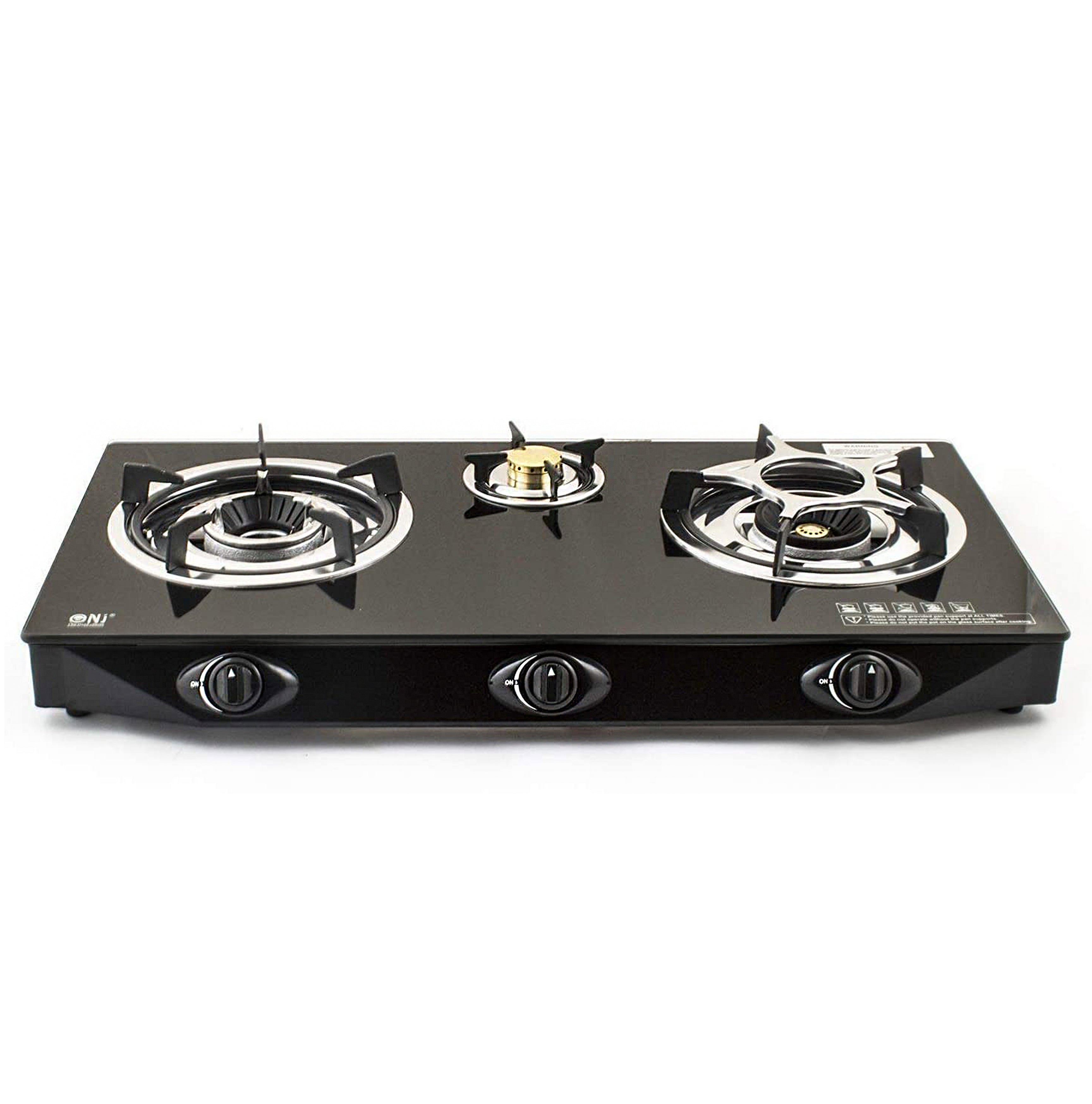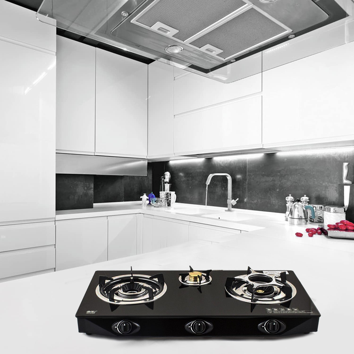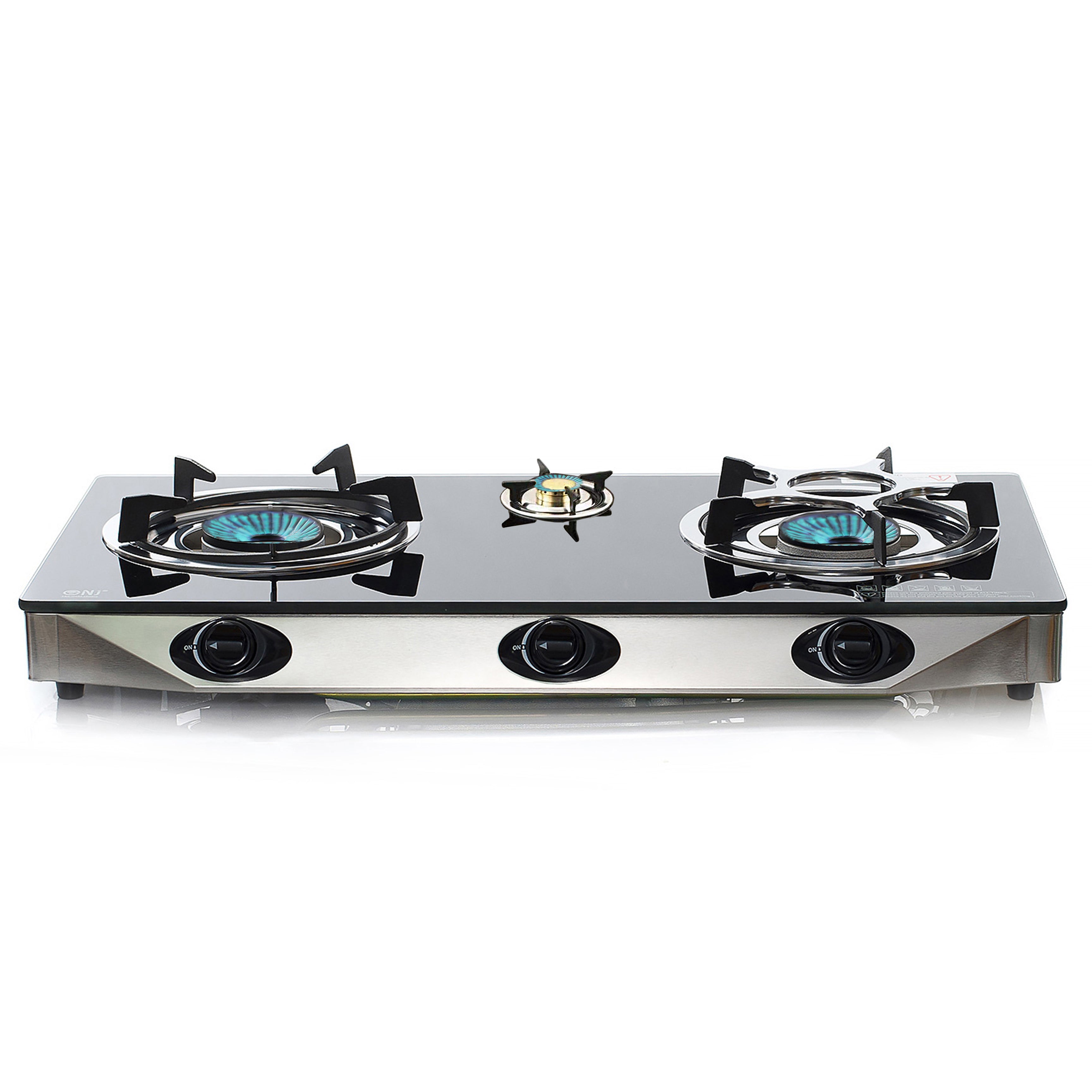 NJ NGB-S3 Black Glass 3 Burners Gas Stove