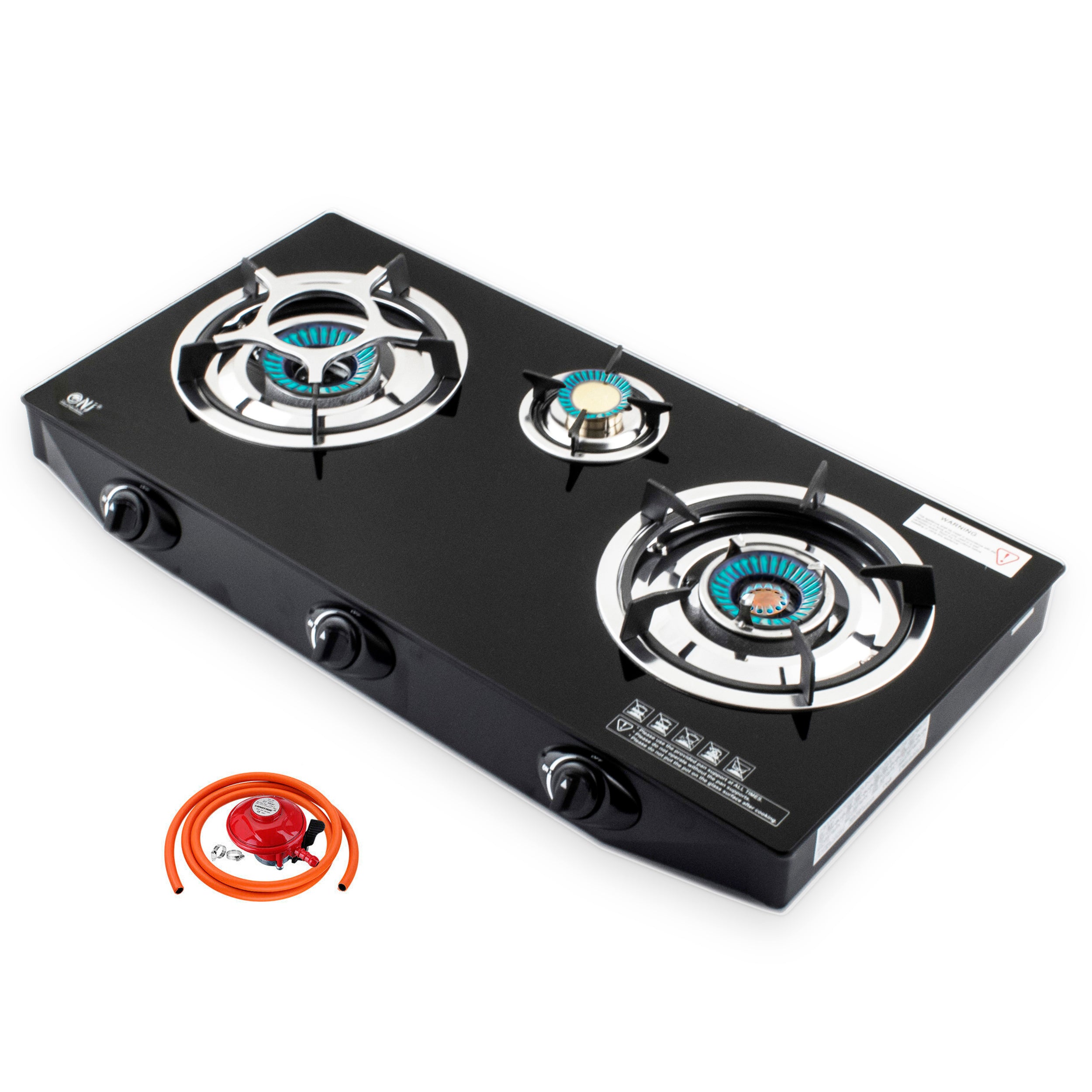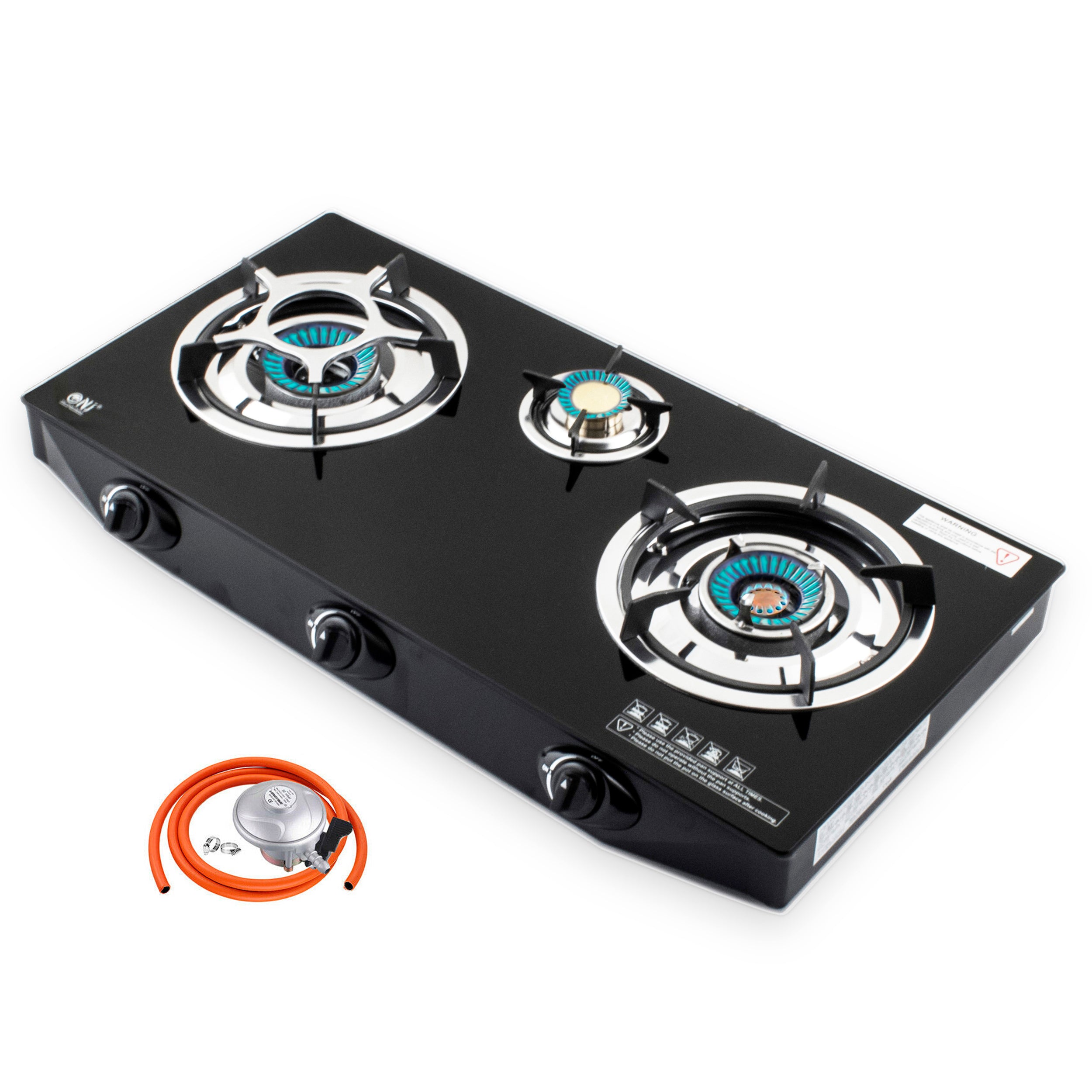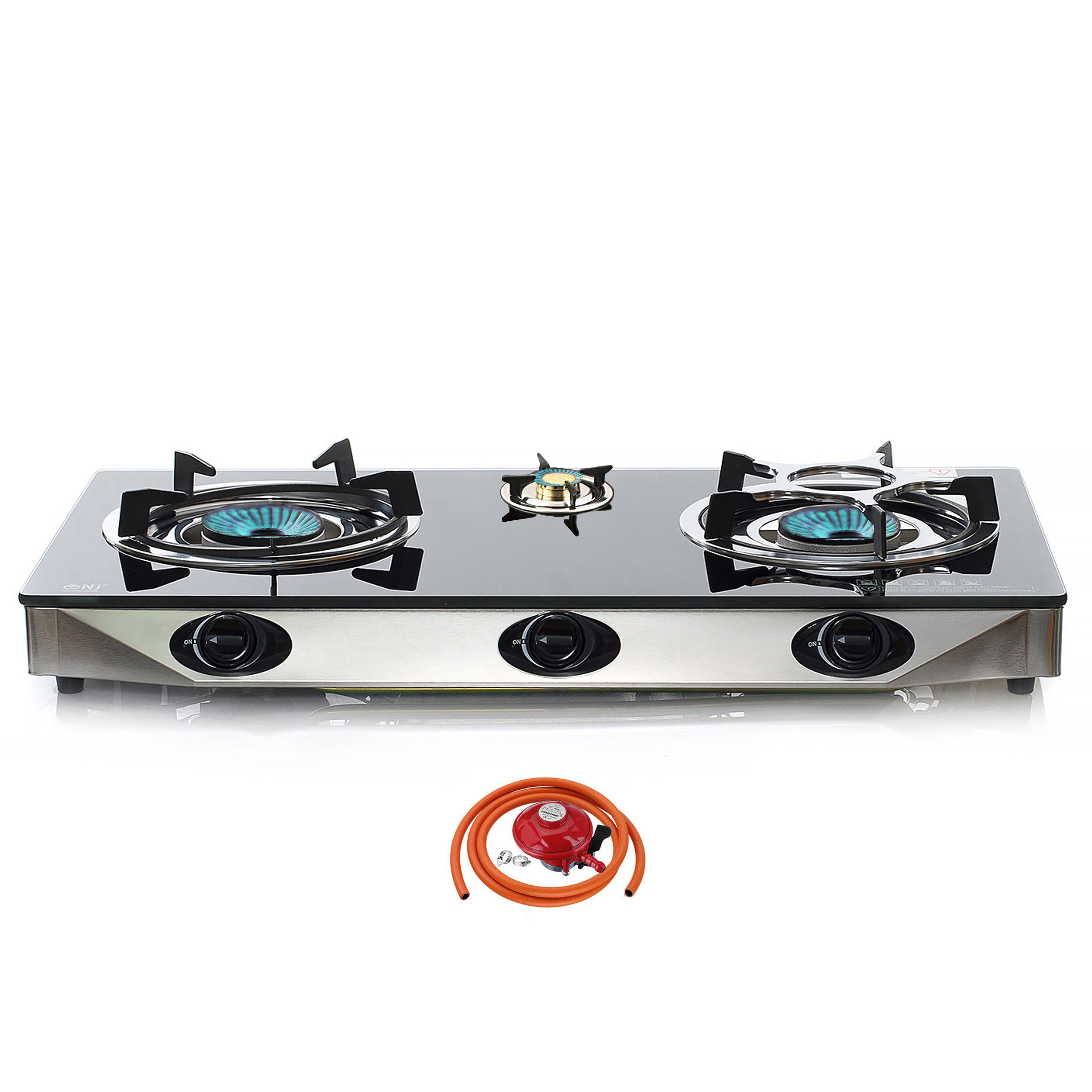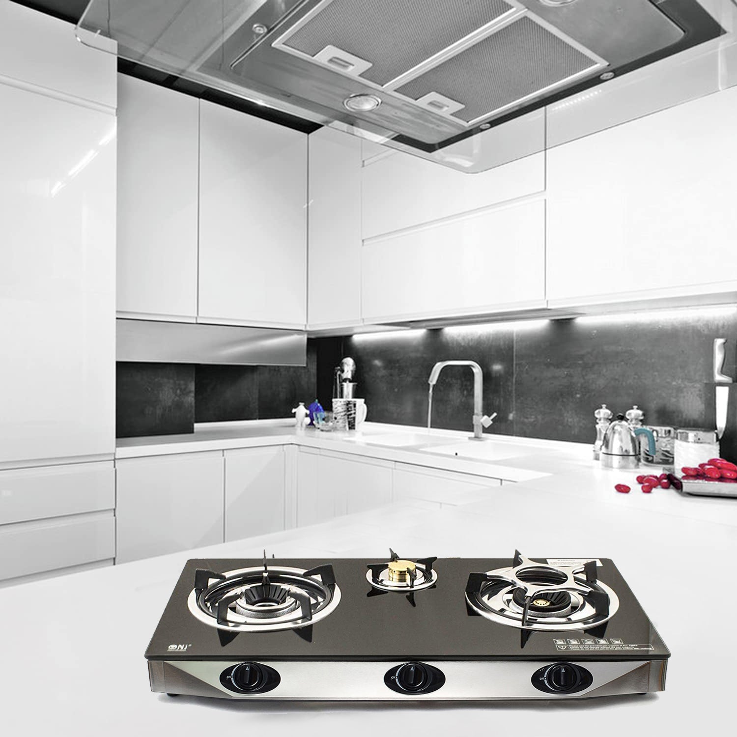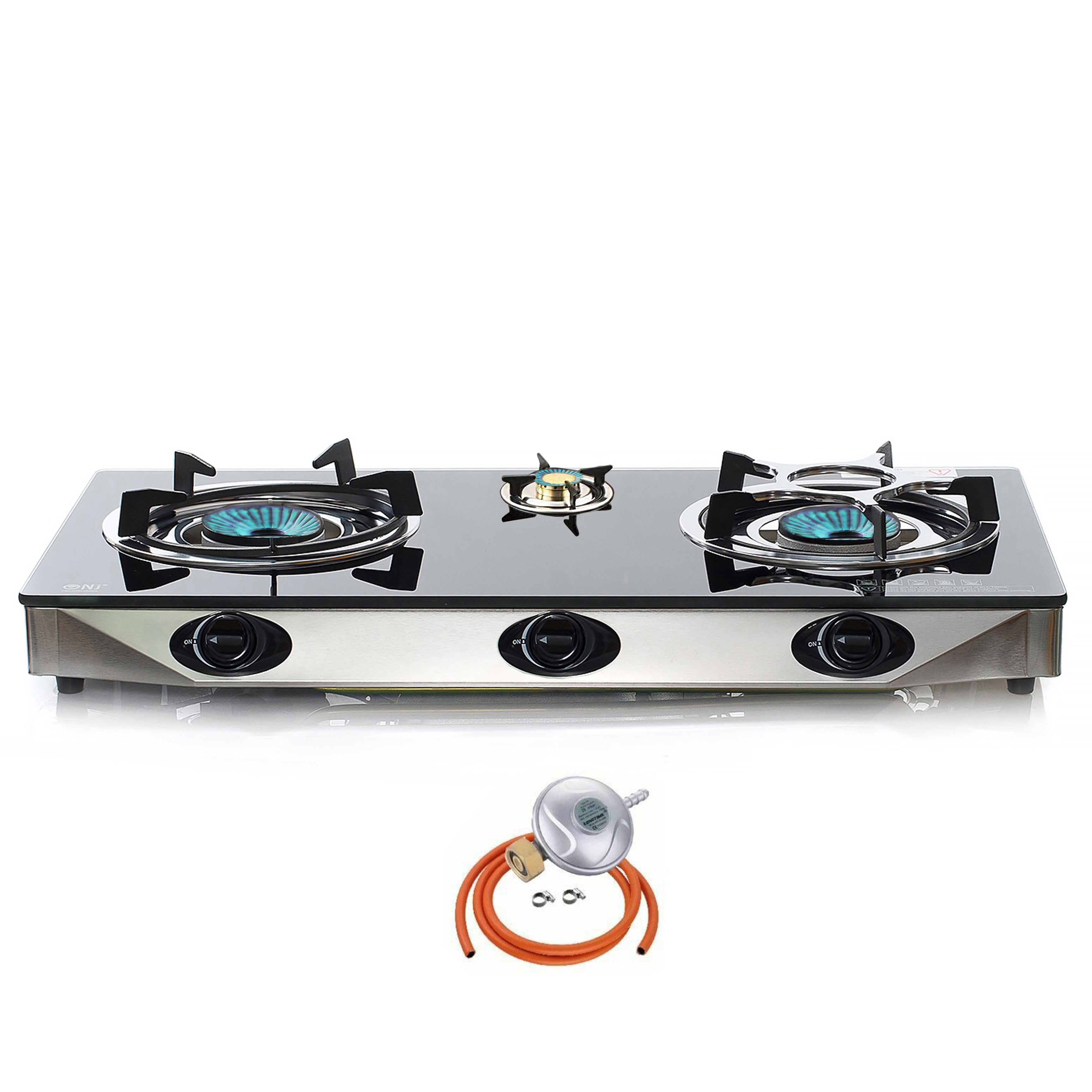 NJ NGB-S3 Black Glass 3 Burners Gas Stove