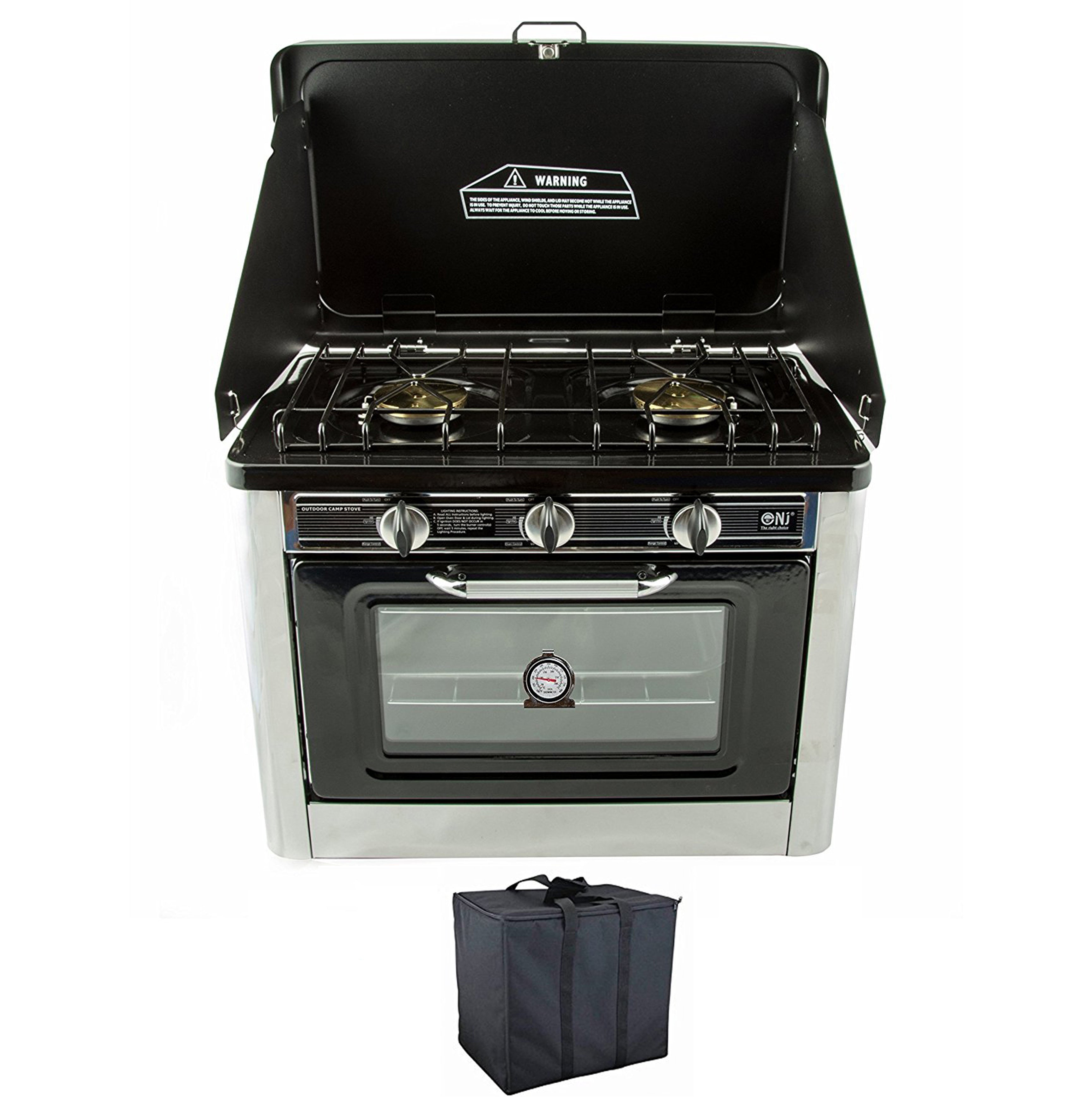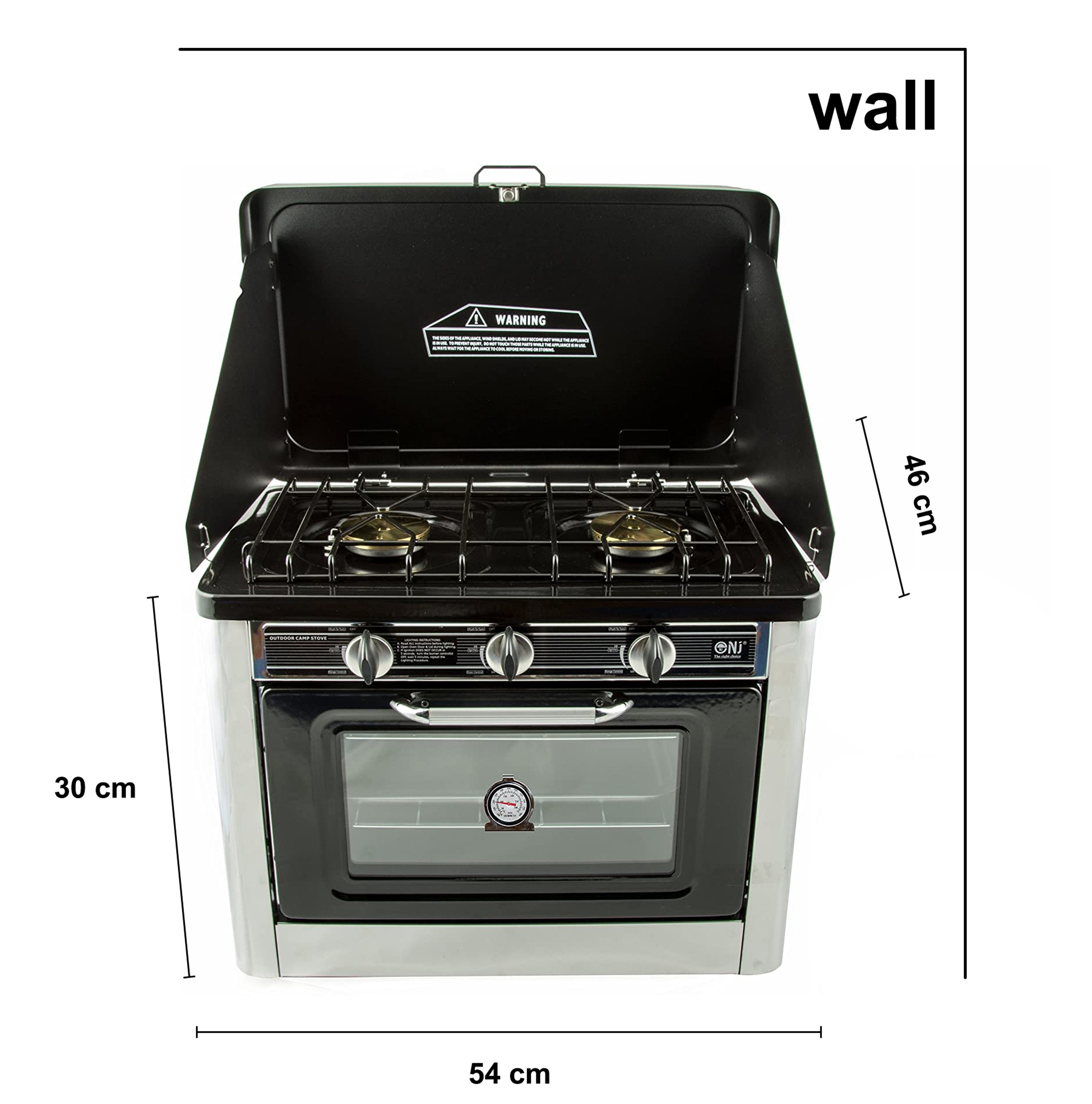 NJ CO-01 Portable Camping 2in1 Gas Stove 2 Burners and Oven Stainless Steel for Outdoor