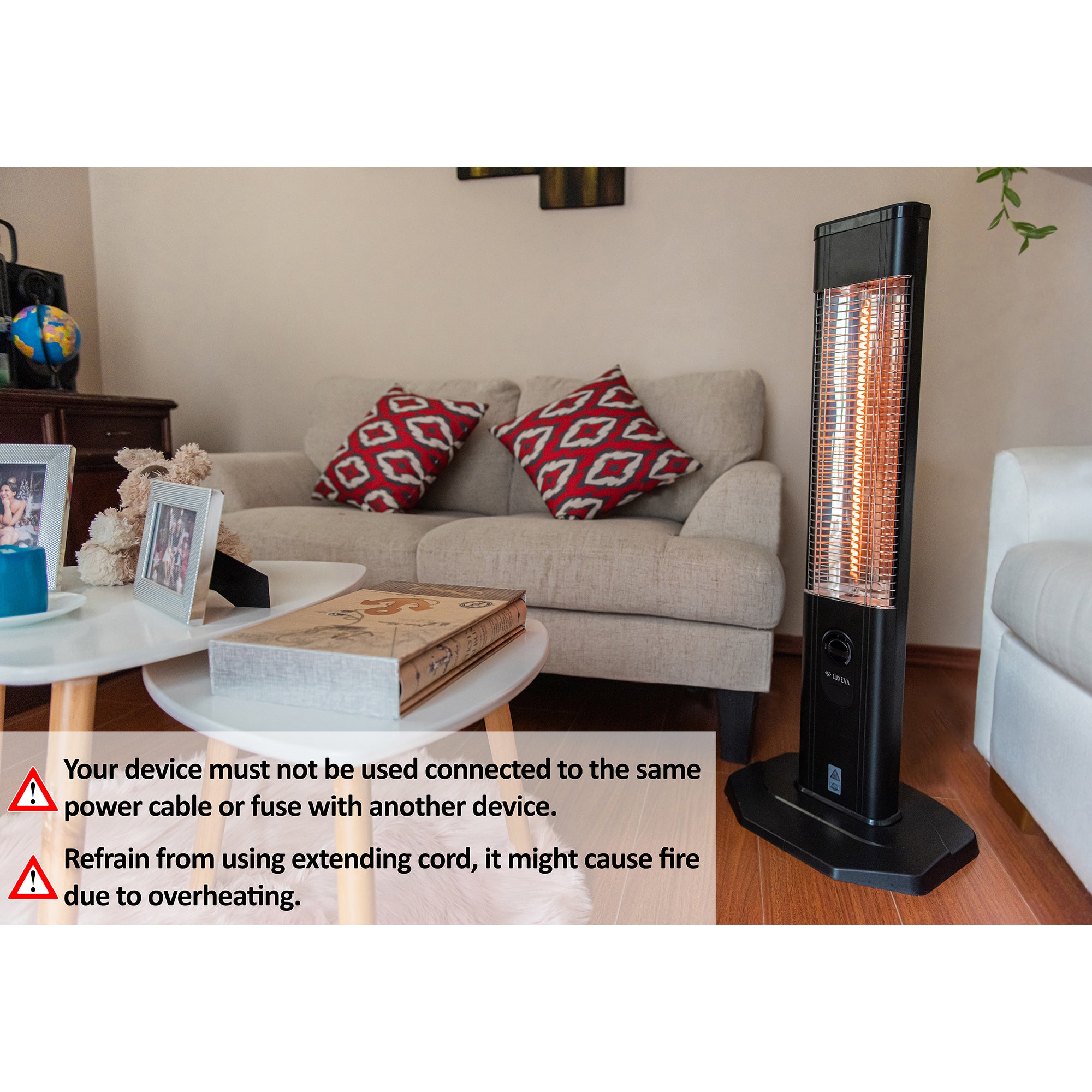 With its trendy stylish design and aluminum housing this modern portable heater is a great way to keep yourself and others warm and cozy! Wherever it’s placed this stunning electric heater will provide at atmospheric glow and warm heat that is ideal for keeping yourself and others relaxed and comfortable at all times. Outdoors or in this incredible heater is suitable for a wide variety of using and is suitable and safe for both domestic and commercial use. The heat-sensitive capillary thermostat keeps the environment always at the desired temperature. This infrared patio heater is powerful enough to easily keep warm an area of up to 22 m2. It is a high-quality product that will be used for long years with its tilt safety, easy to carry design and dust cover.