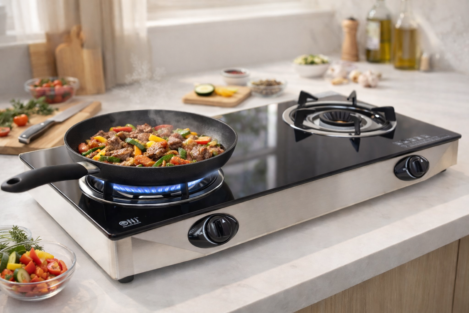 Adjustable flame settings let you fine-tune the heat for simmering, frying, boiling, or anything in between.