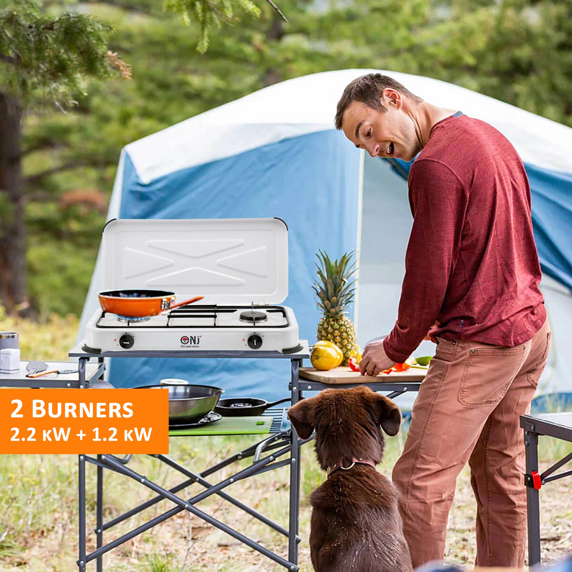 Portable, convenient, durable, reliable …. this is the NJ-02 camping gas stove with 2 fully adjustable burners. Made of high-quality materials with an enameled upper shell it is powerful enough to cook quickly and easily with it! Extremely suitable for your garden, terrace, or camping site.