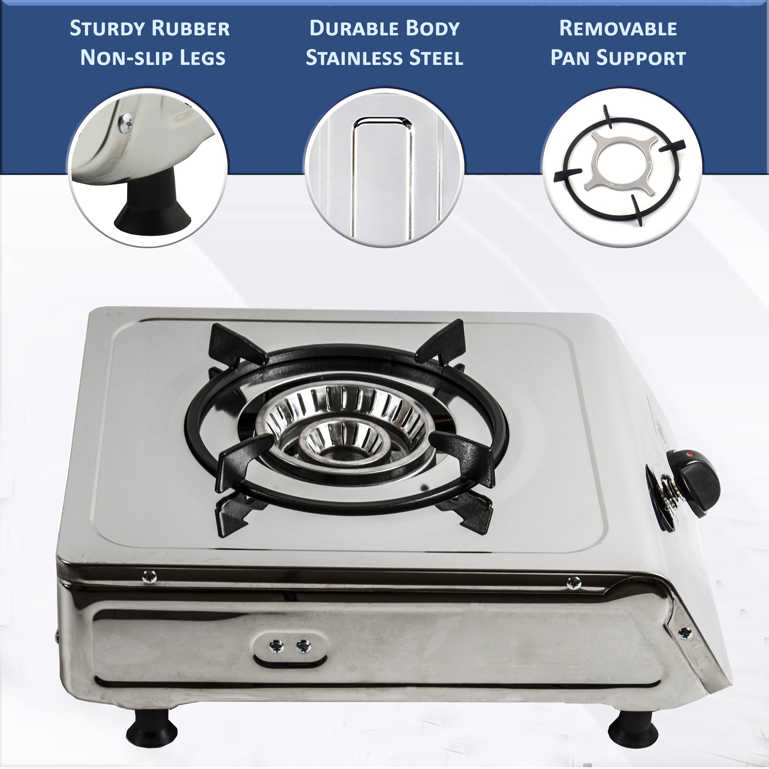 - Easy to clean: with removable cast iron pan stands and stainless steel burner rings.