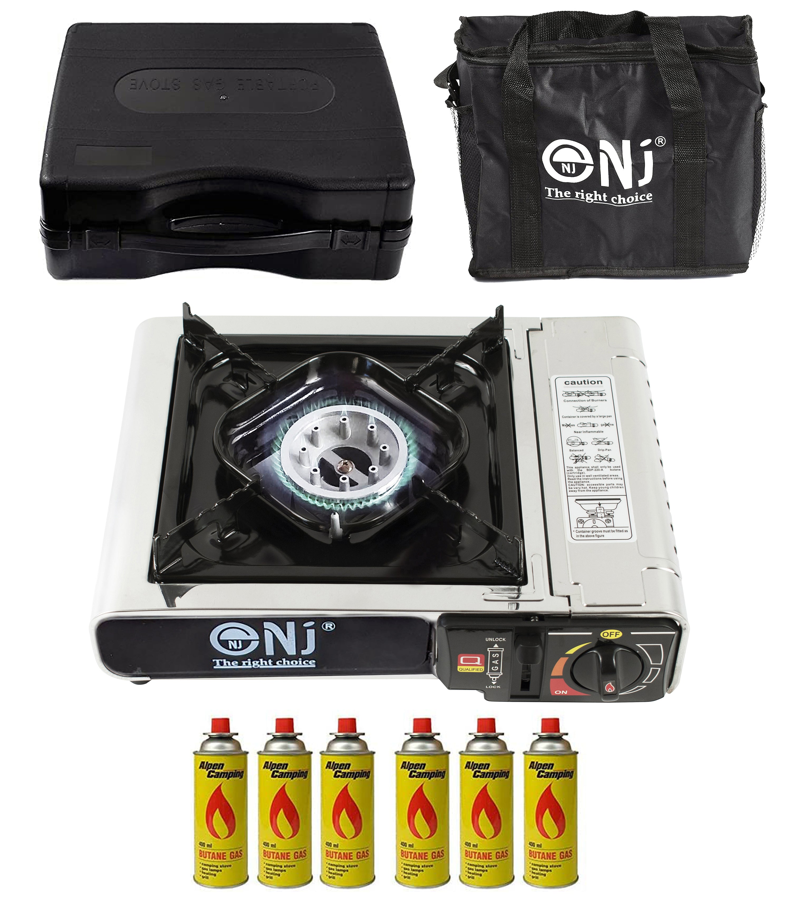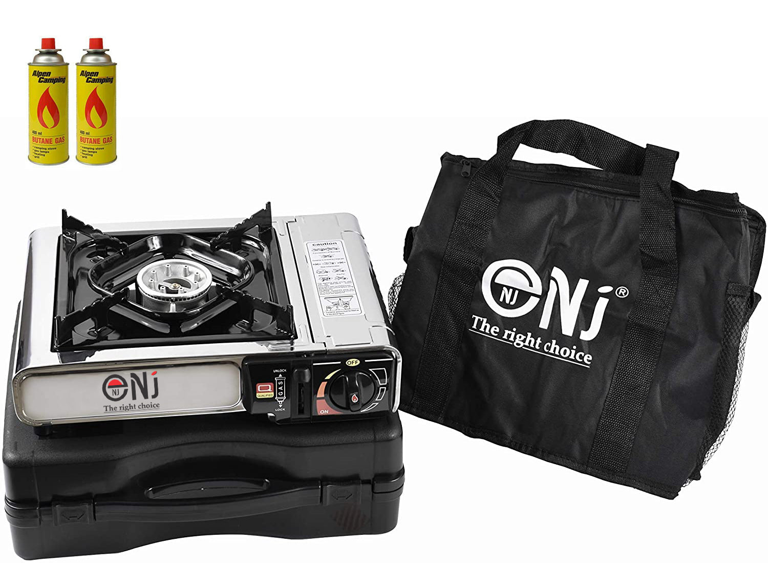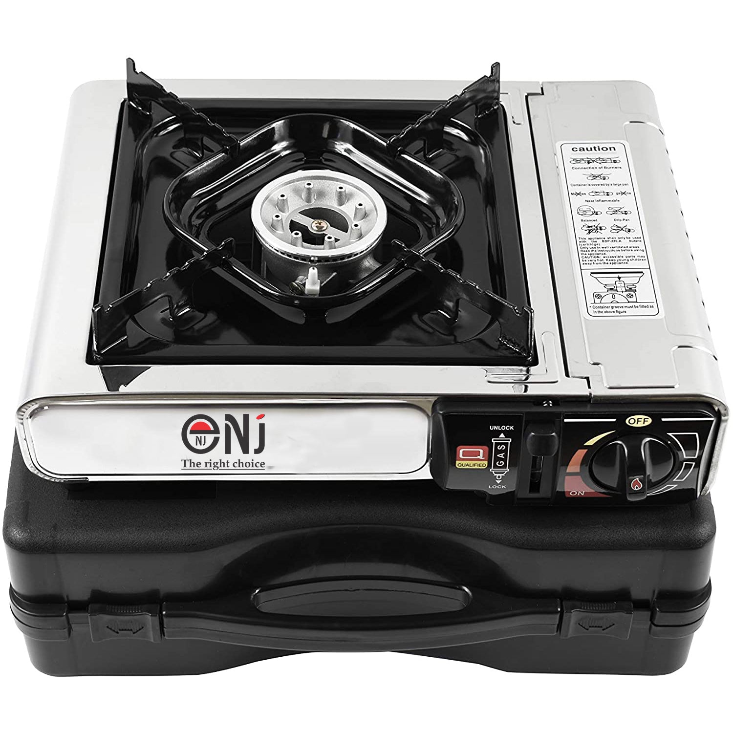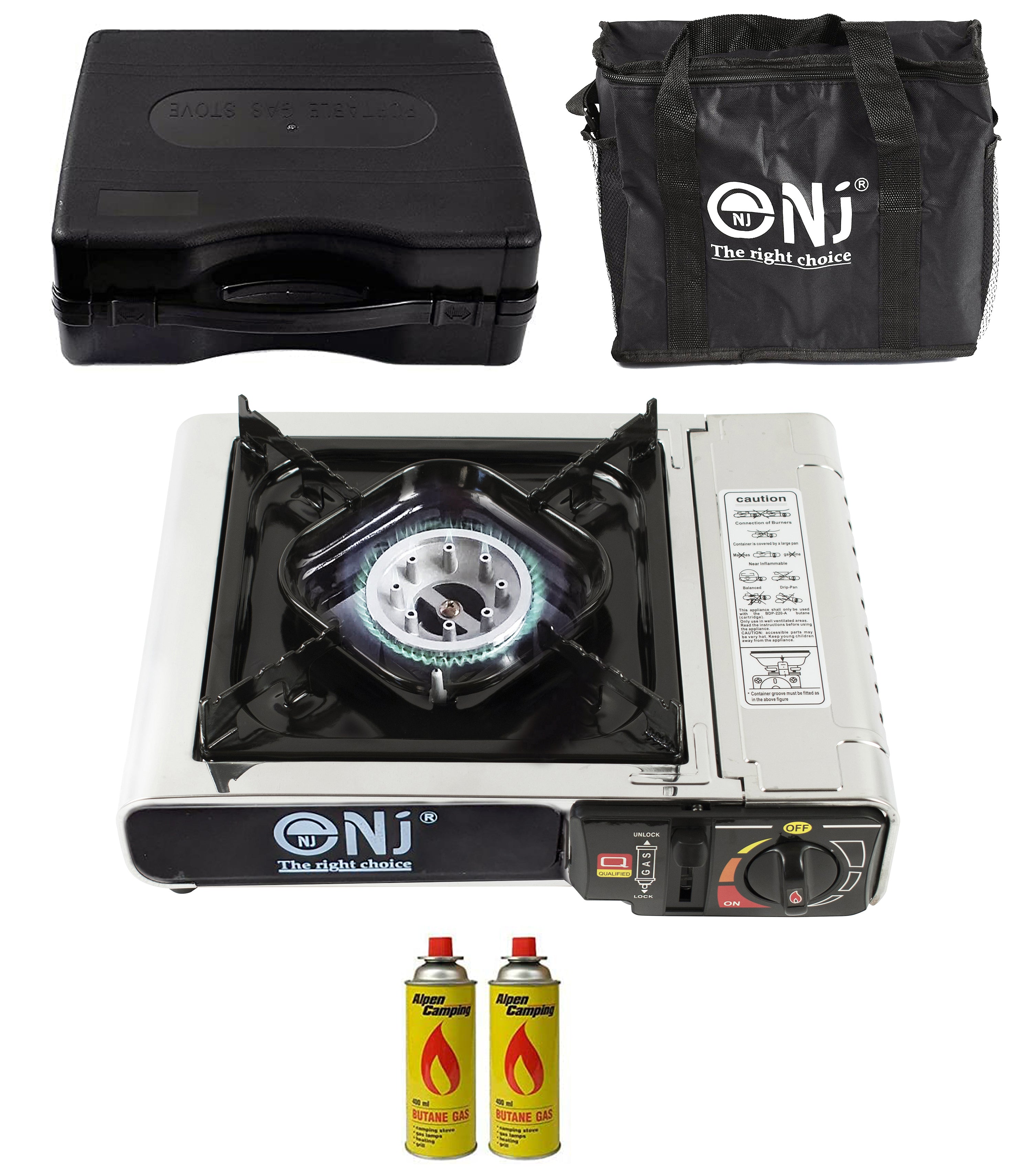 The plastic carry case is compact and the whole unit won`t take up much space in your luggage. It’s also accompanied with a convenient carry bag. Applied with gas safety devices, the NJ-500 camping stove is reliable and trust worthy.