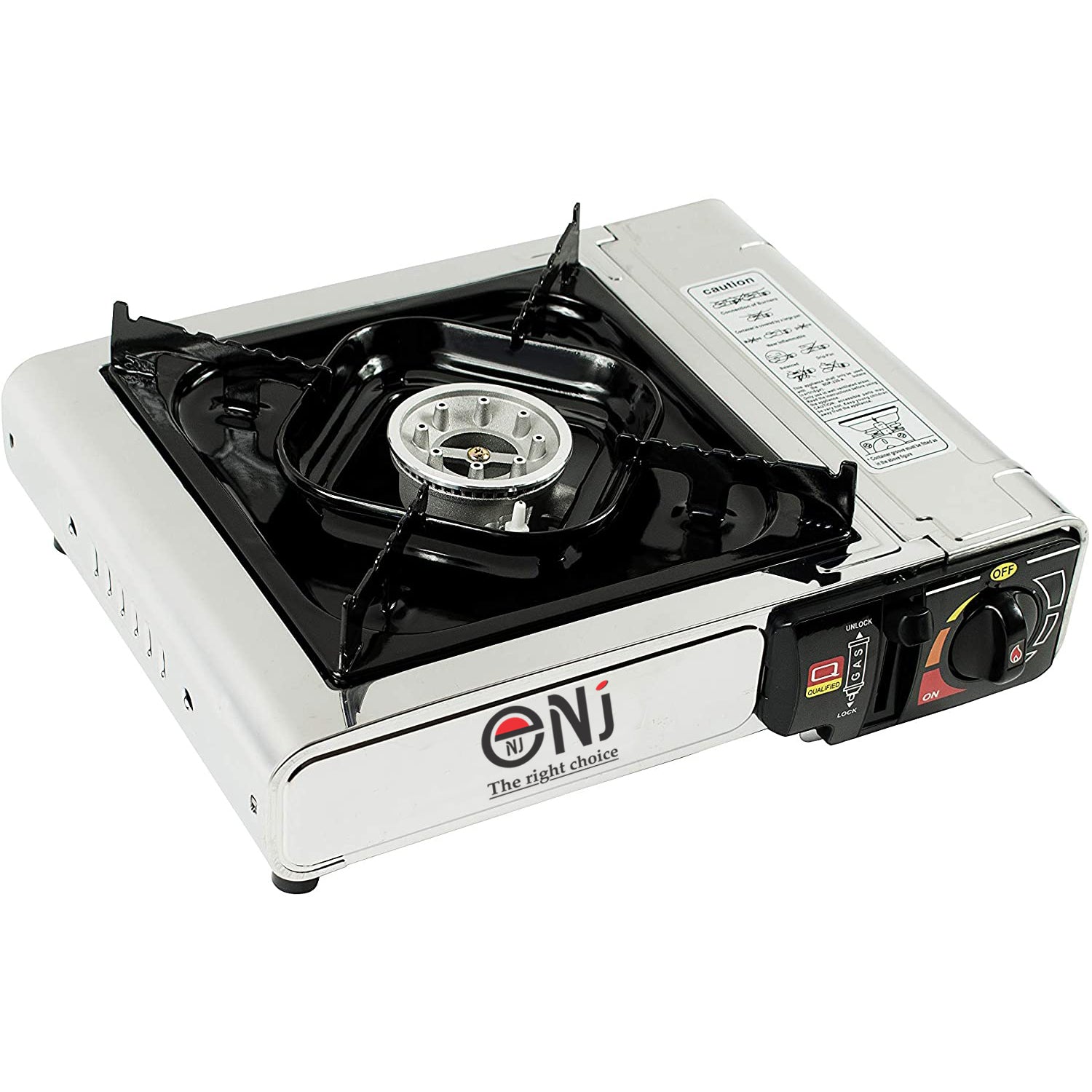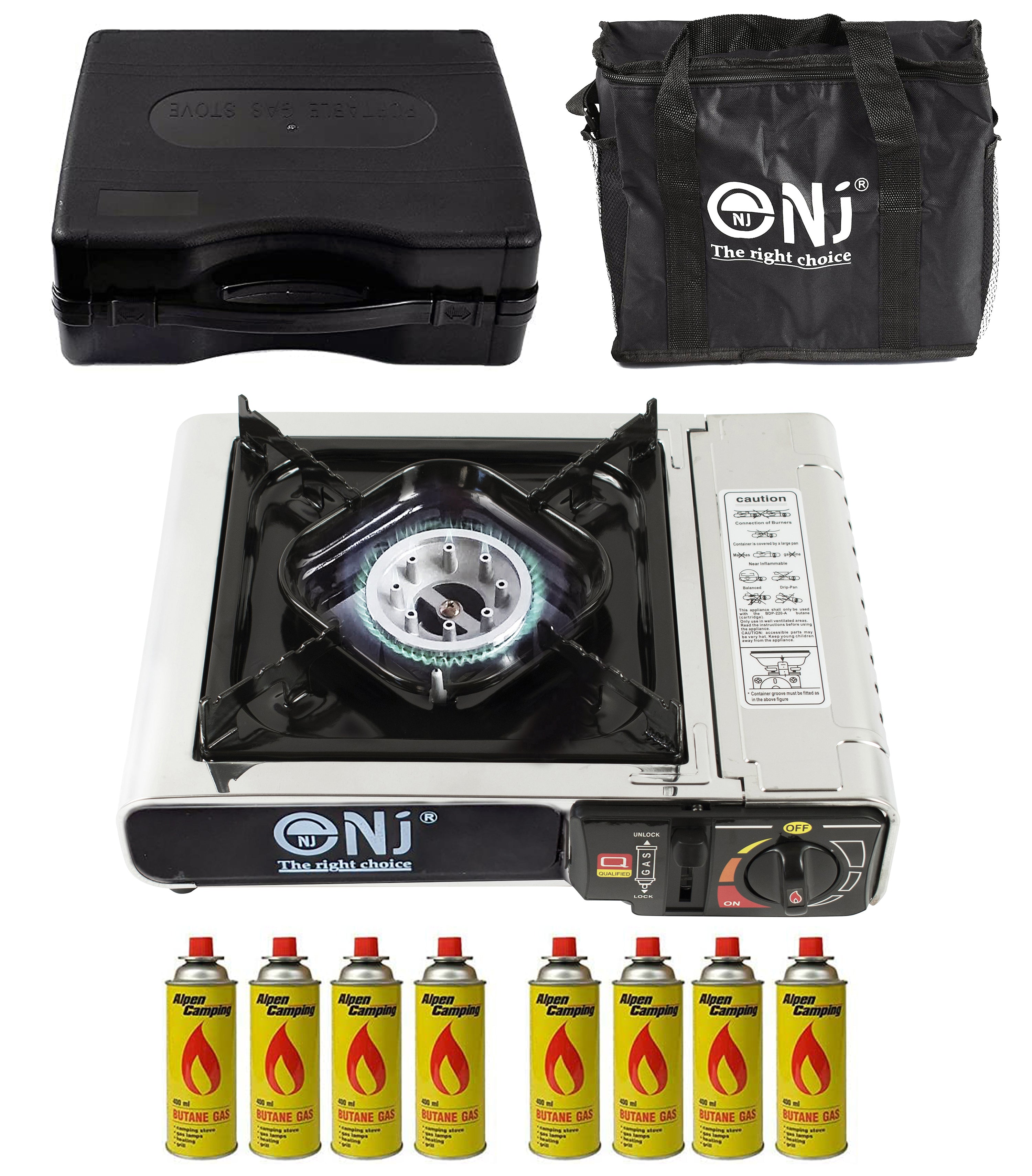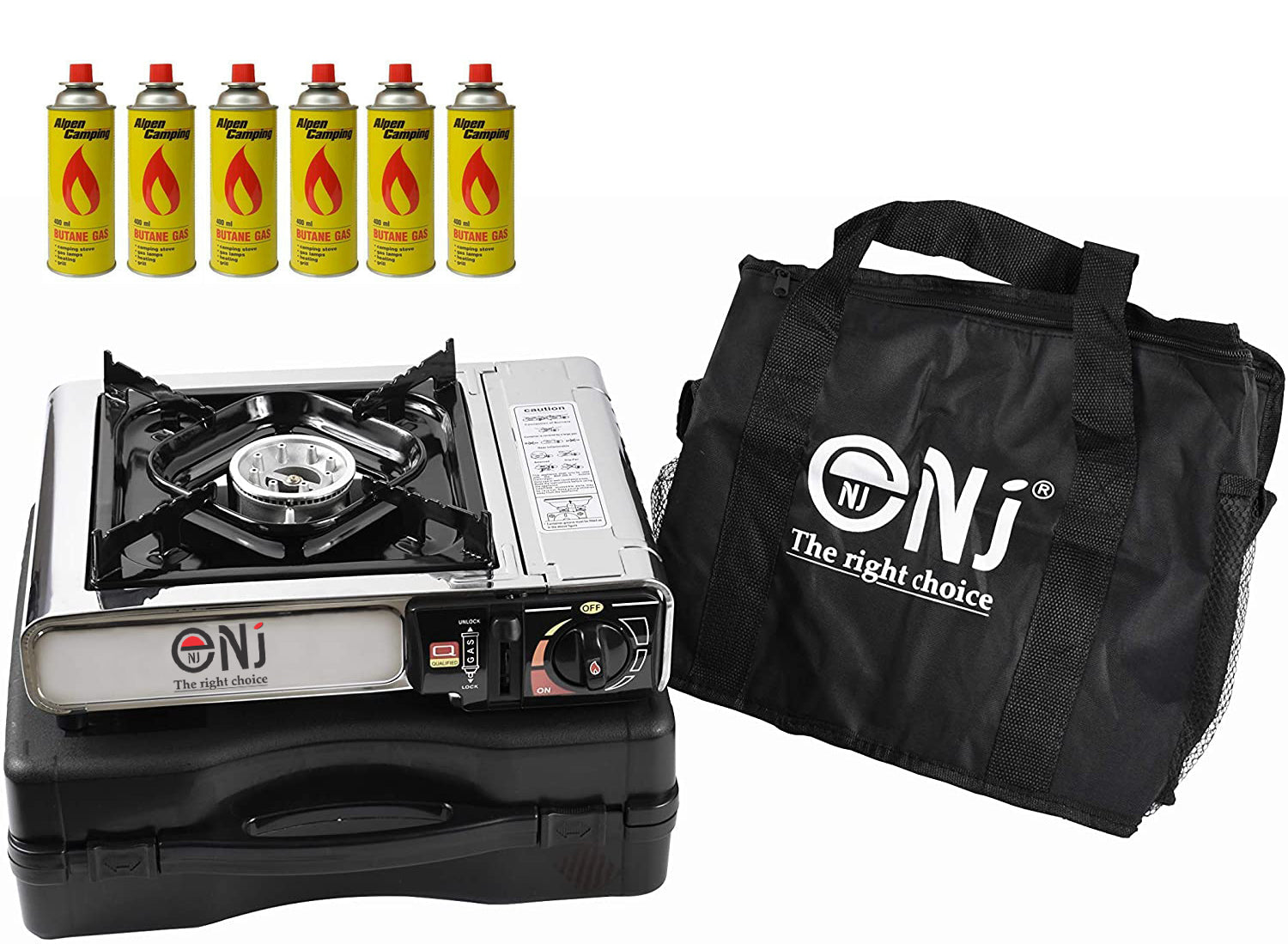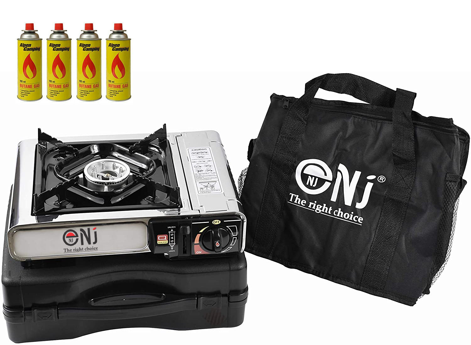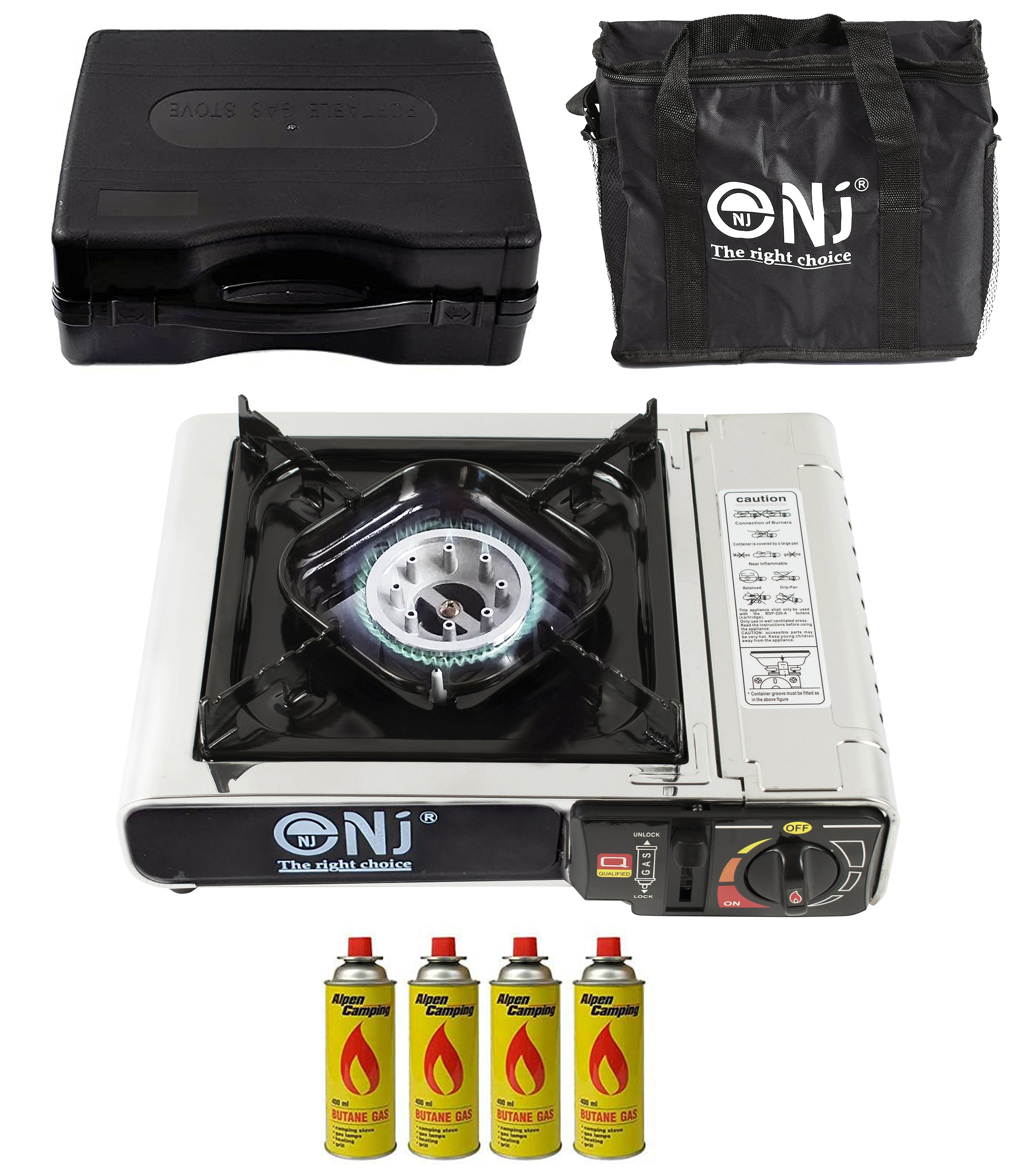 The plastic carry case is compact and the whole unit won`t take up much space in your luggage. It’s also accompanied with a convenient carry bag. Applied with gas safety devices, the NJ-500 camping stove is reliable and trust worthy.