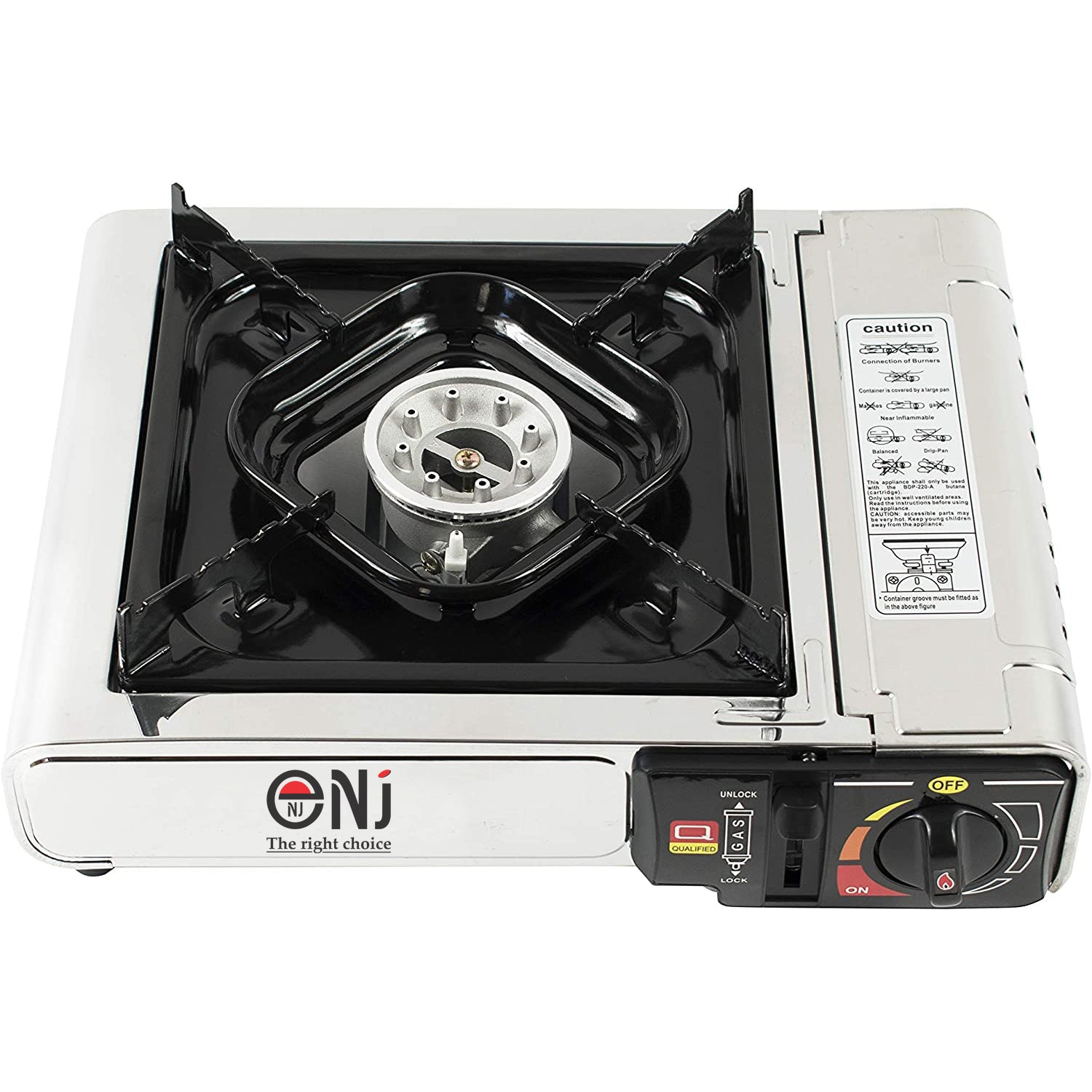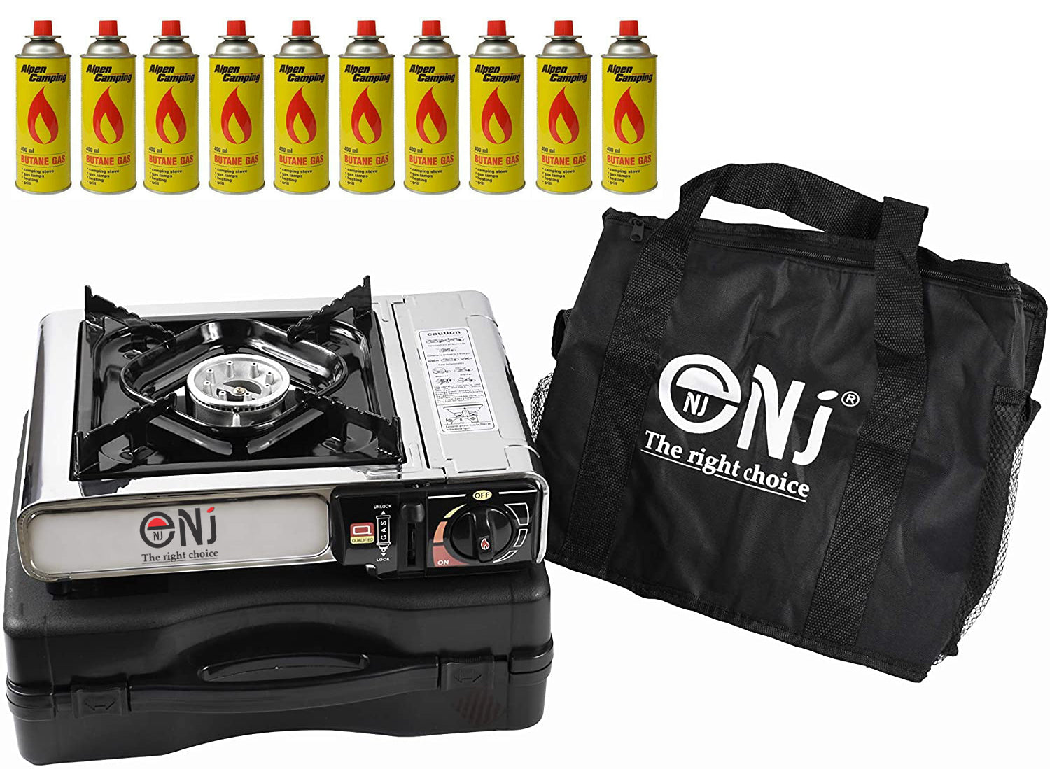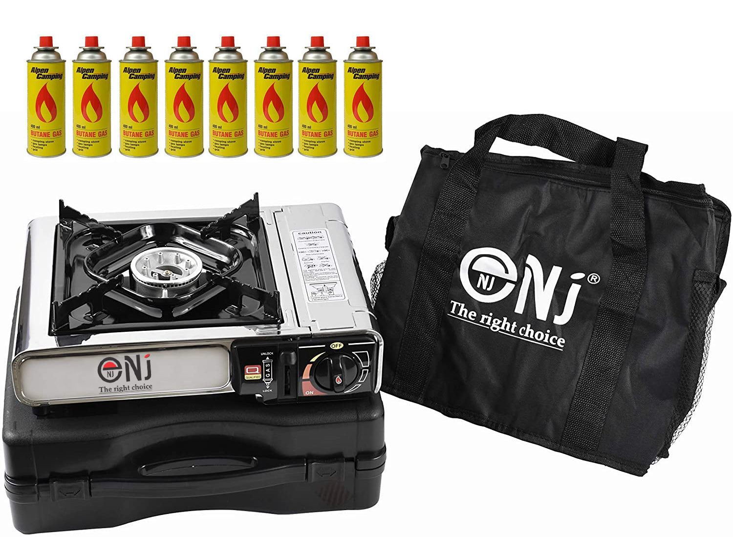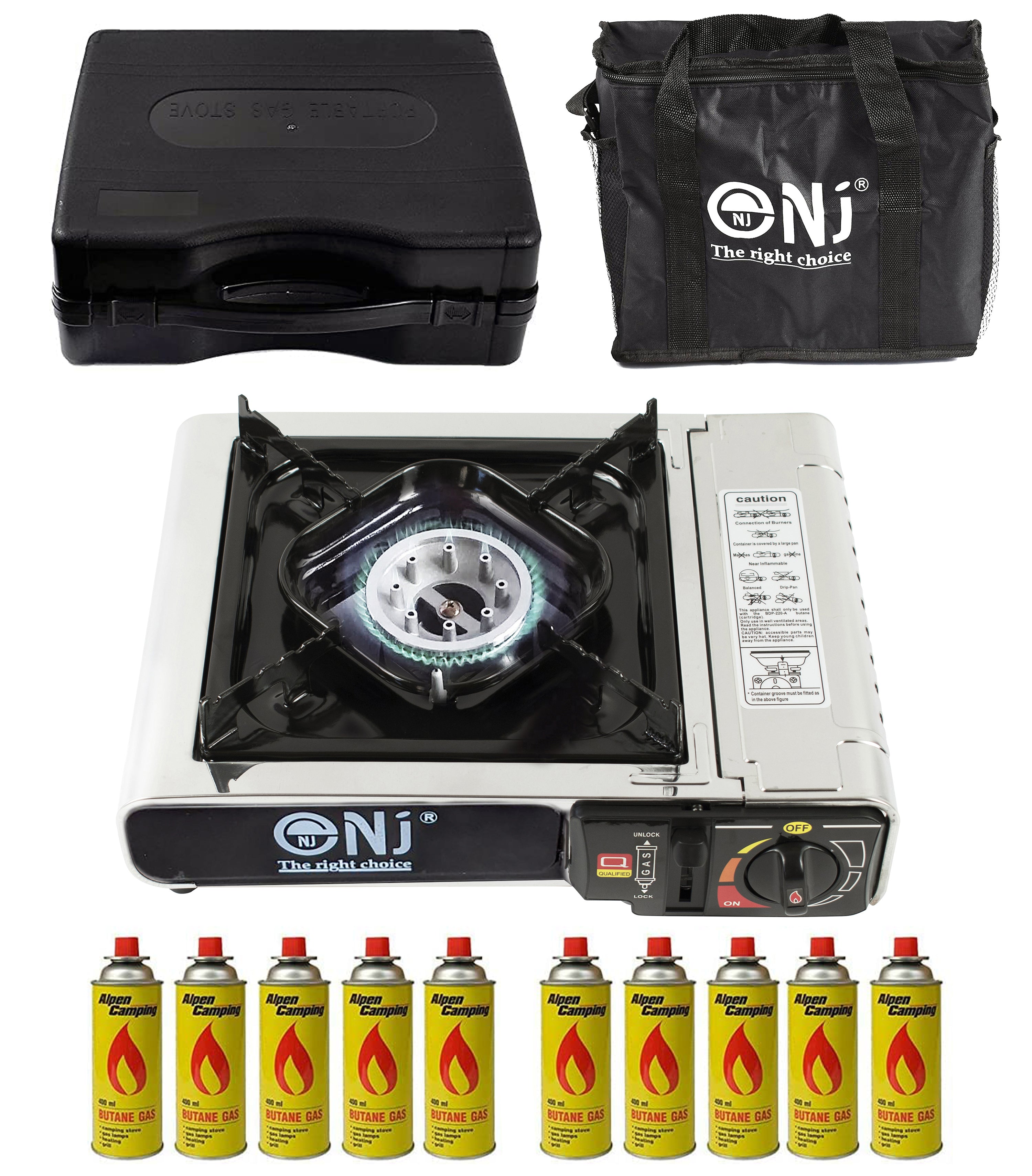 The plastic carry case is compact and the whole unit won`t take up much space in your luggage. It’s also accompanied with a convenient carry bag. Applied with gas safety devices, the NJ-500 camping stove is reliable and trust worthy.