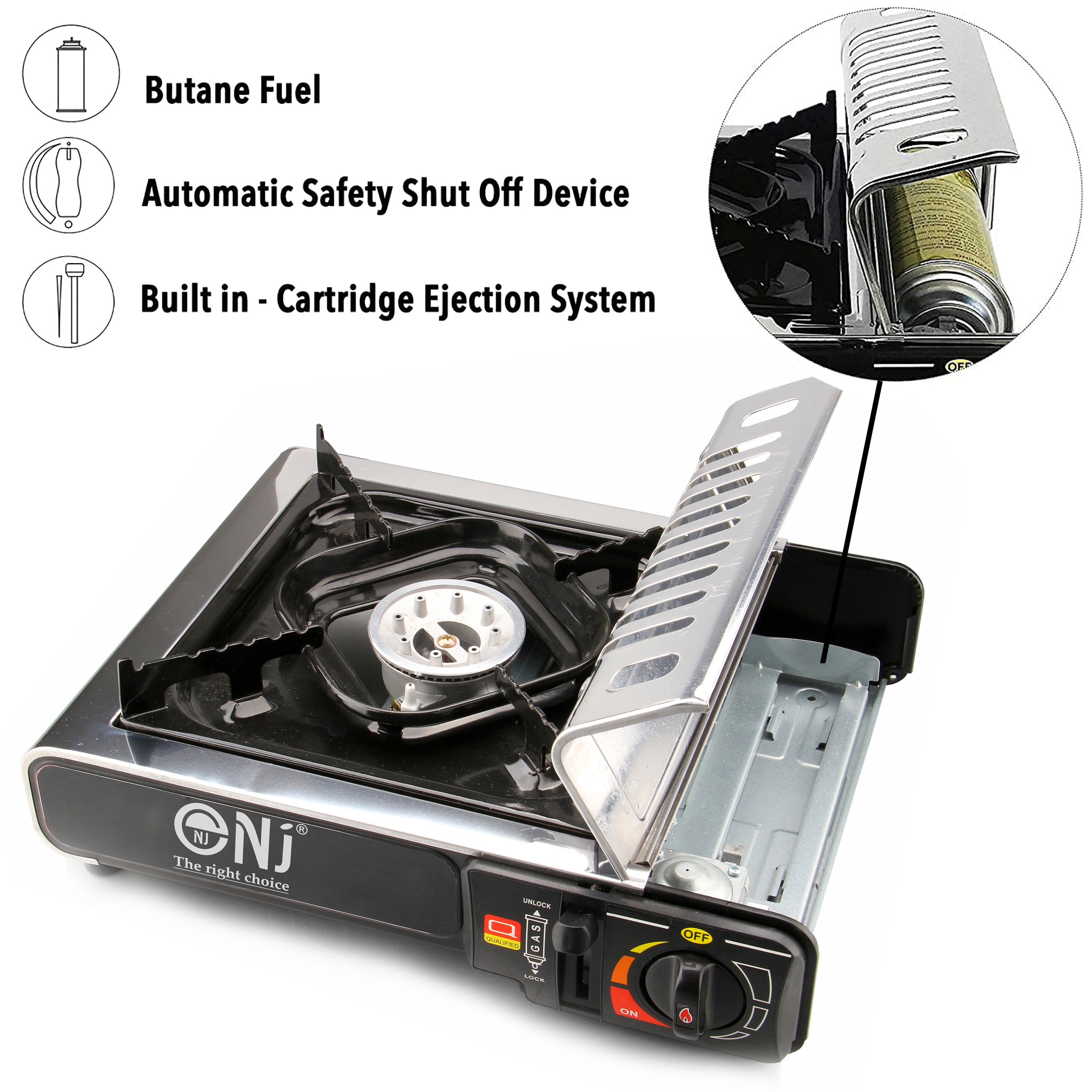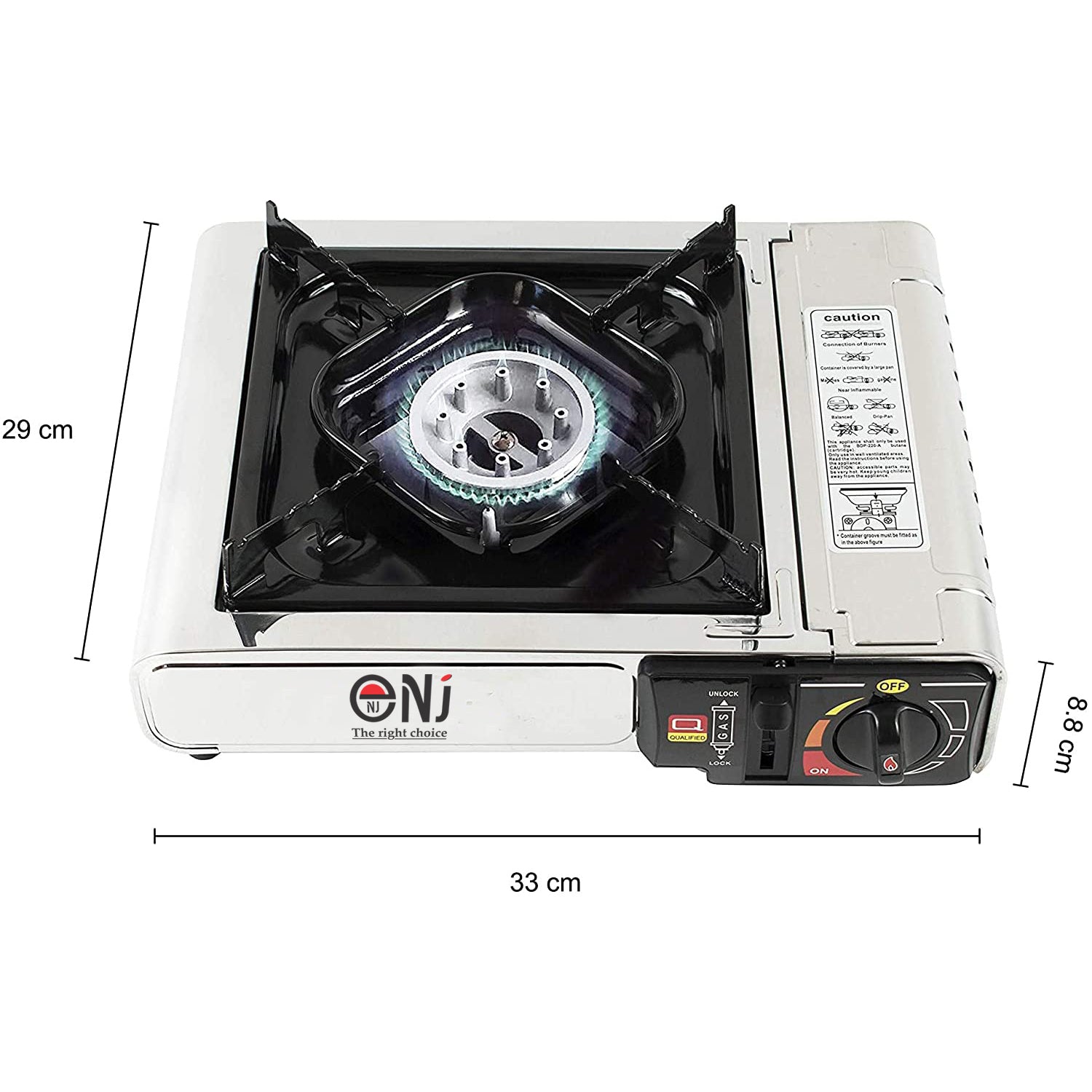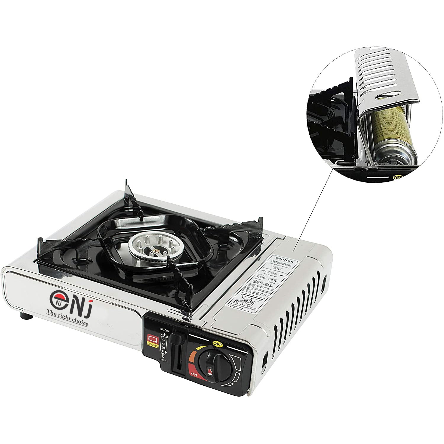 - Installation: The gas stove is suitable to operate with butane gas canisters.