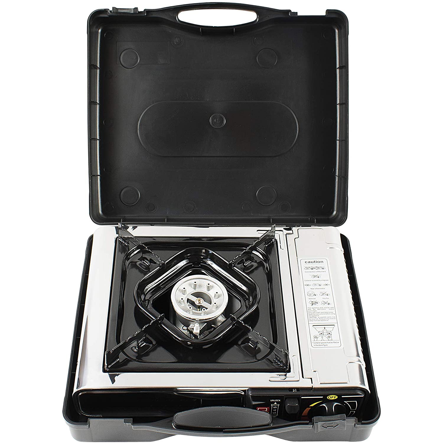This portable and lightweight 1 burner gas stove is designed to meet all your essential cooking needs while camping or spending time outdoors. Made of durable stainless steel material this burner works with butane gas canisters.