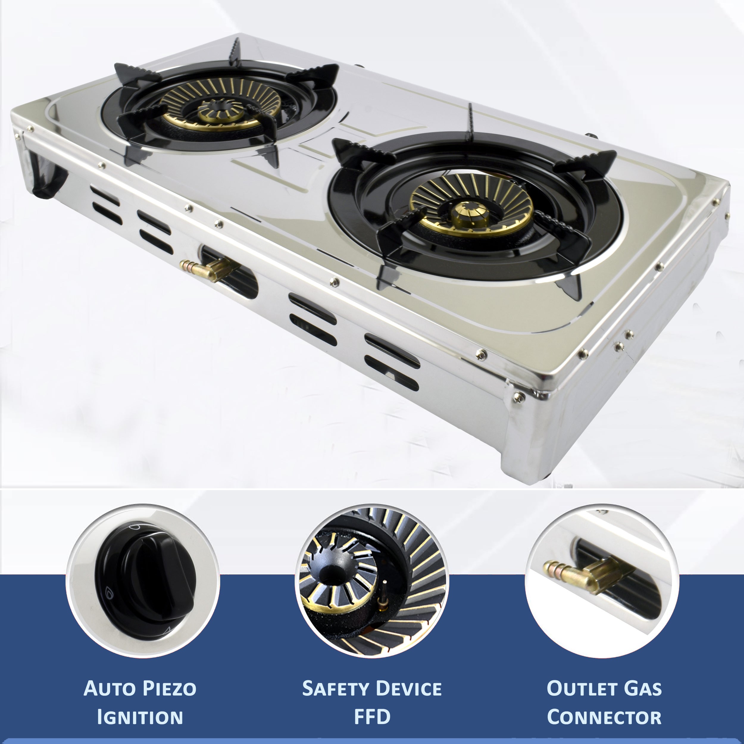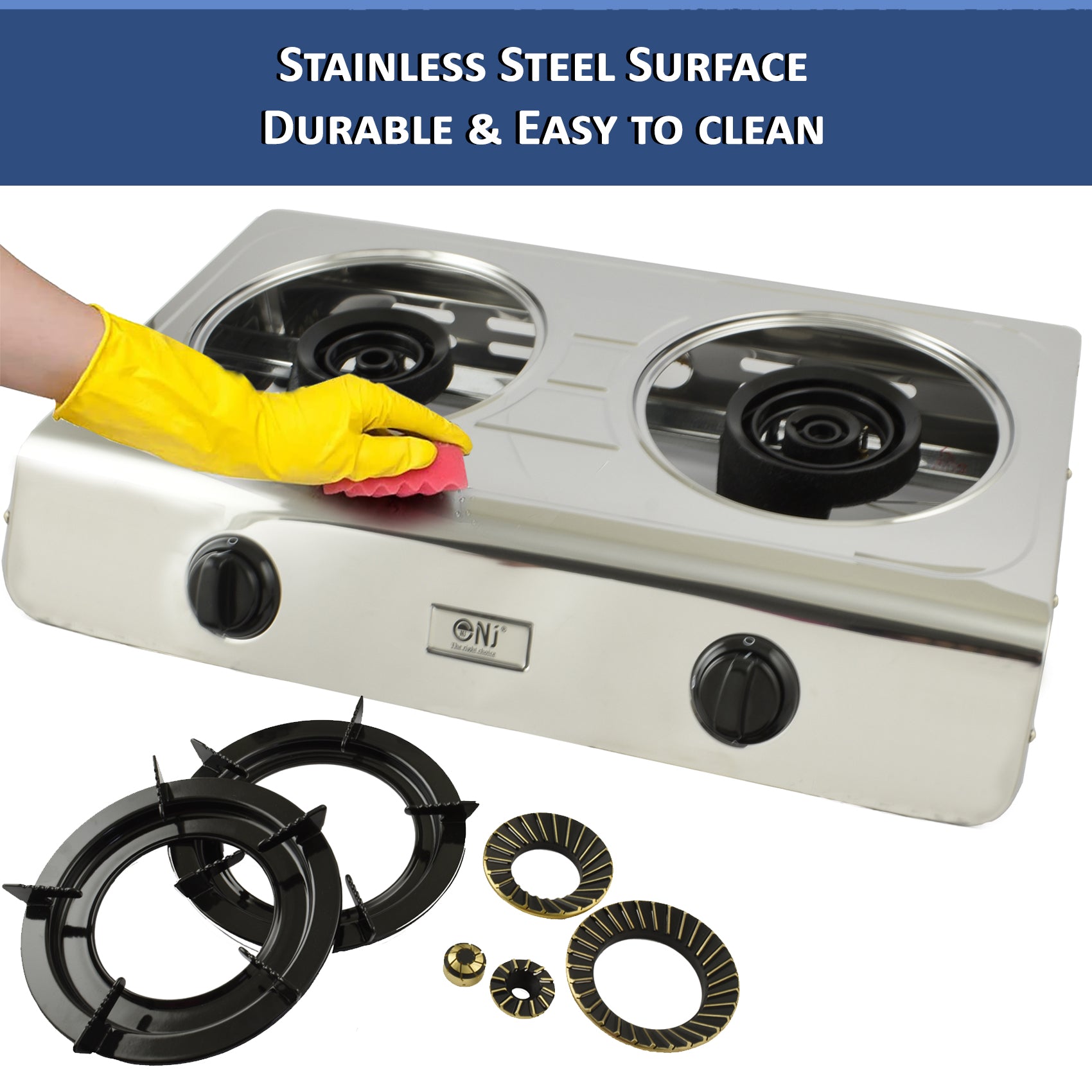 - Easy to clean: removable cast iron pan stands and burner rings.