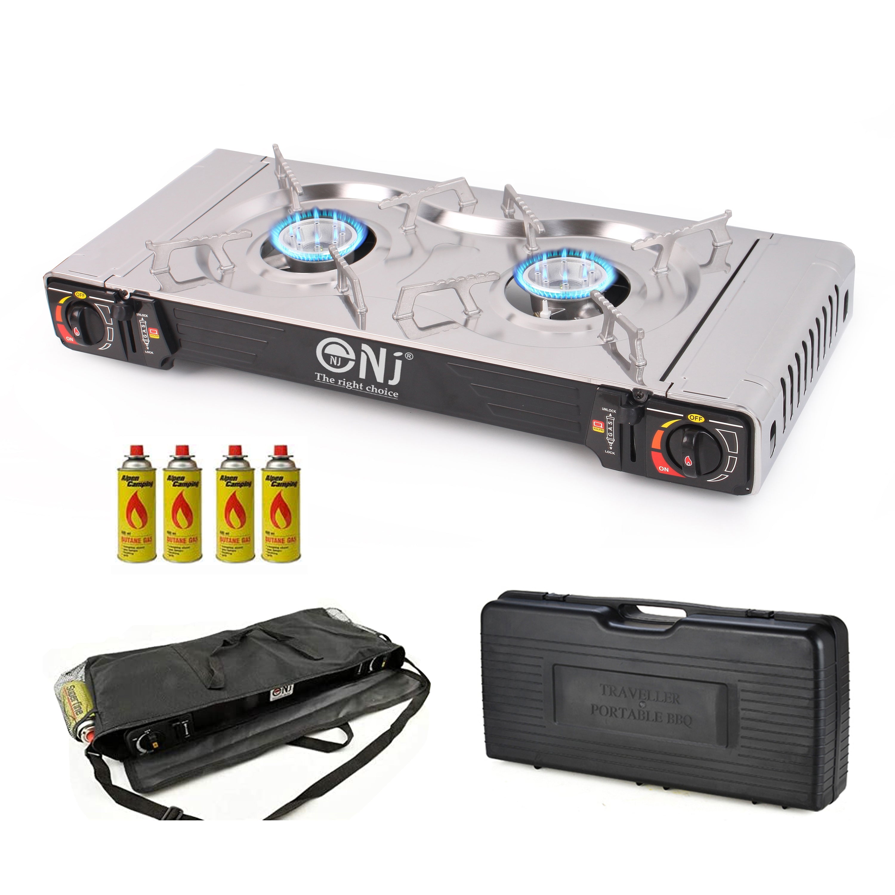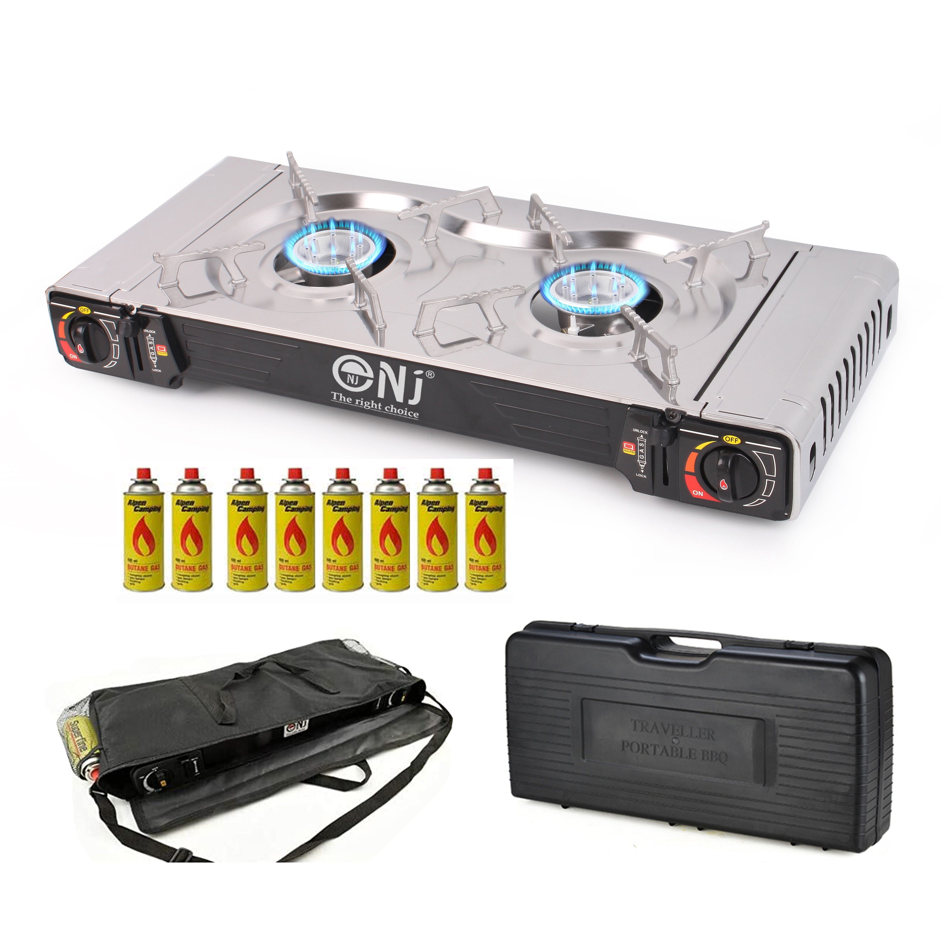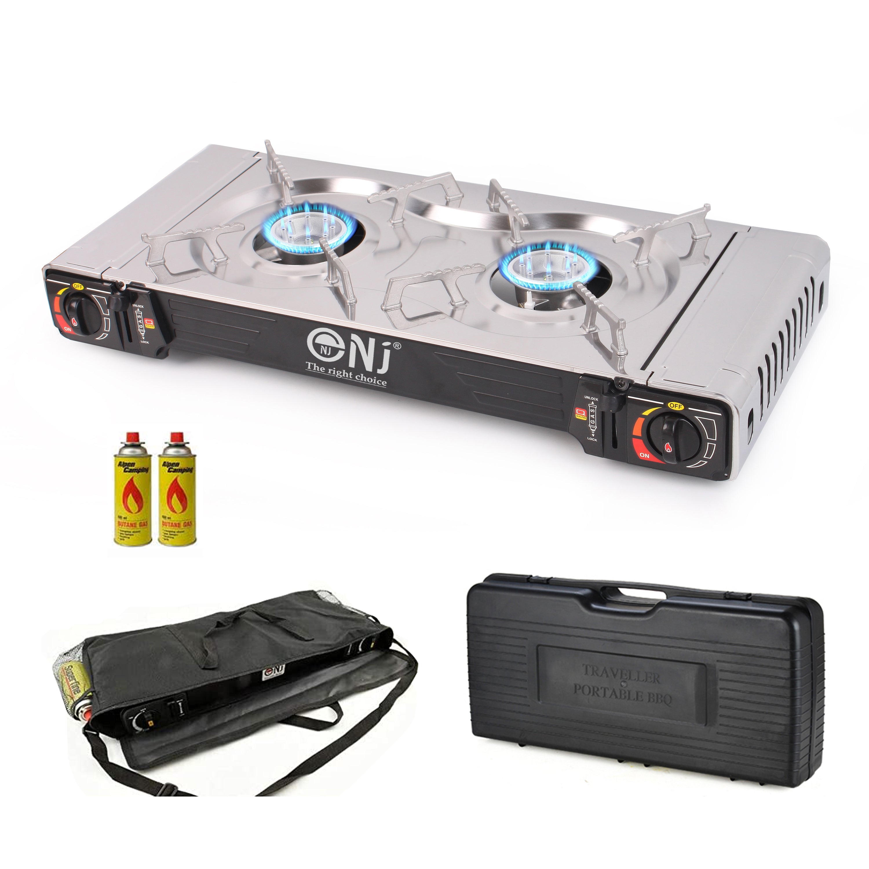 NJ SG-2S Portable Double Burner Stainless Steel Camp Gas Stove Butane BBQ Outdoor Cooker
