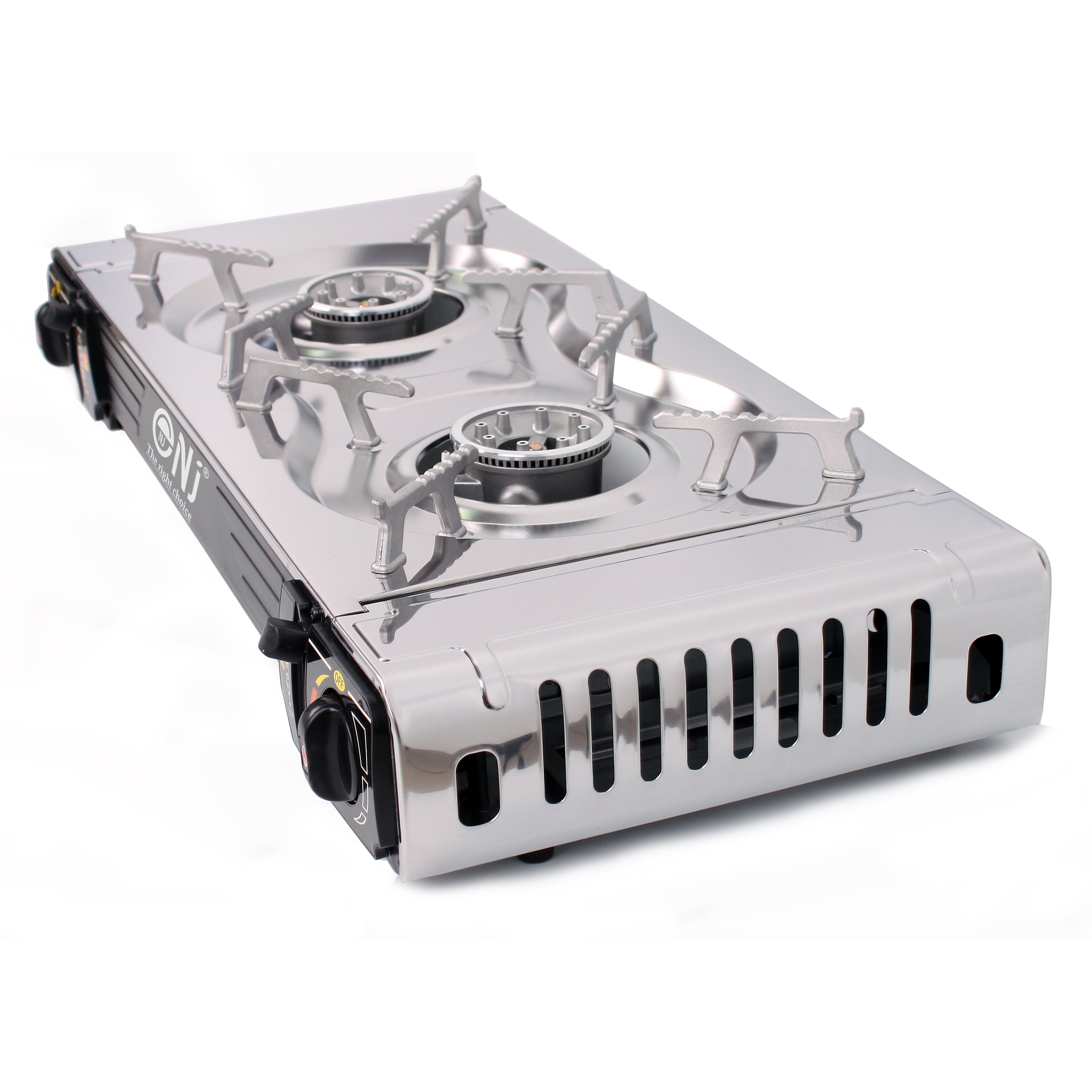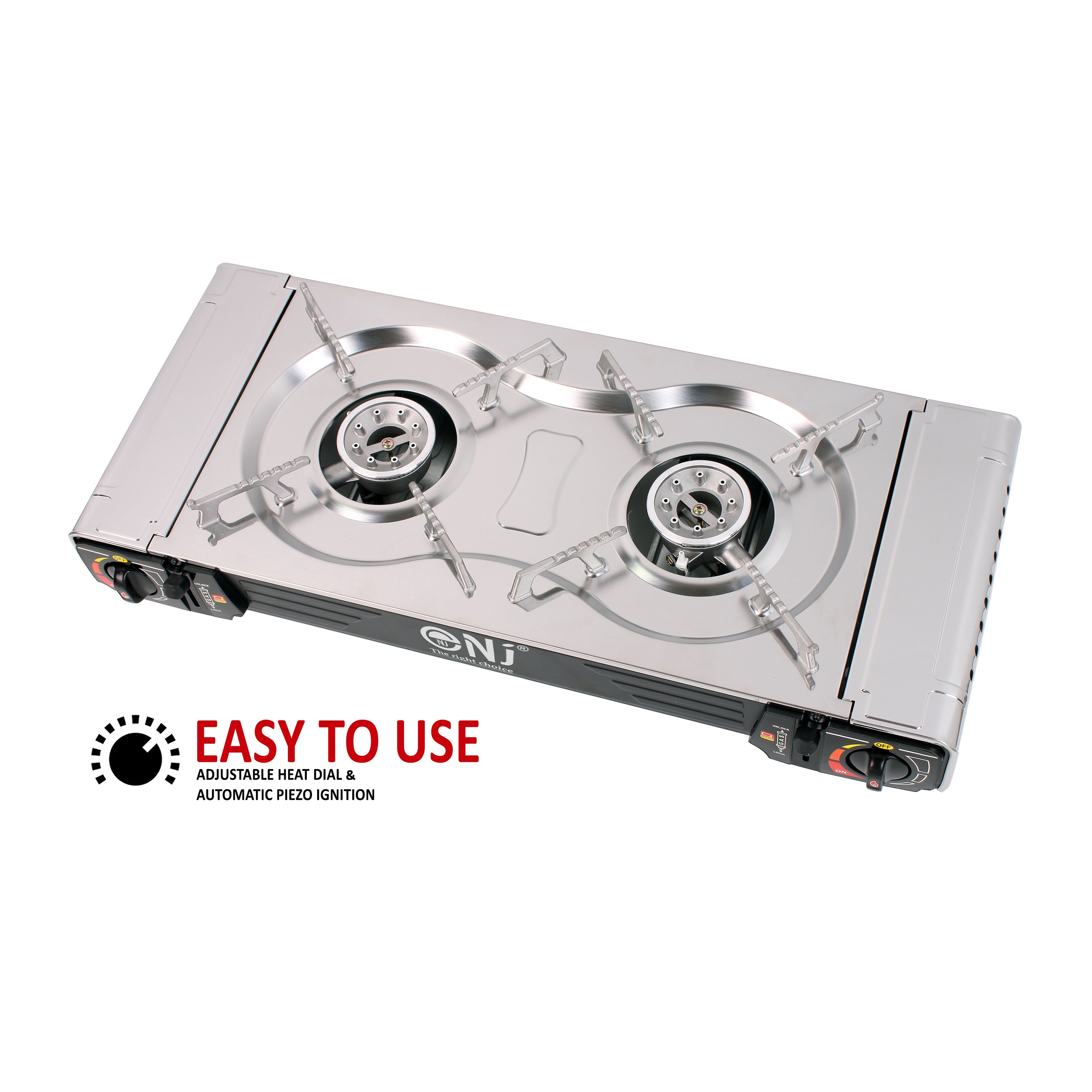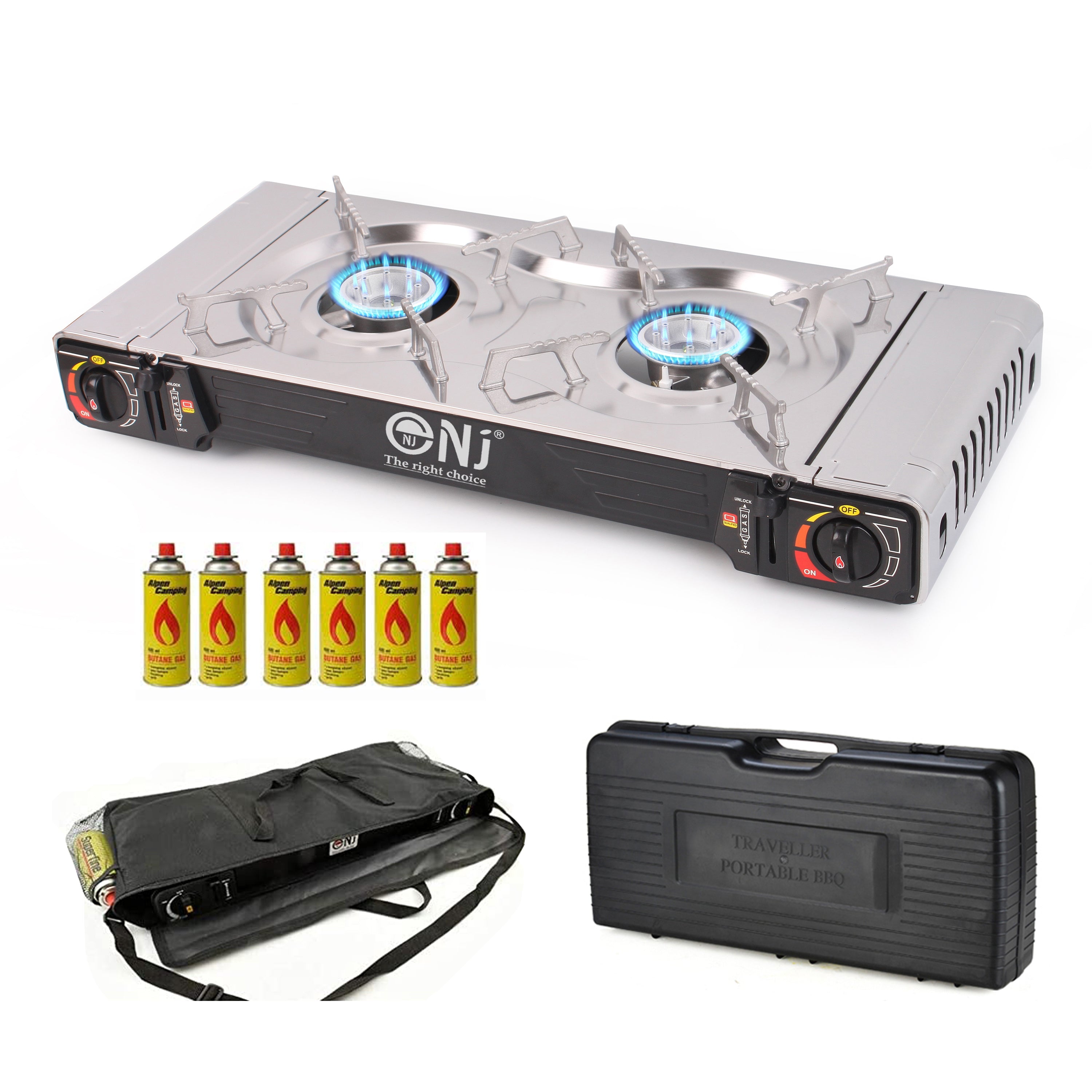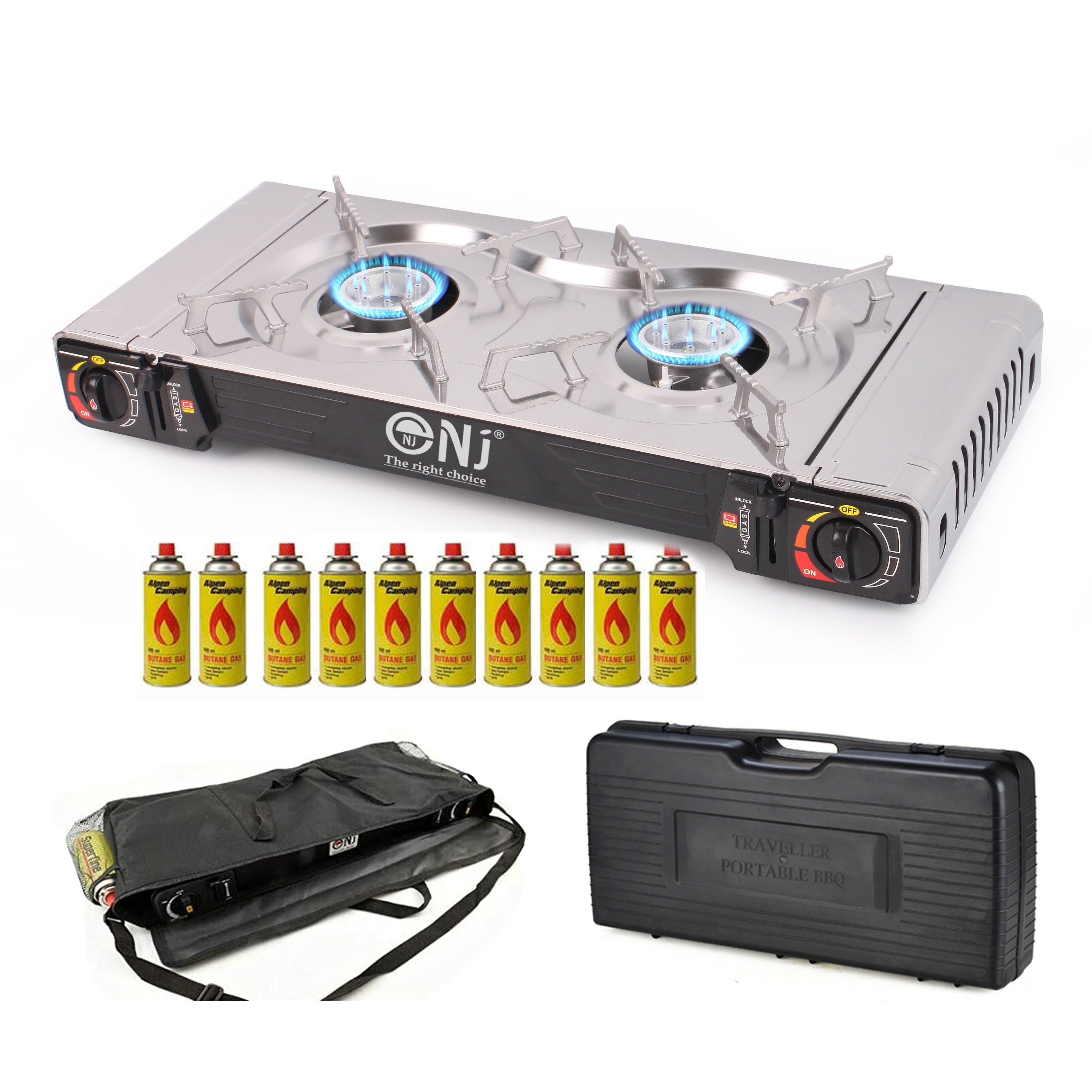 NJ SG-2S Portable Double Burner Stainless Steel Camp Gas Stove Butane BBQ Outdoor Cooker