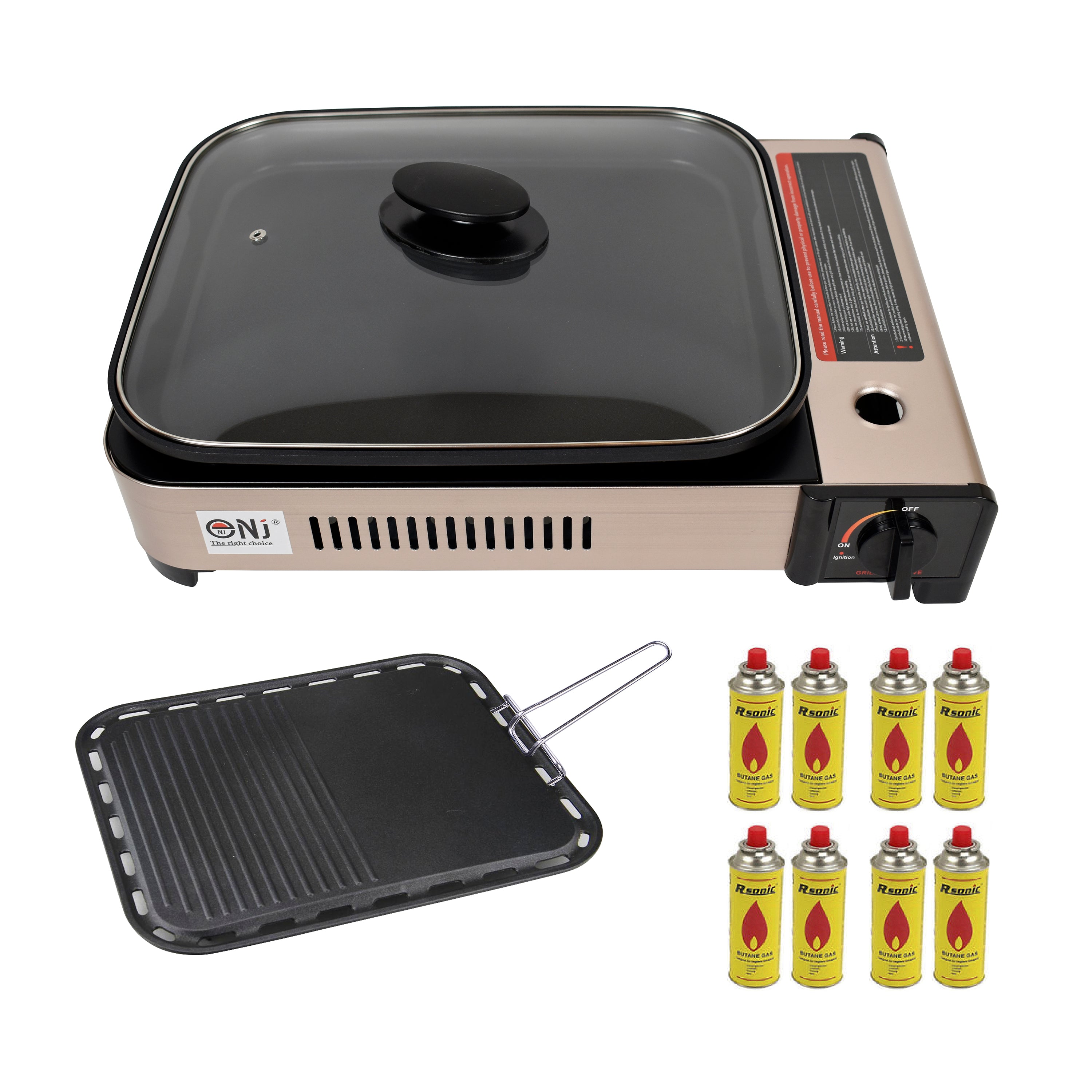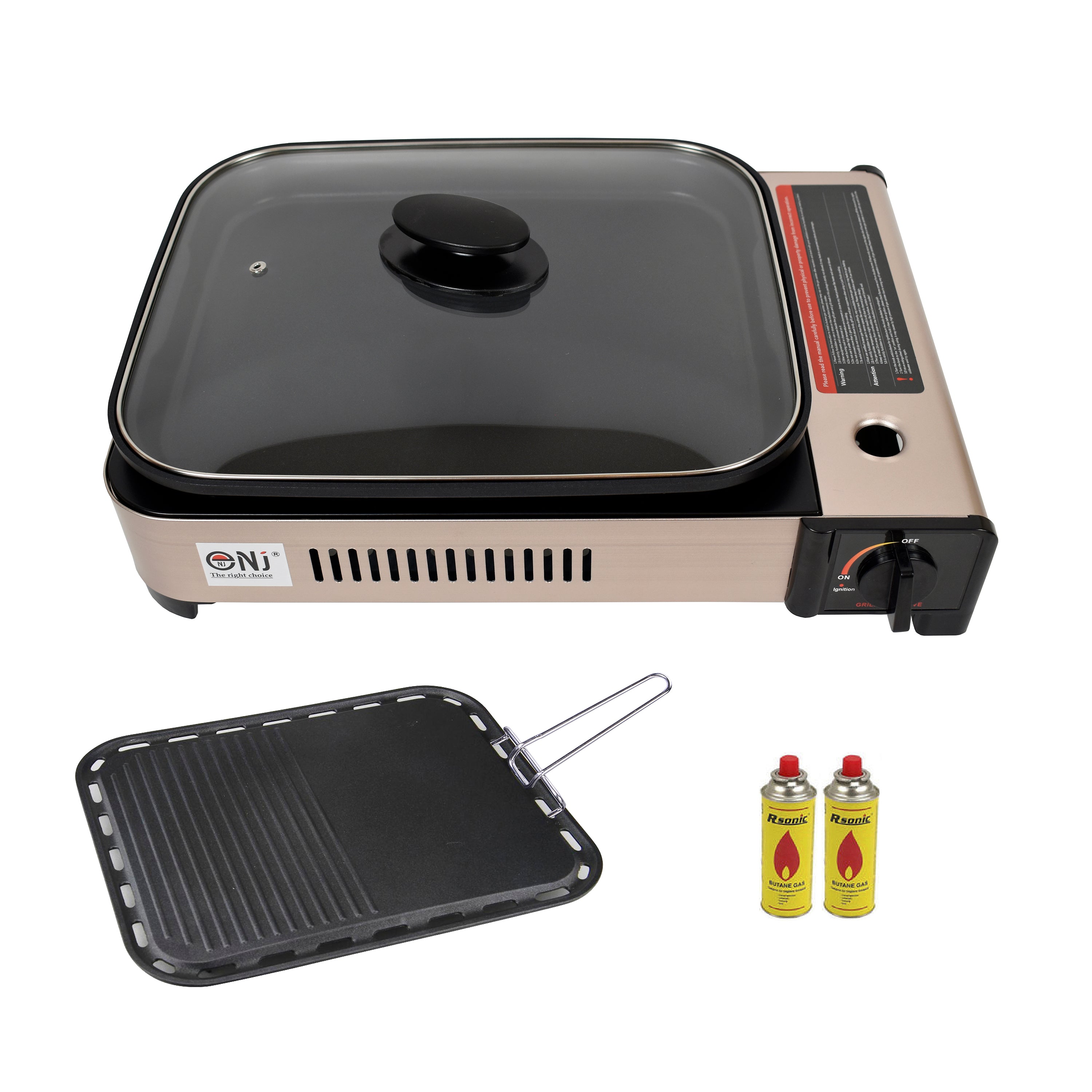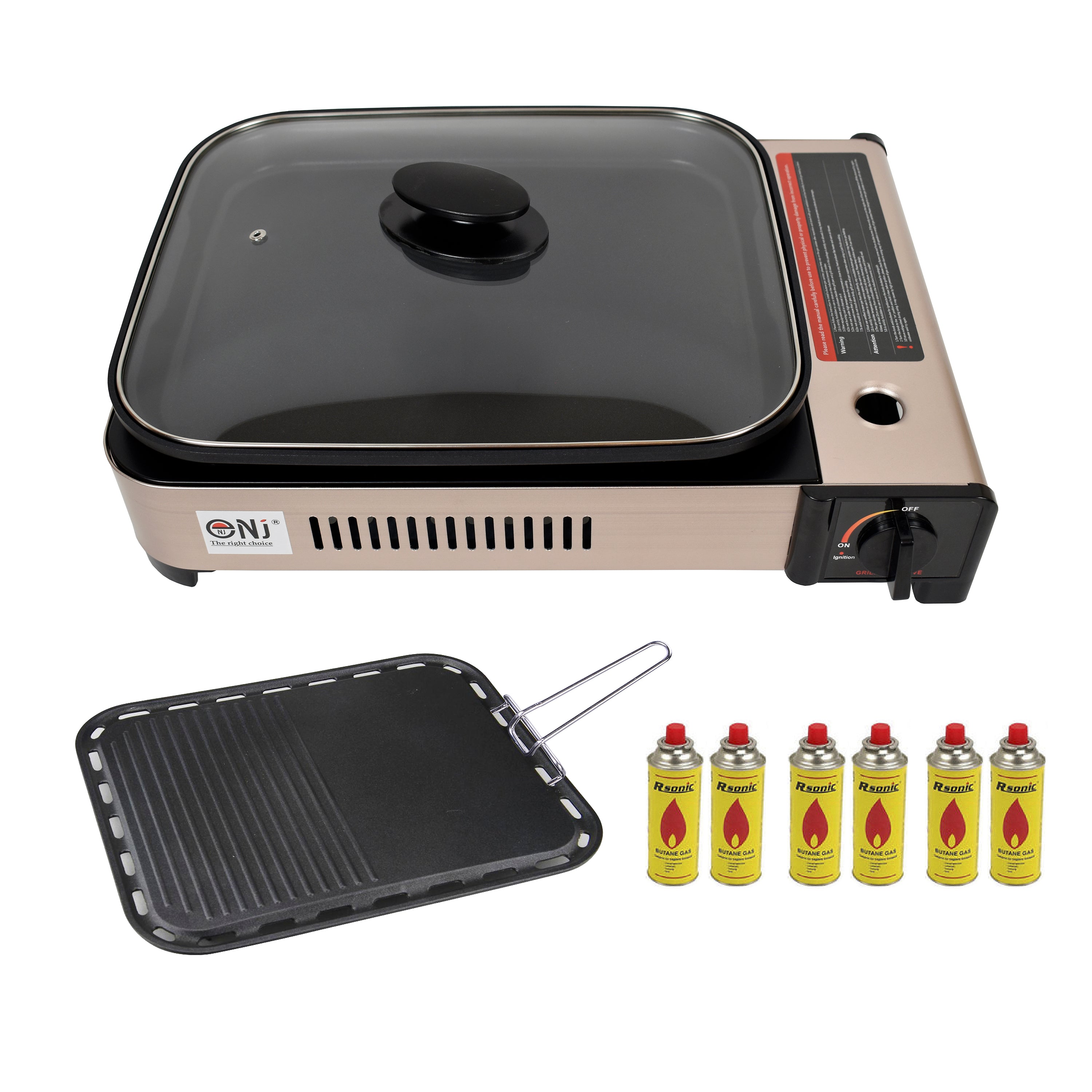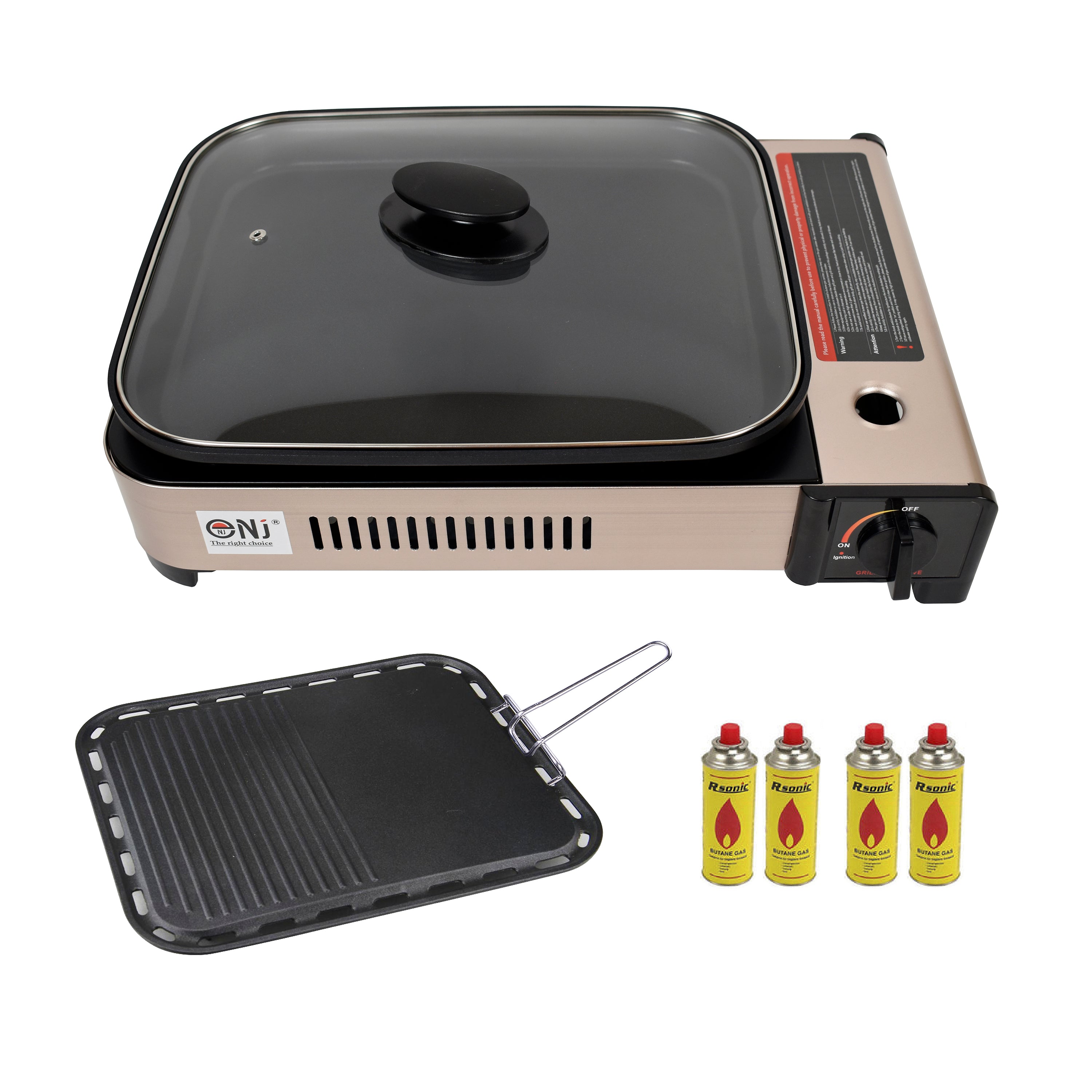 Portable Camping Gas Grill BBQ with Grill Pan Grill Plate and Lid Butane Outdoor Stove