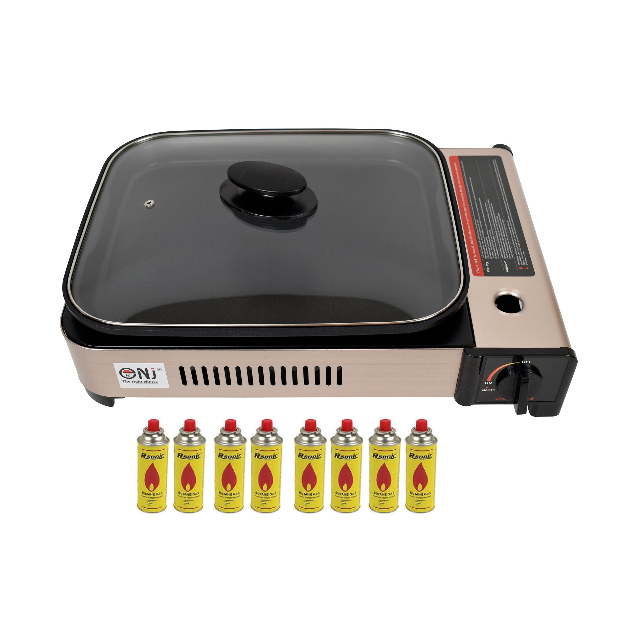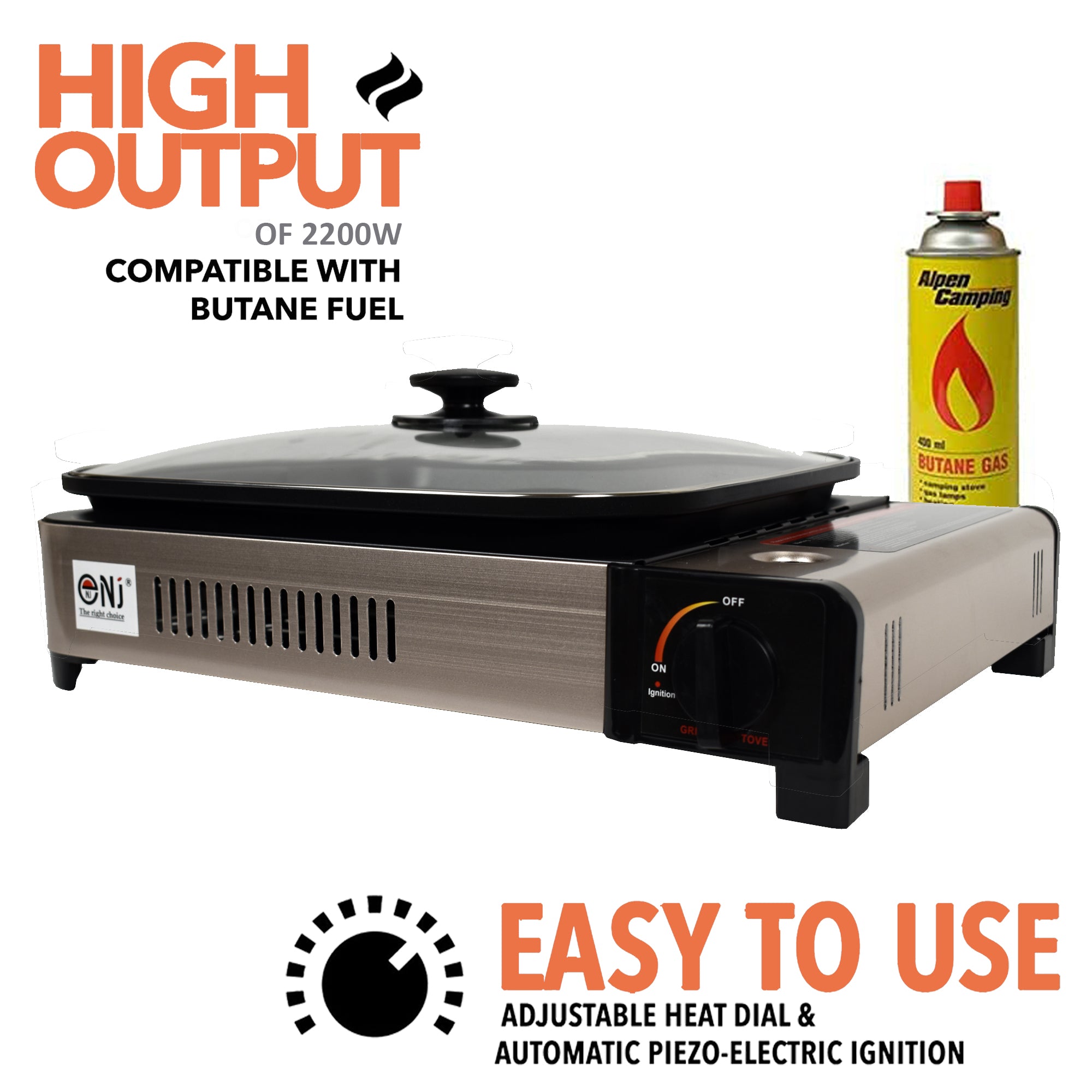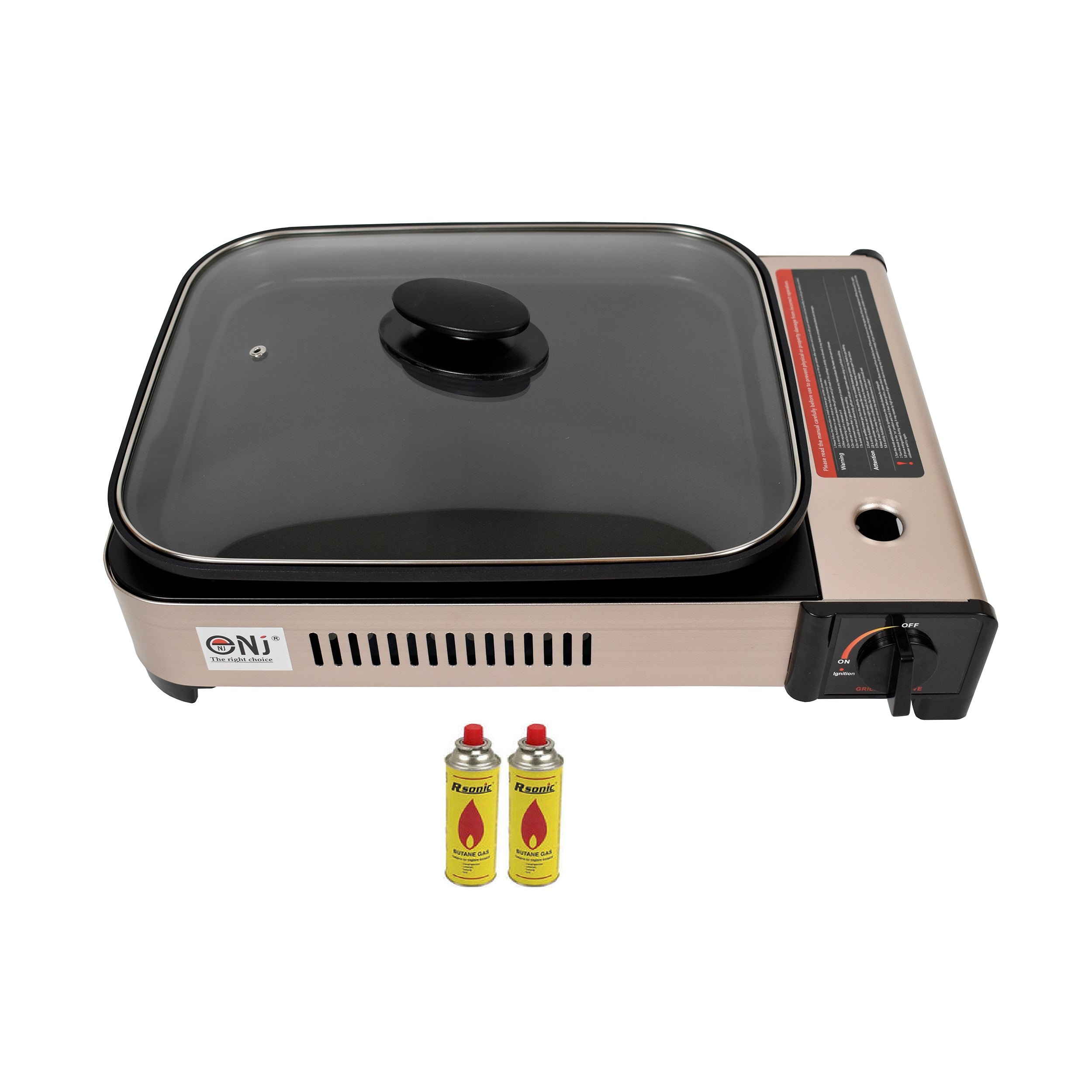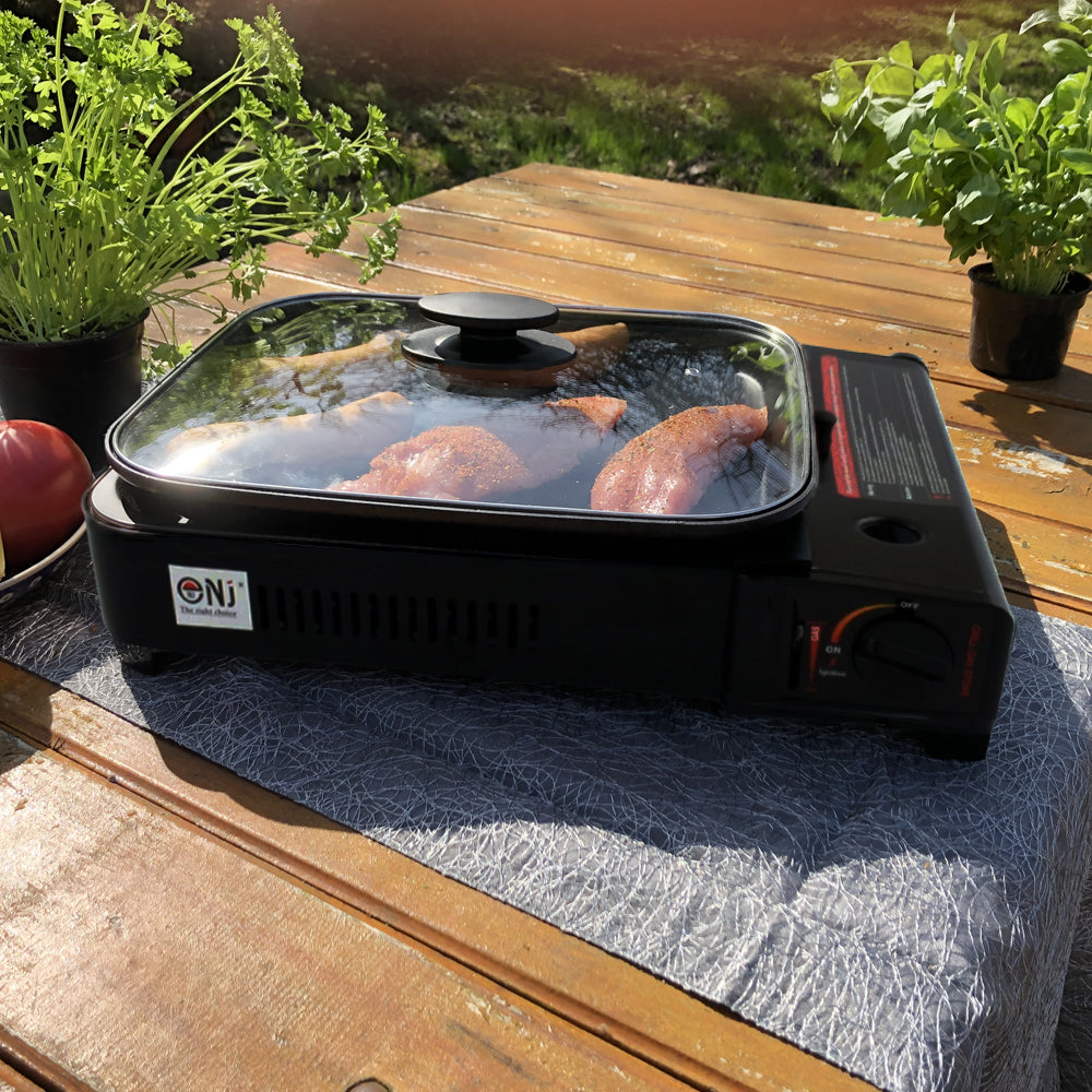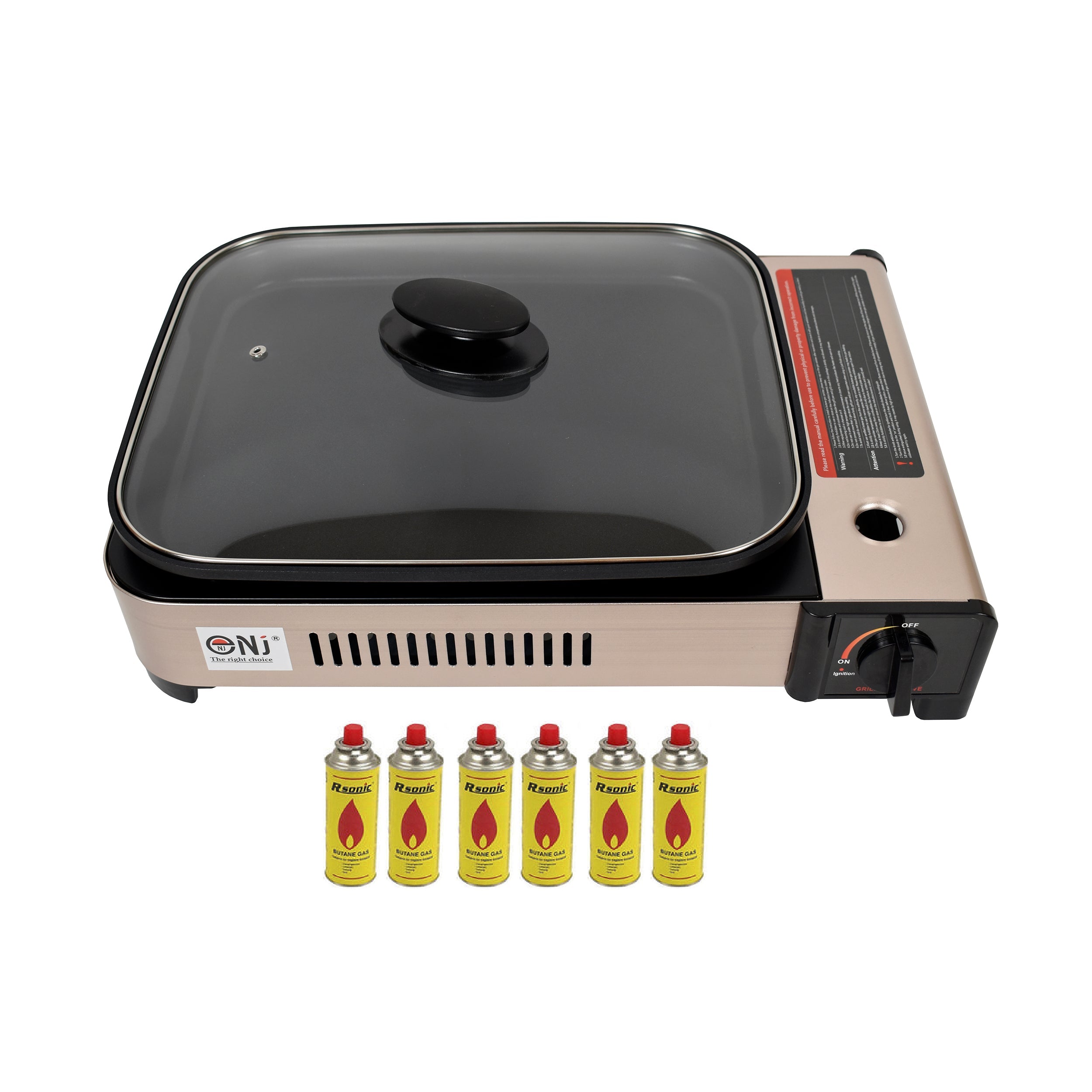 Portable Camping Gas Grill BBQ with Grill Pan Grill Plate and Lid Butane Outdoor Stove