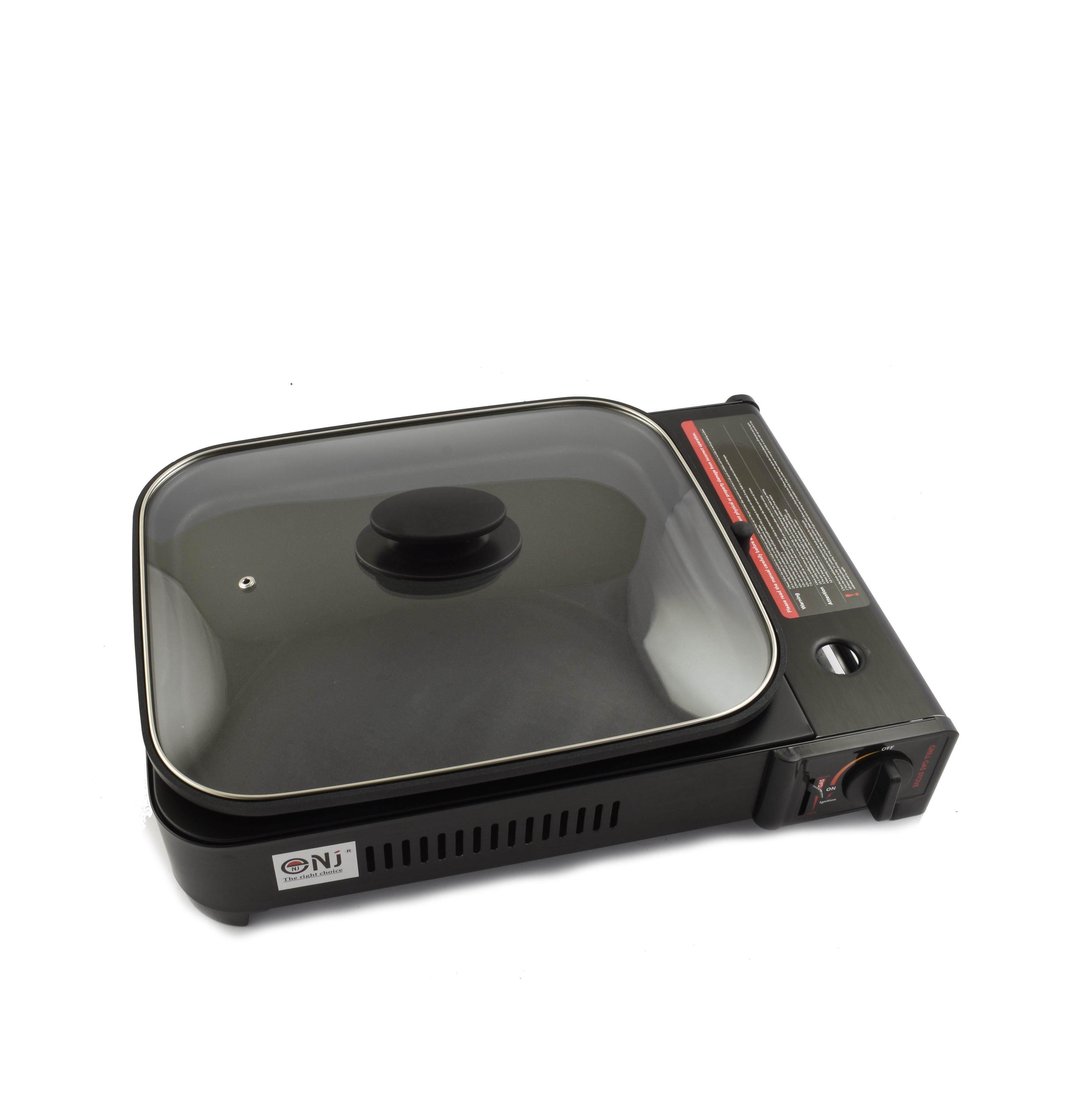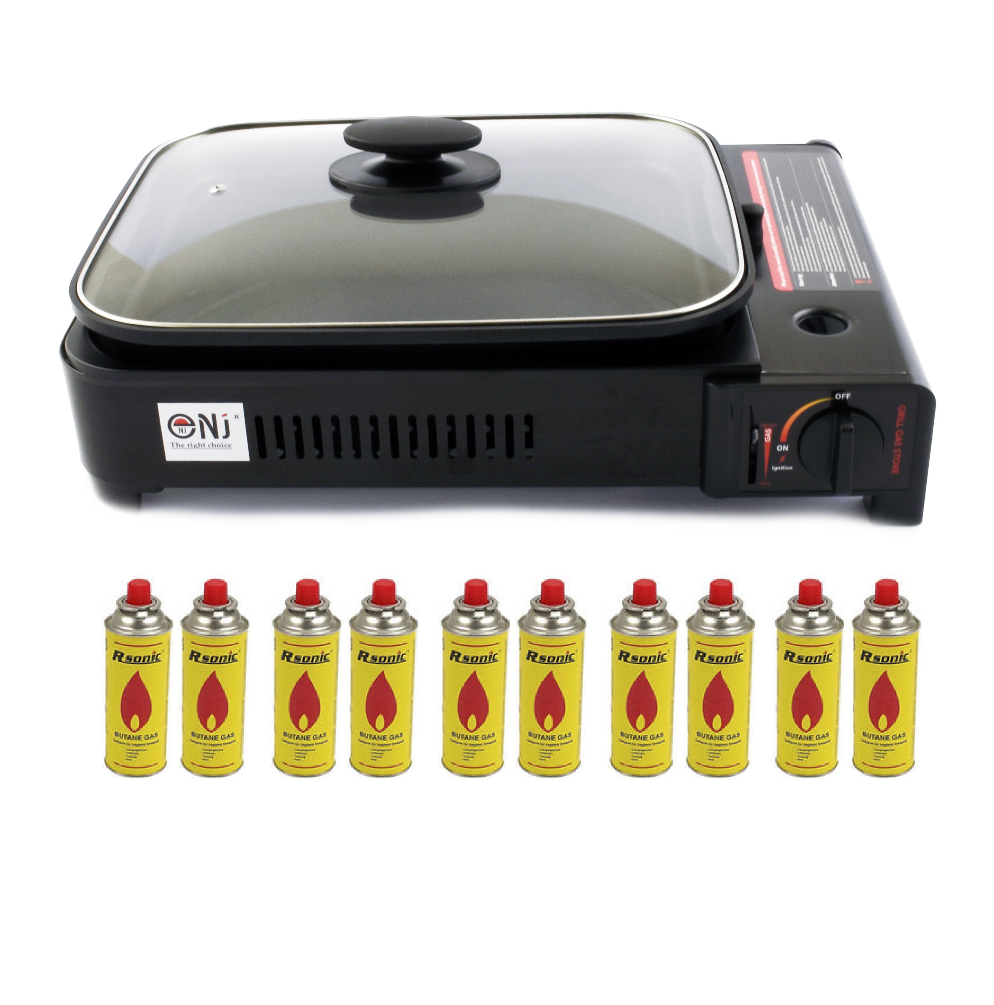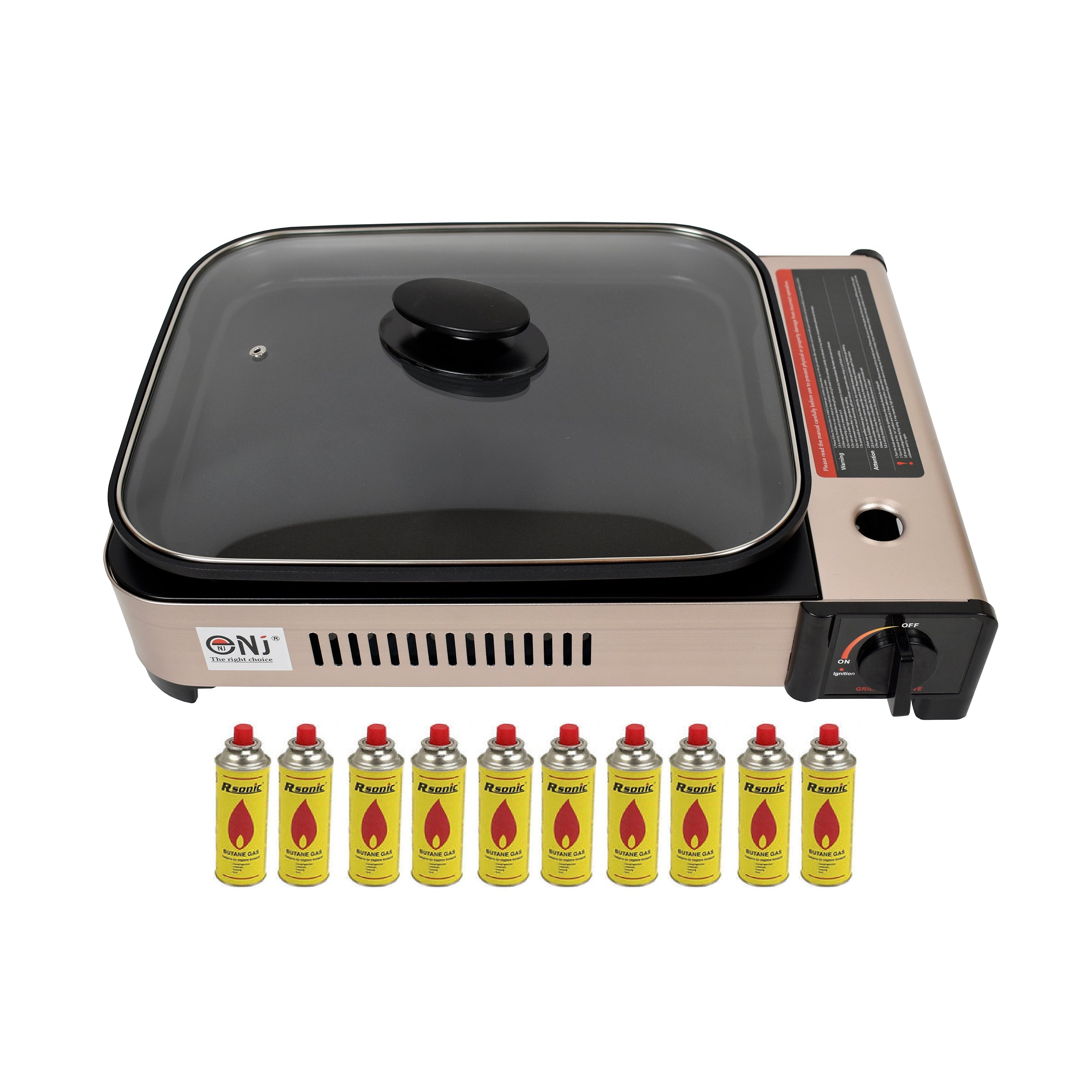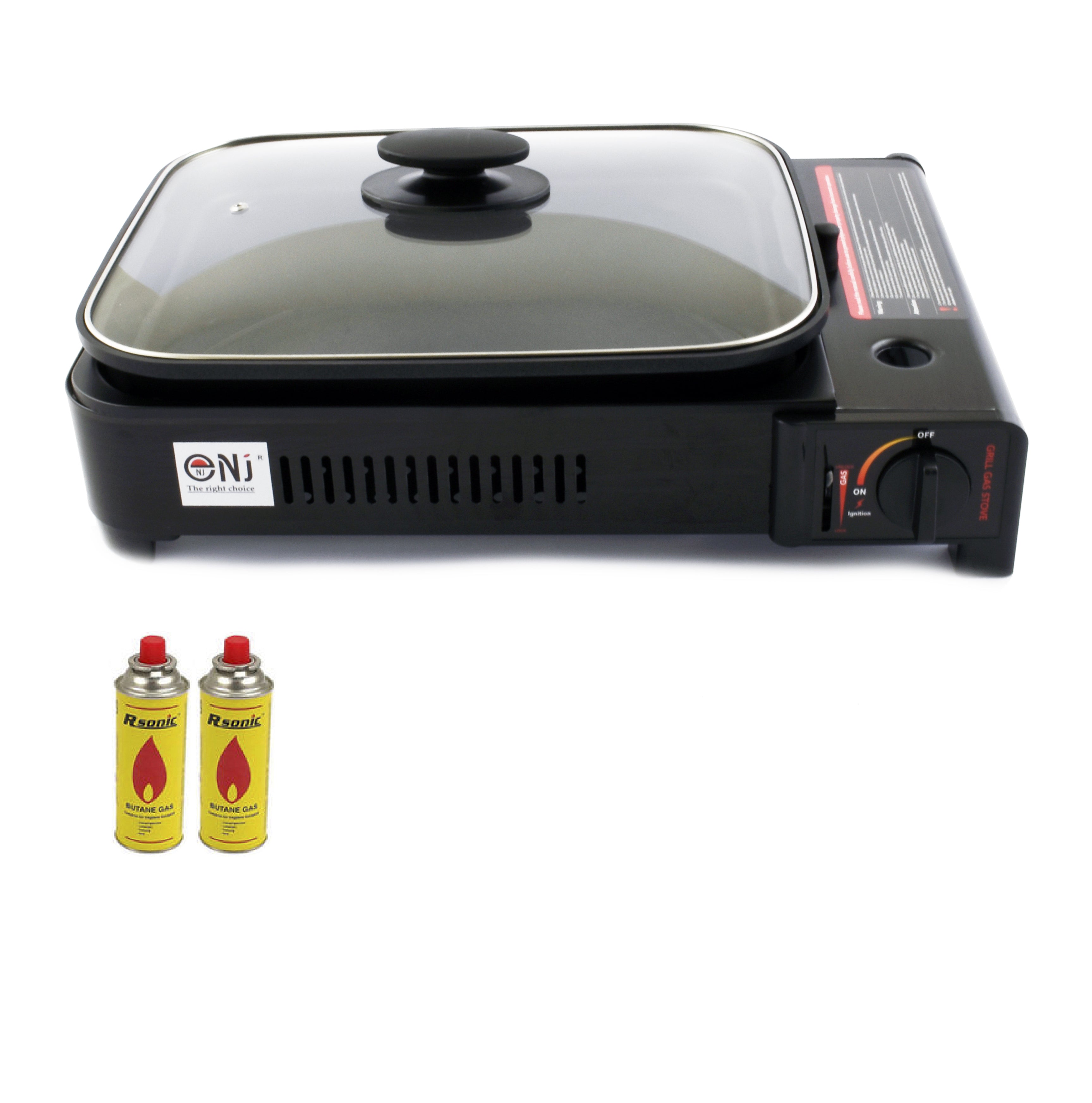 Portable Camping Gas Grill BBQ with Grill Pan Grill Plate and Lid Butane Outdoor Stove
