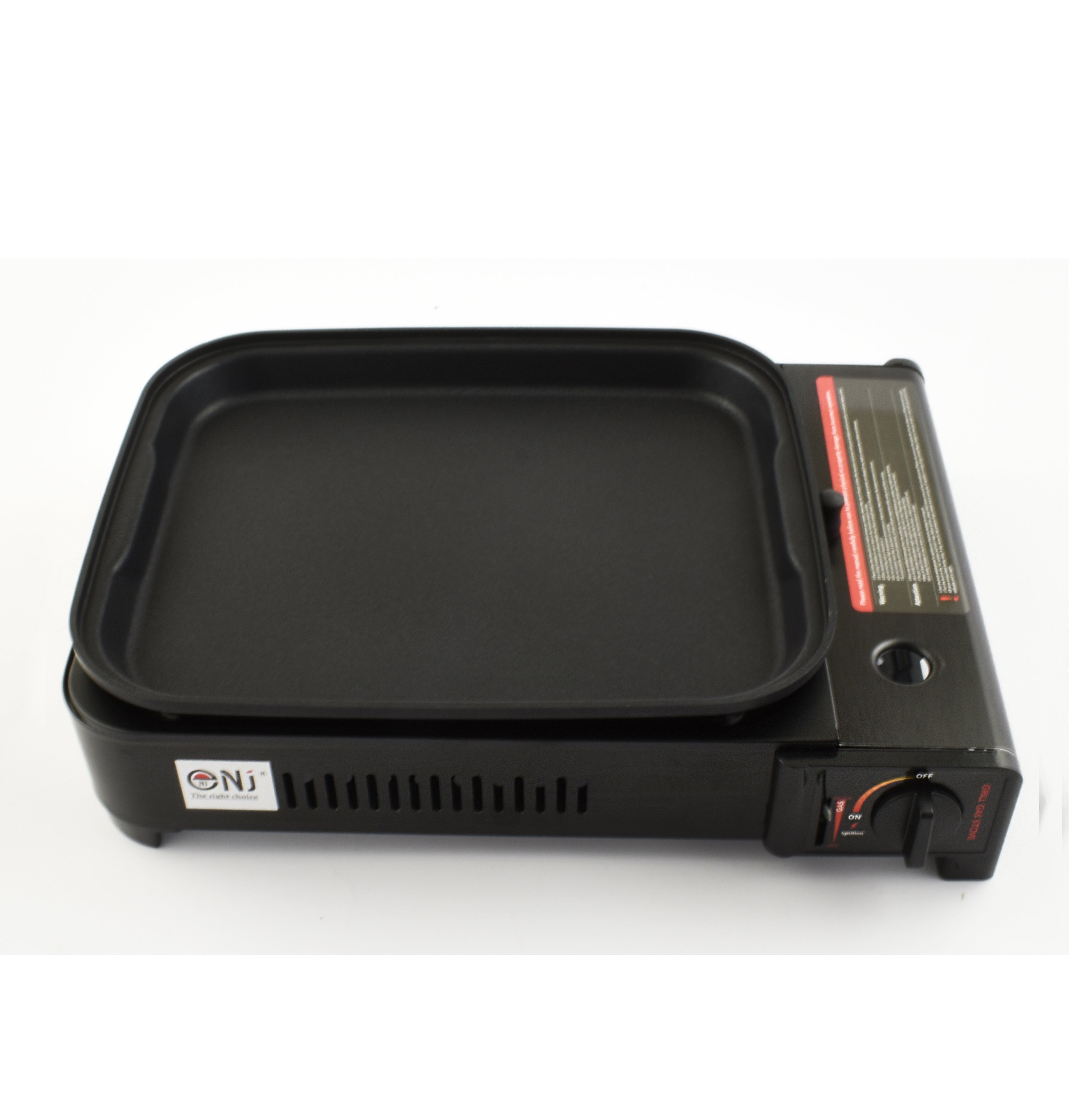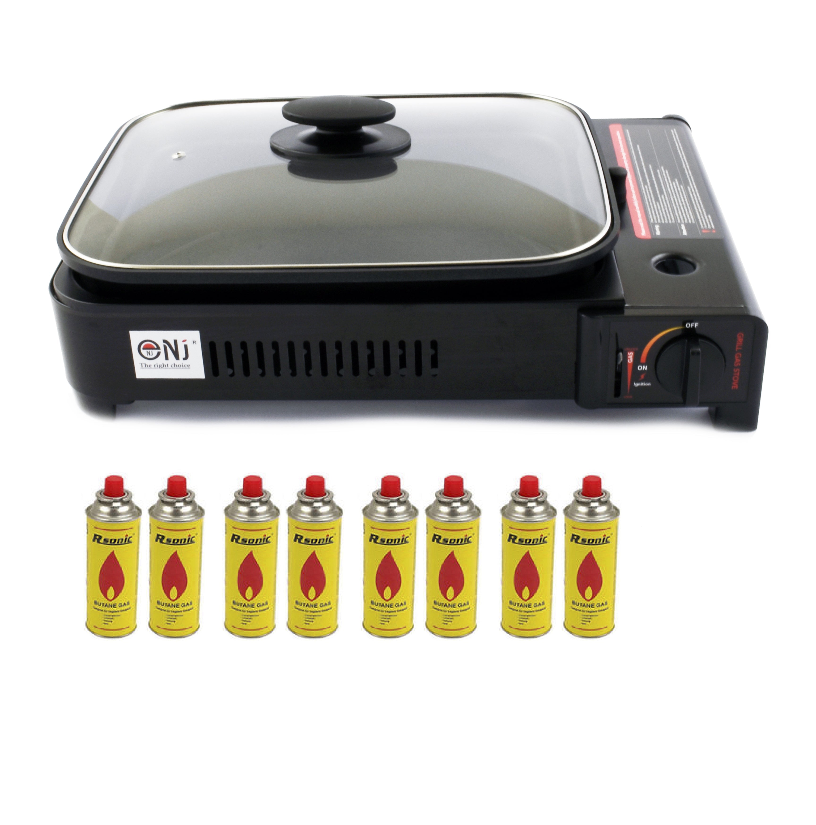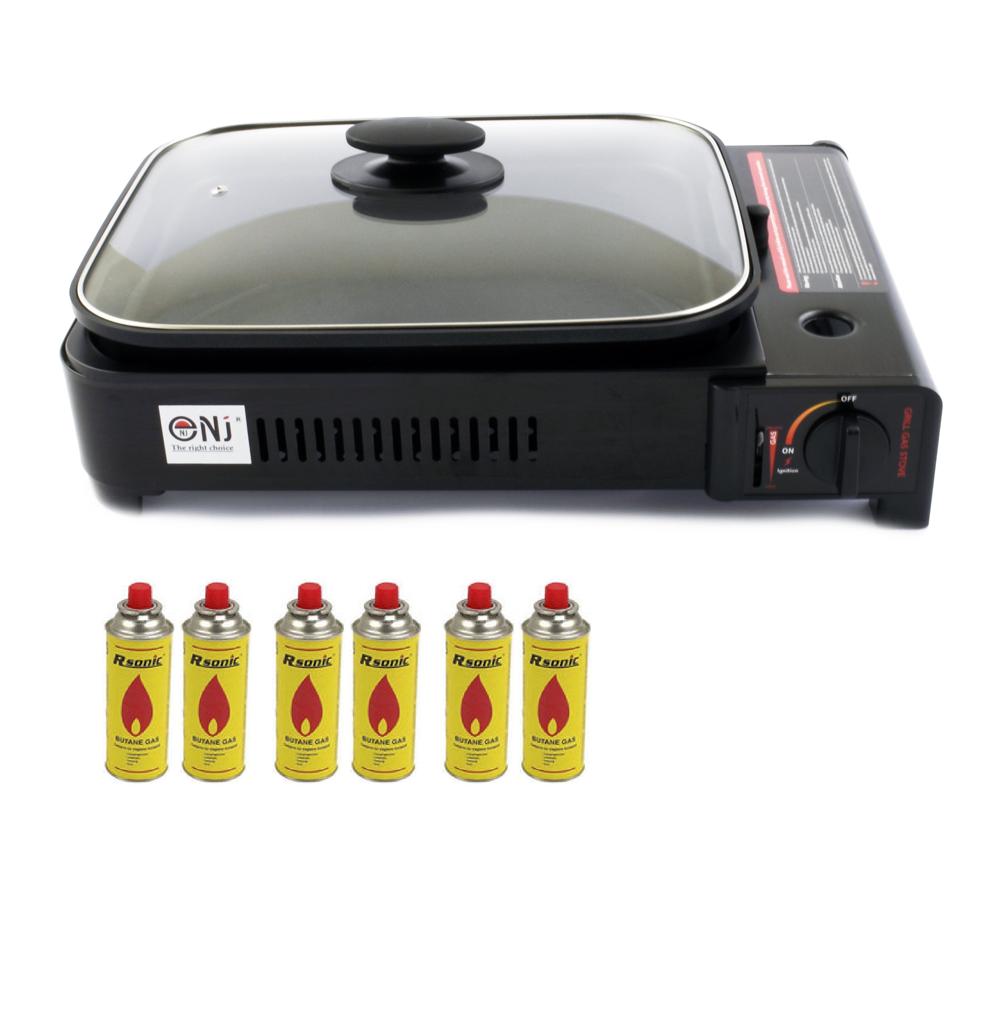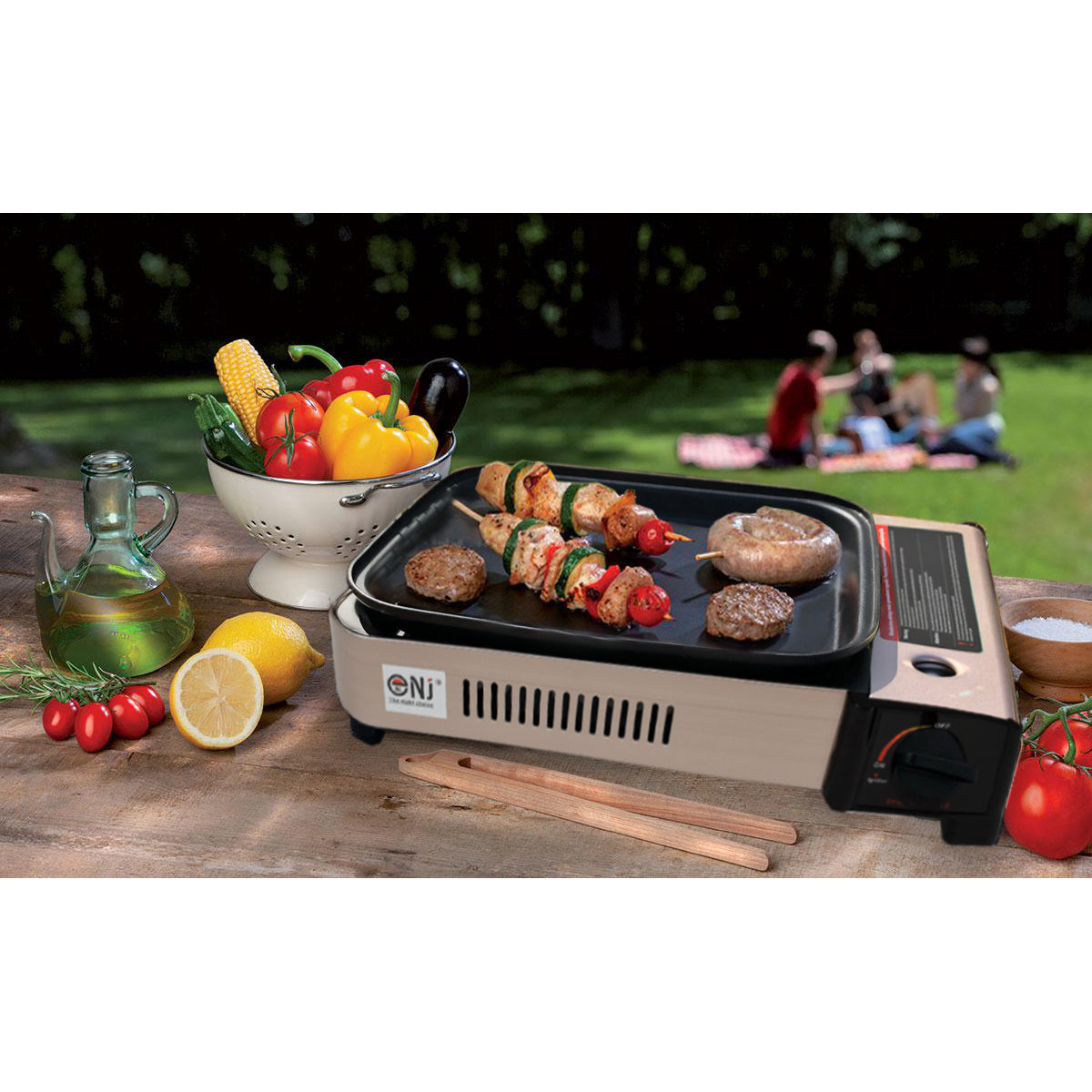 Portable Camping Gas Grill BBQ with Grill Pan Grill Plate and Lid Butane Outdoor Stove