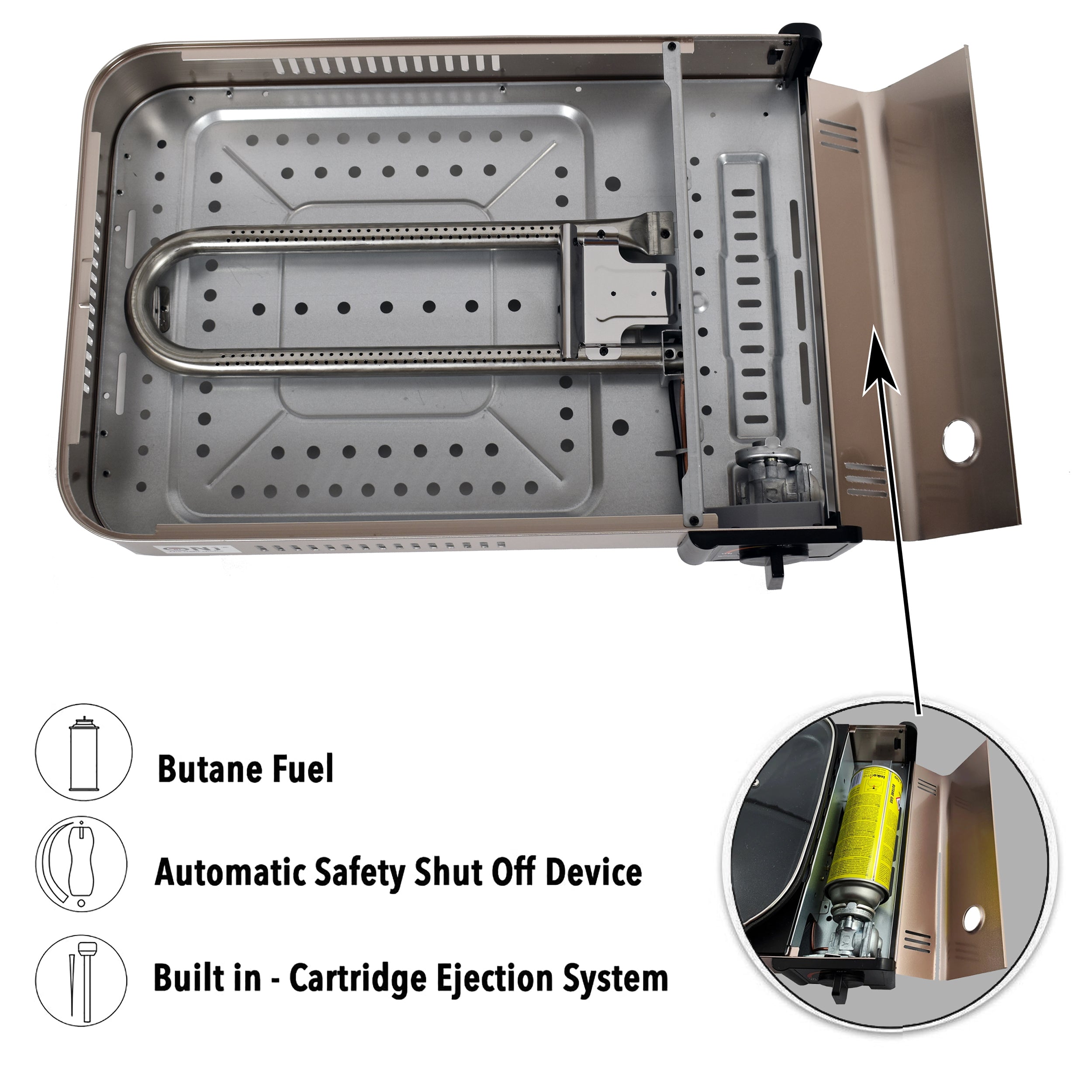 - Automatic piezo ignition: eliminates the requirement of using any matchstick or lighter.