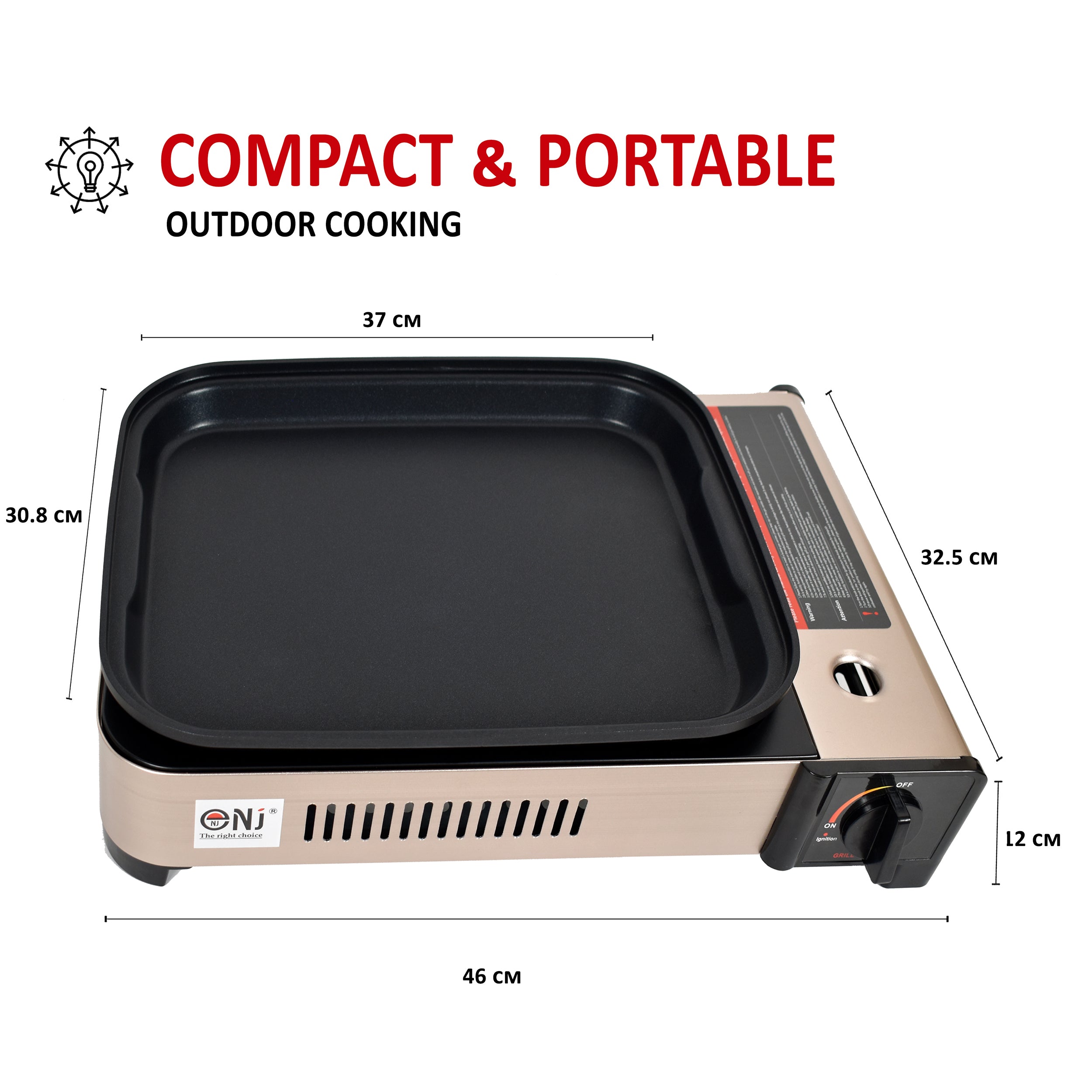 This compact gas BBQ grill stove is the ideal solution for your trip, vacation, or camping when you’re grilling away from home. With its large grill area, you can bake a variety of BBQ and grilled dishes.