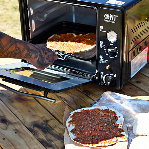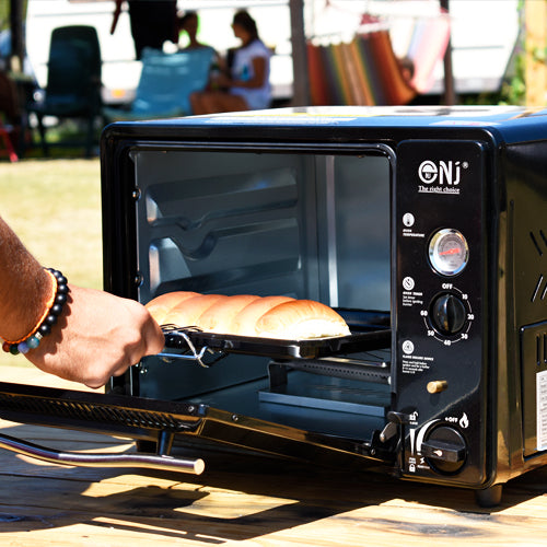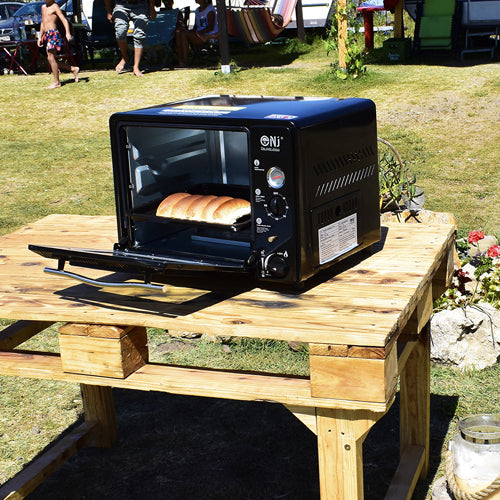 NJ GF-300 is a portable gas oven with a 30L capacity that combines compact size, portability, and cooking power. It is a practical and versatile addition to your camp kitchen, which provides you with enough heat to cook anything and is large enough to bake a pizza. The oven can reach temperatures up to 270°C.